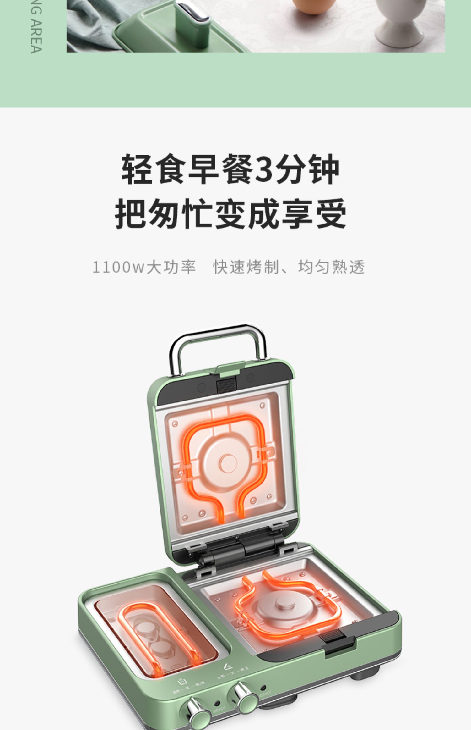 摩飞多功能早餐机神器三明治轻食机小型家用华夫饼机烤吐司面包机