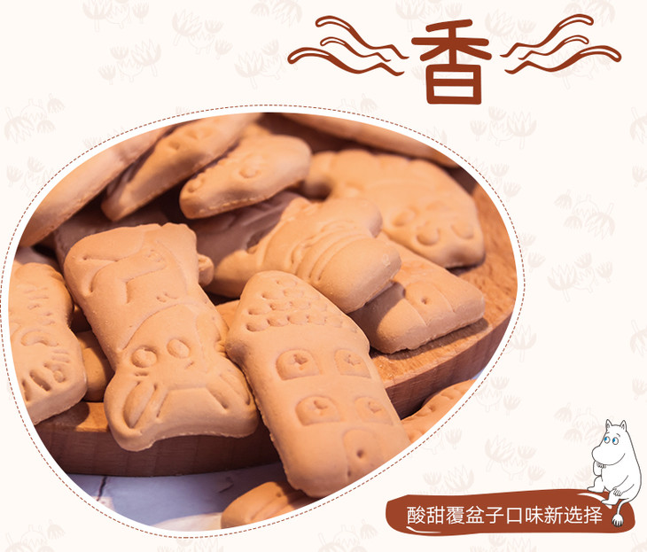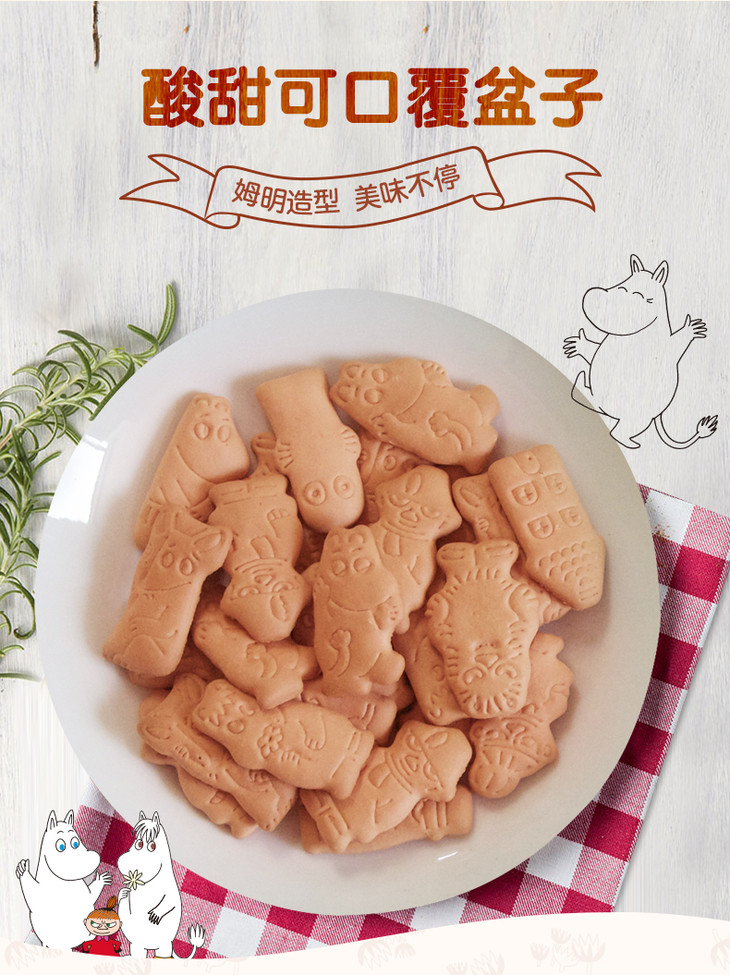 北陆制果姆明卡通红树莓饼干休闲零食儿童饼干 75g(001720)