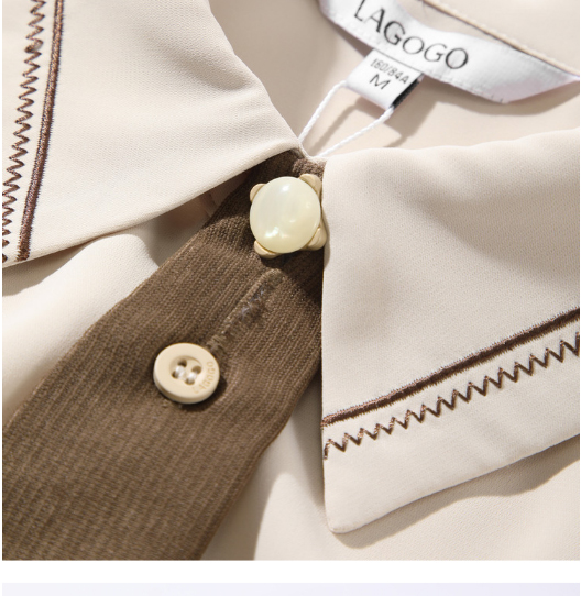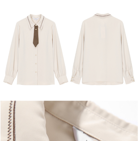 Lagogo拉谷谷2022新款方领领口撞色刺绣可拆领结衬衫女LACC431A13