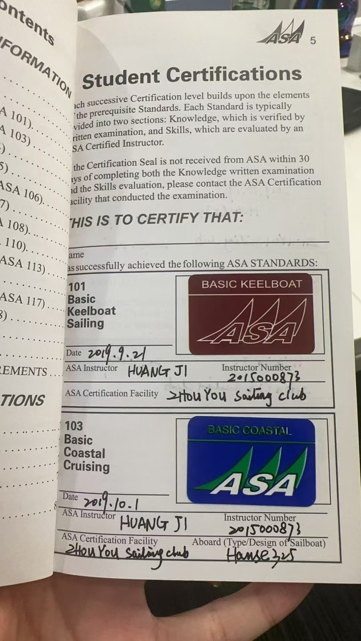 基本绳结与人员落水(MOB)操作,最终拿到国际帆船证书