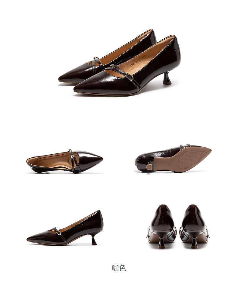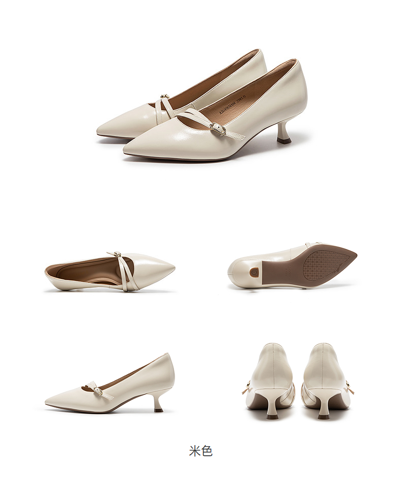 【静音系列】千百度蝴蝶兰扣式高跟鞋女通勤浅口单鞋A25106057