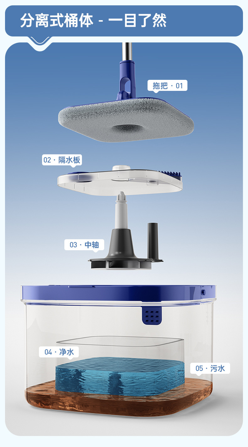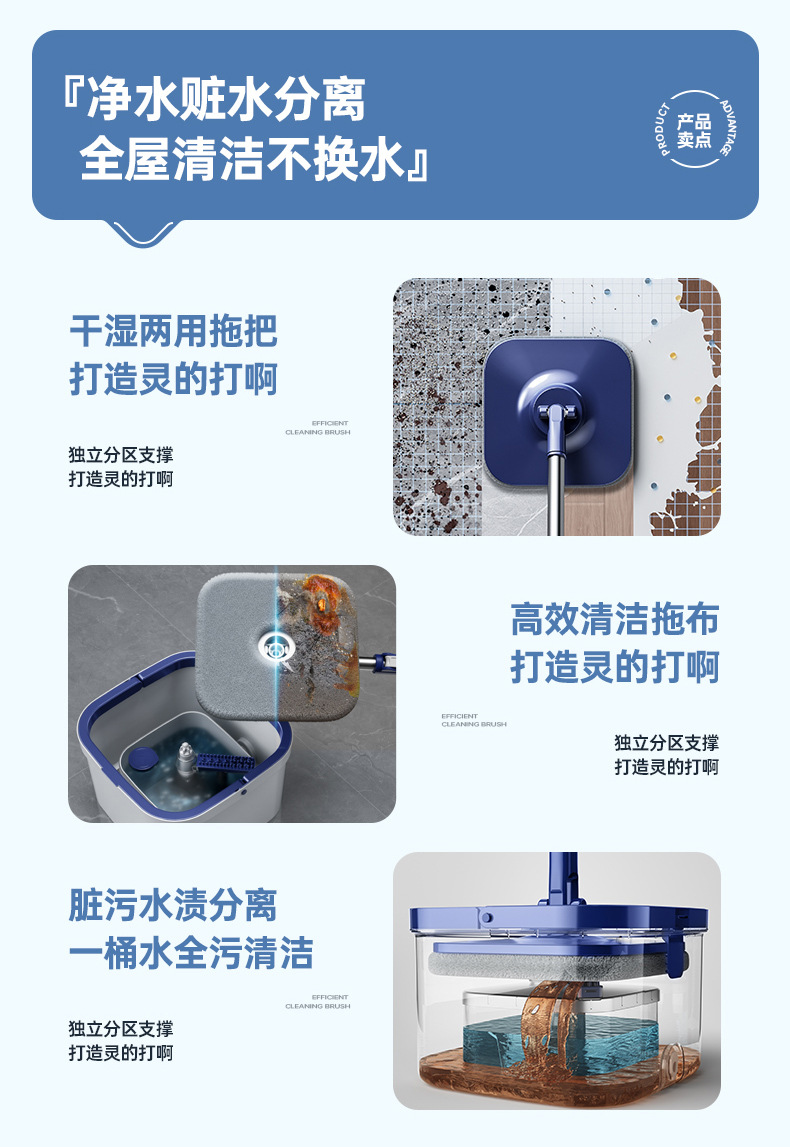 「净污分离!高颜值」大号干湿两用拖地拖把家用套装mop净污分离旋转拖把桶懒人清洁工具桶