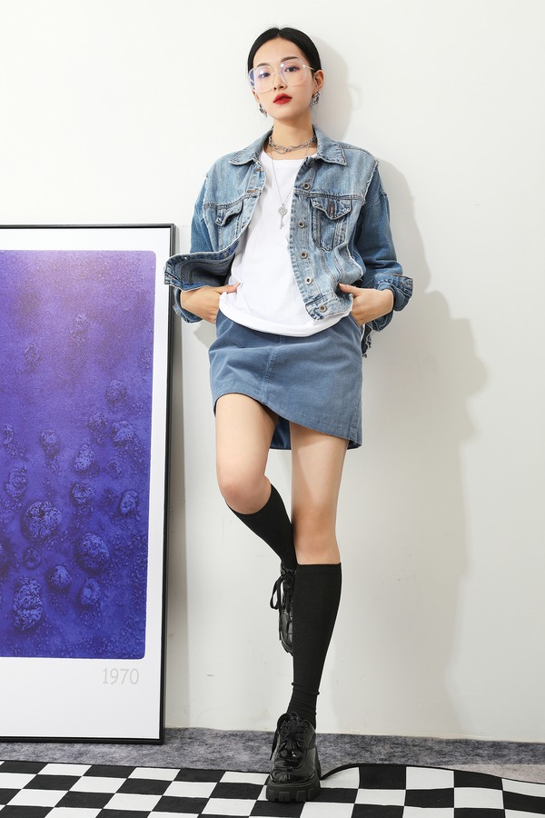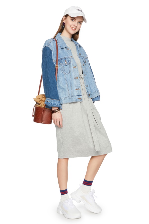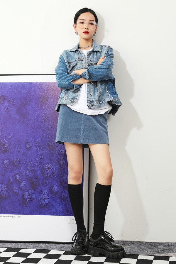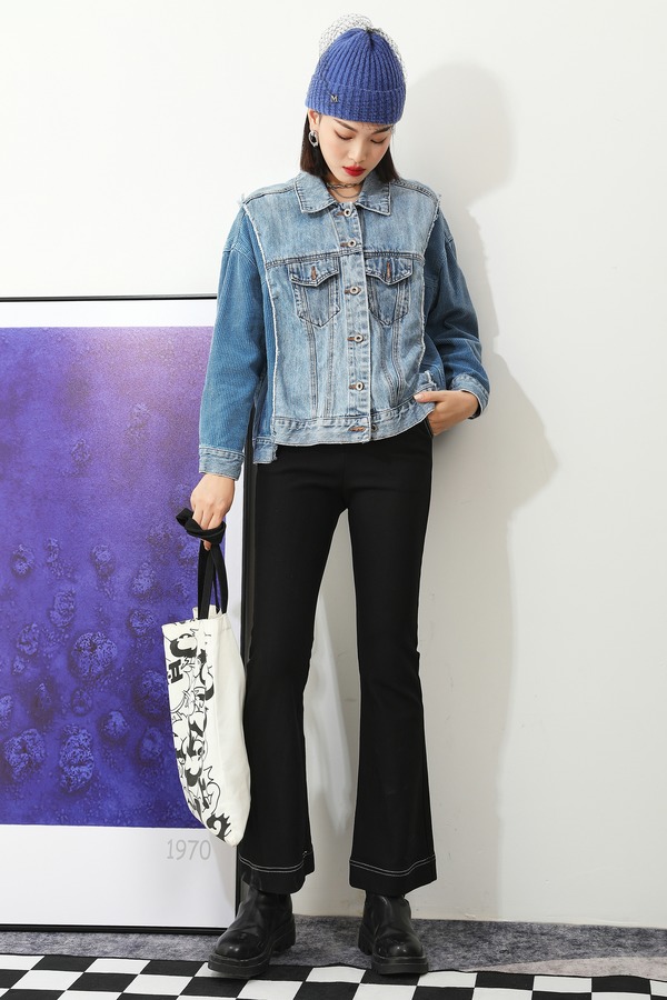 URBAN REVIVO 灯芯绒拼接牛仔外套 5186
