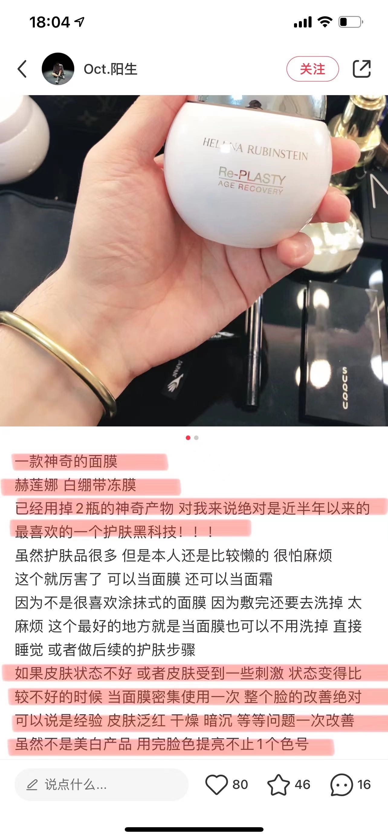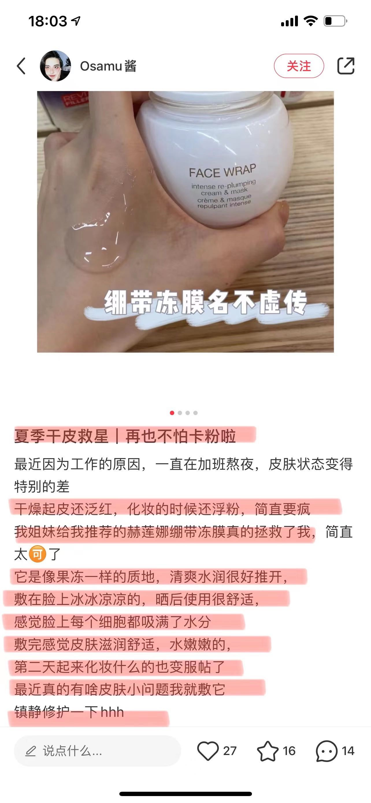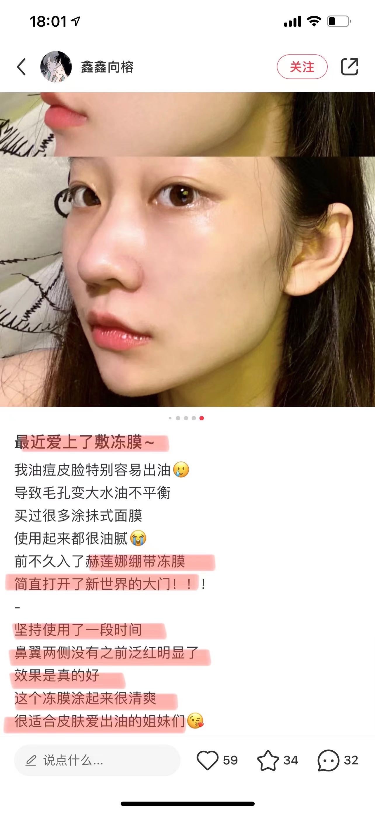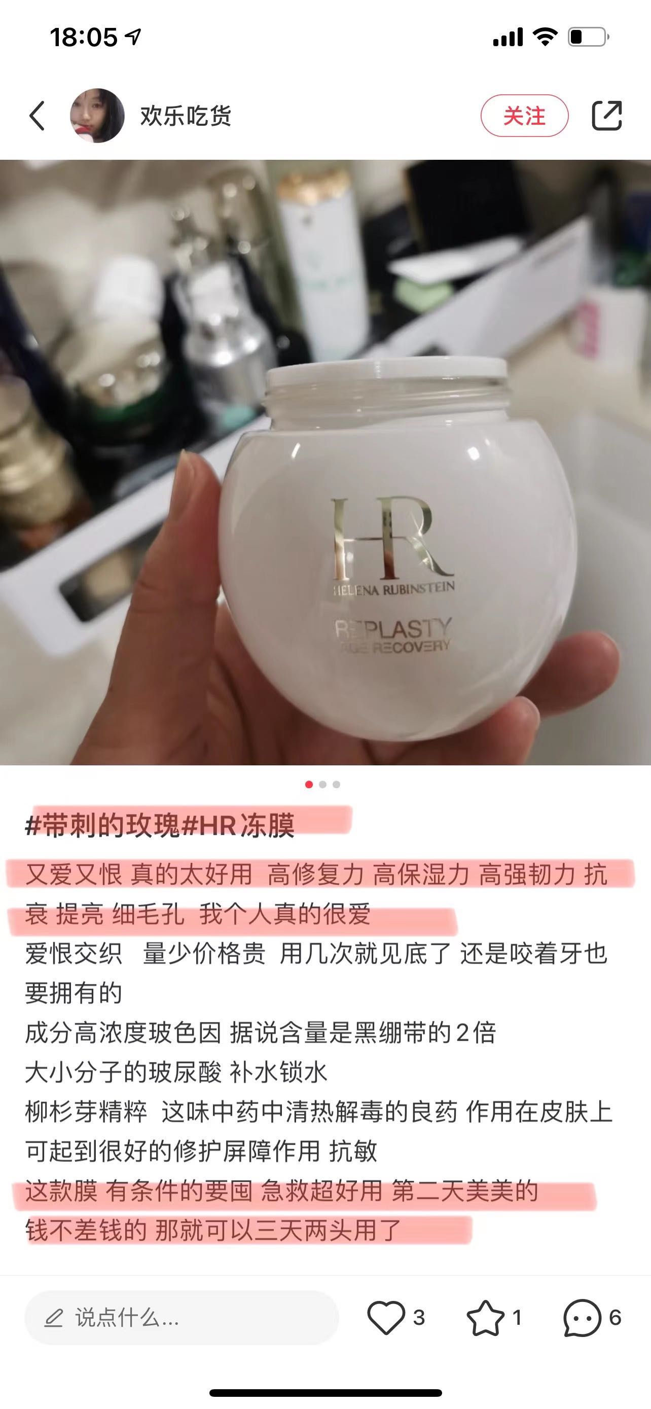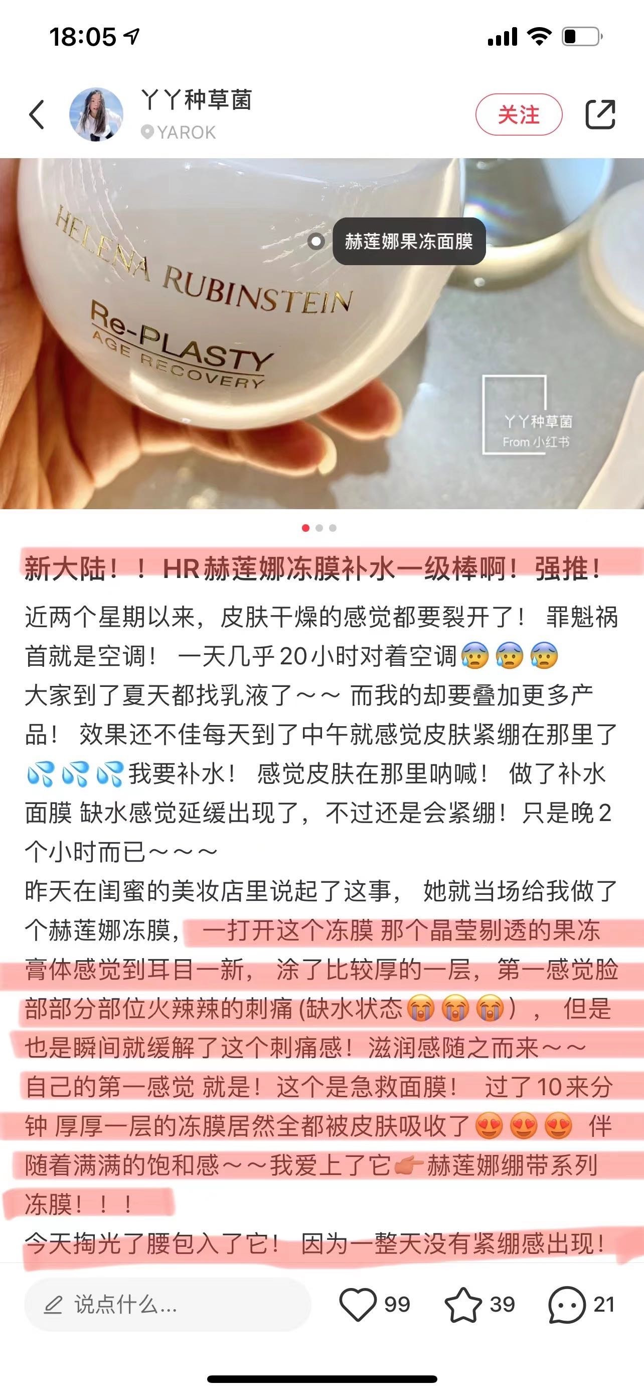 夏日补水修复面膜「HR赫莲娜冻膜5ml」正装50ml售价💰3180!