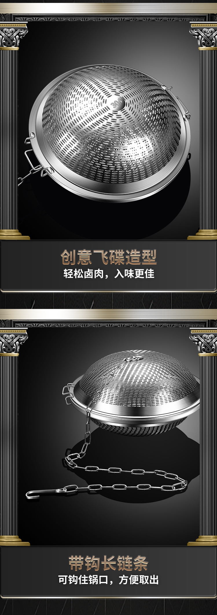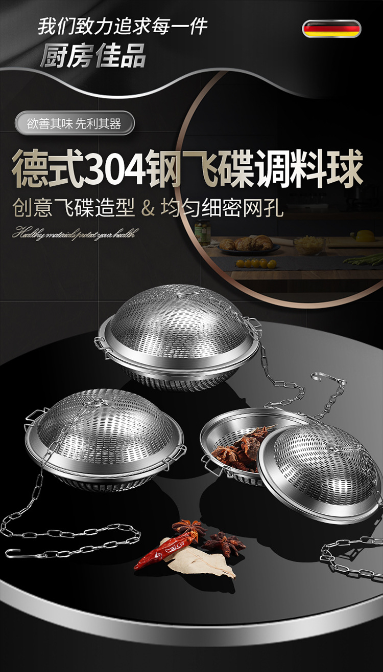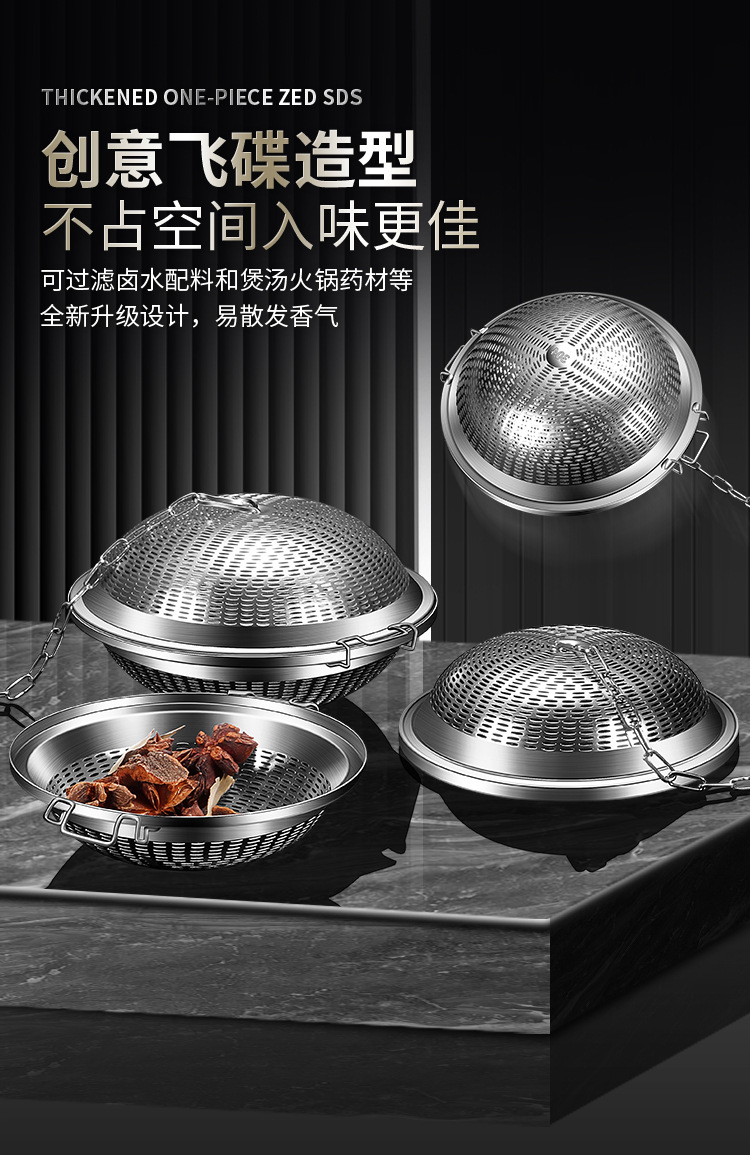 【跨境出口飞碟不锈钢卤料笼】创意304不锈钢调味球家用卤水篮商用加大号调料球火锅卤料过滤器