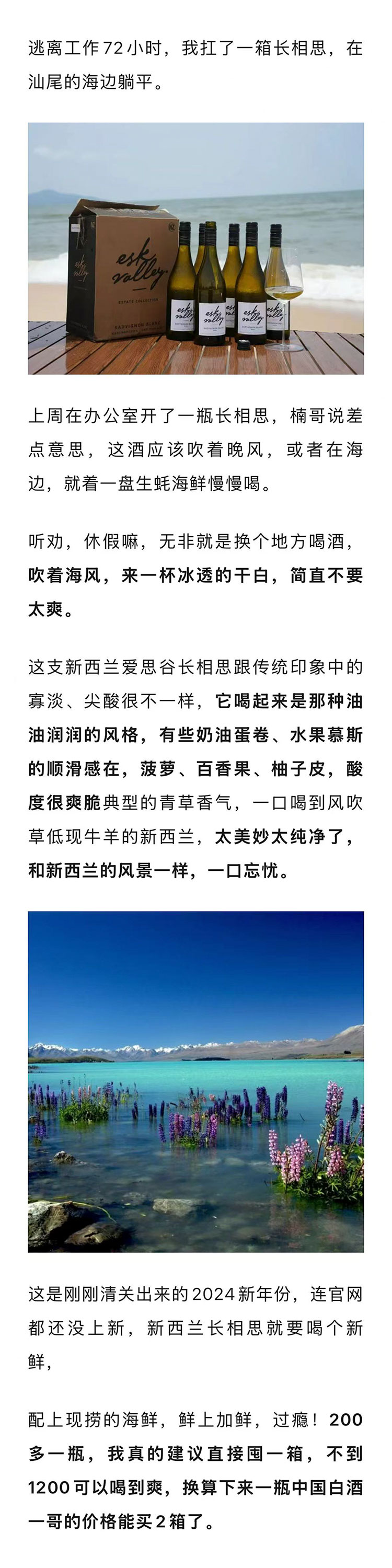 【新西兰名家】2024年新西兰马尔堡爱思谷长相思干白