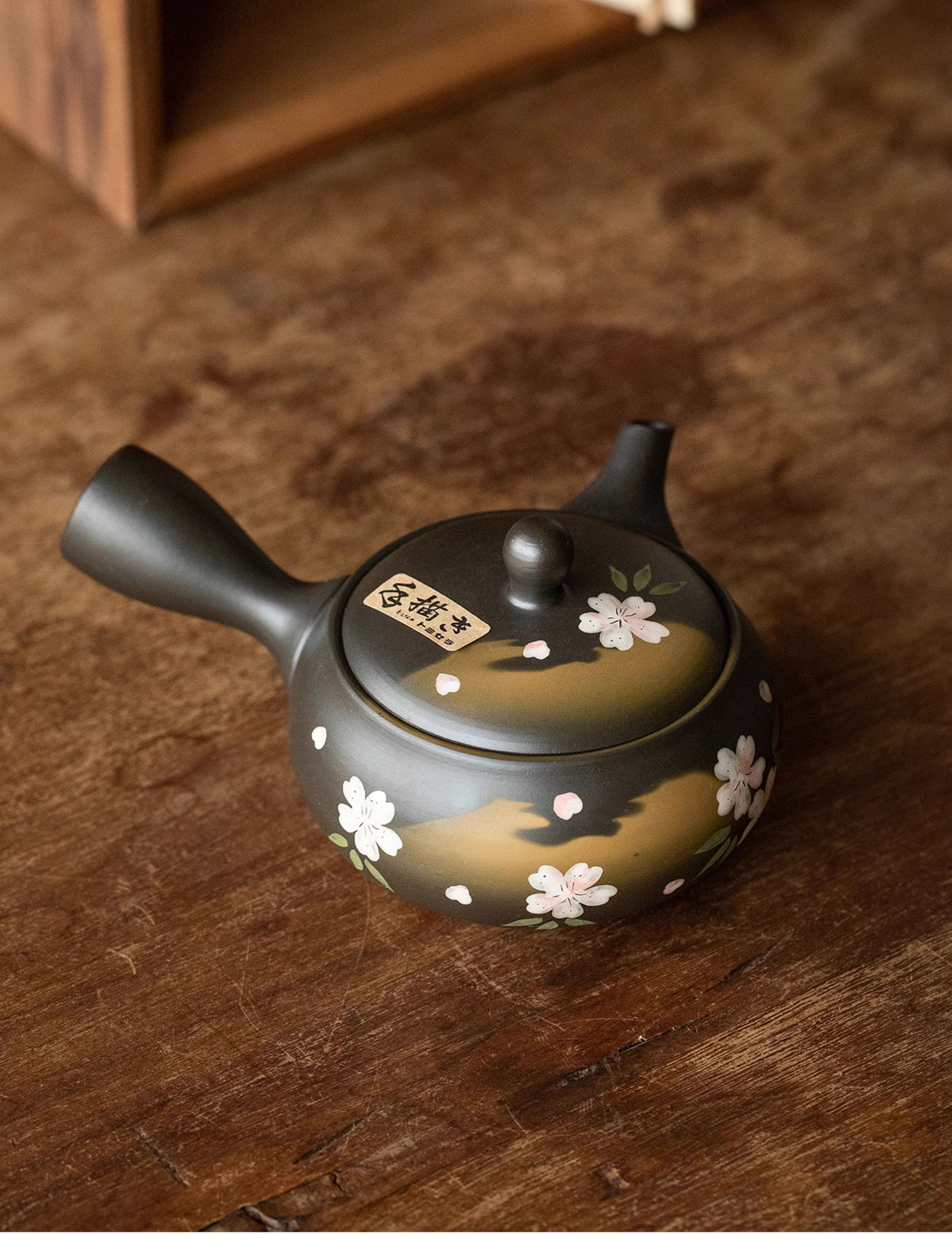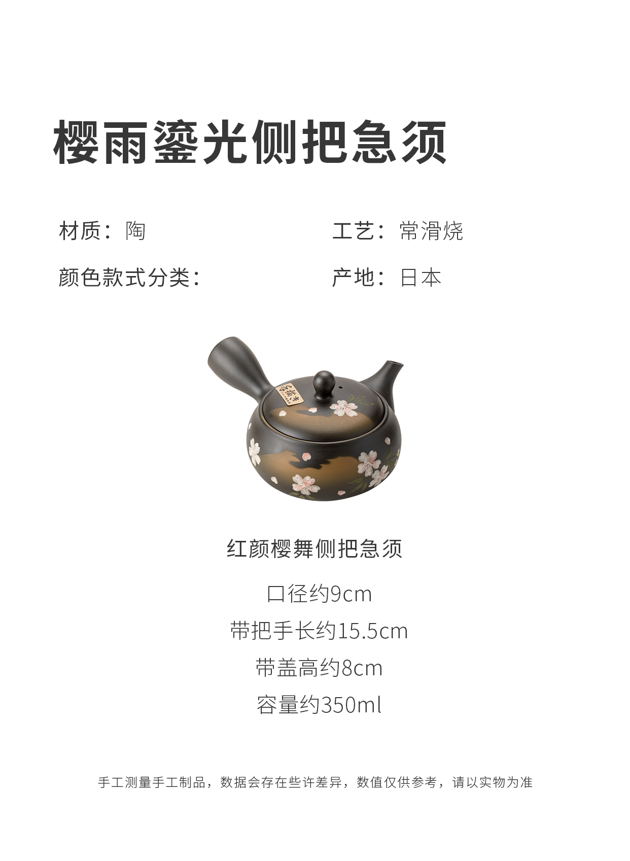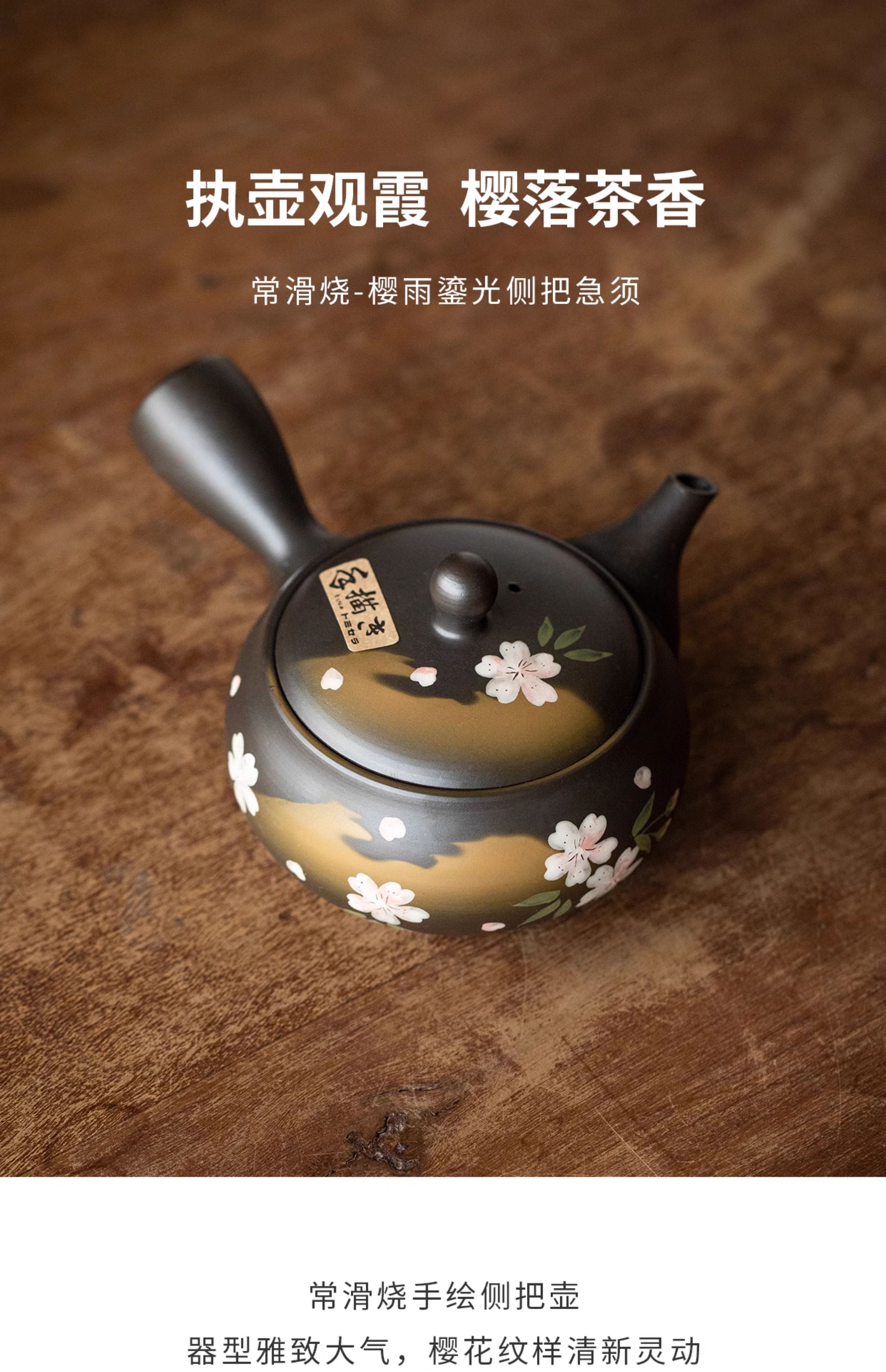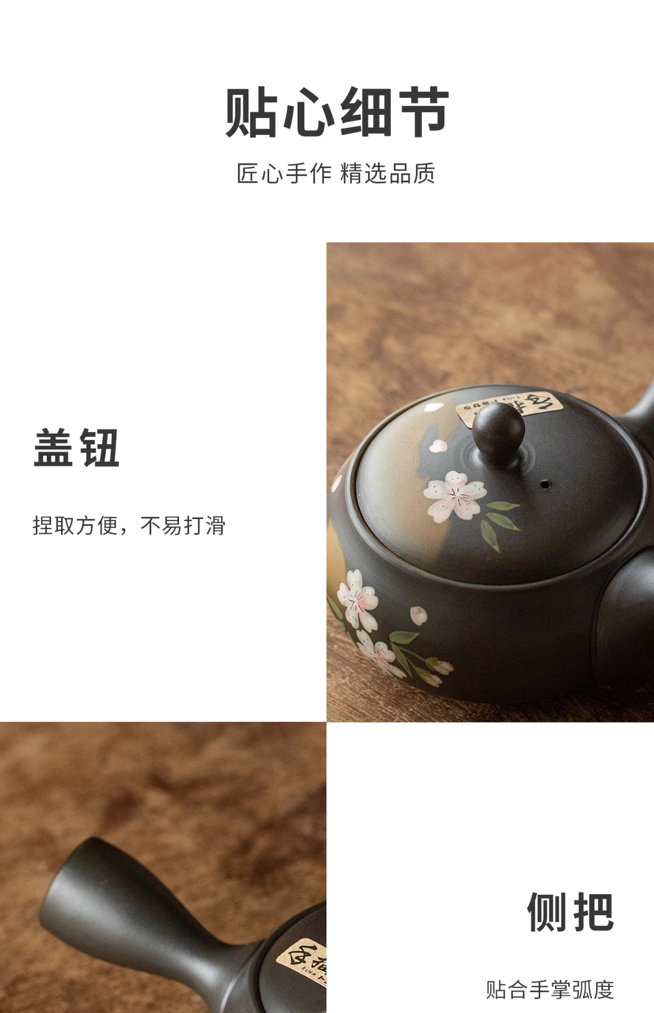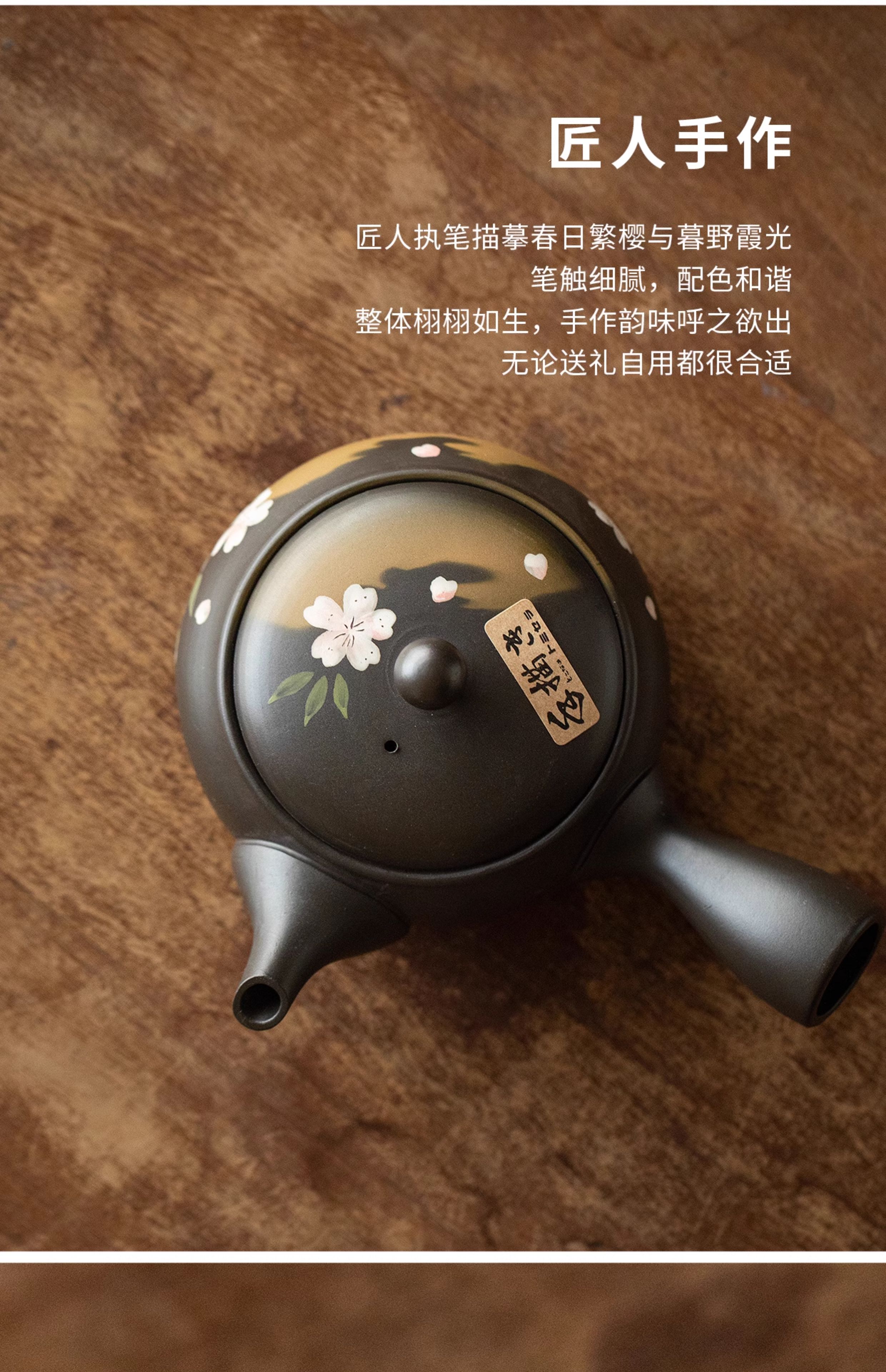 日本进口常滑烧侧把急须壶日式手工家用泡茶壶防烫过滤小清新茶具樱花流光茶壶370cc
