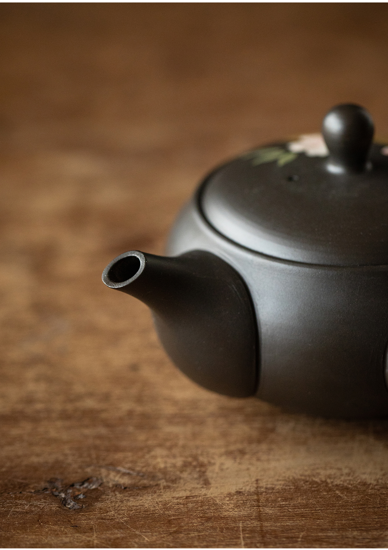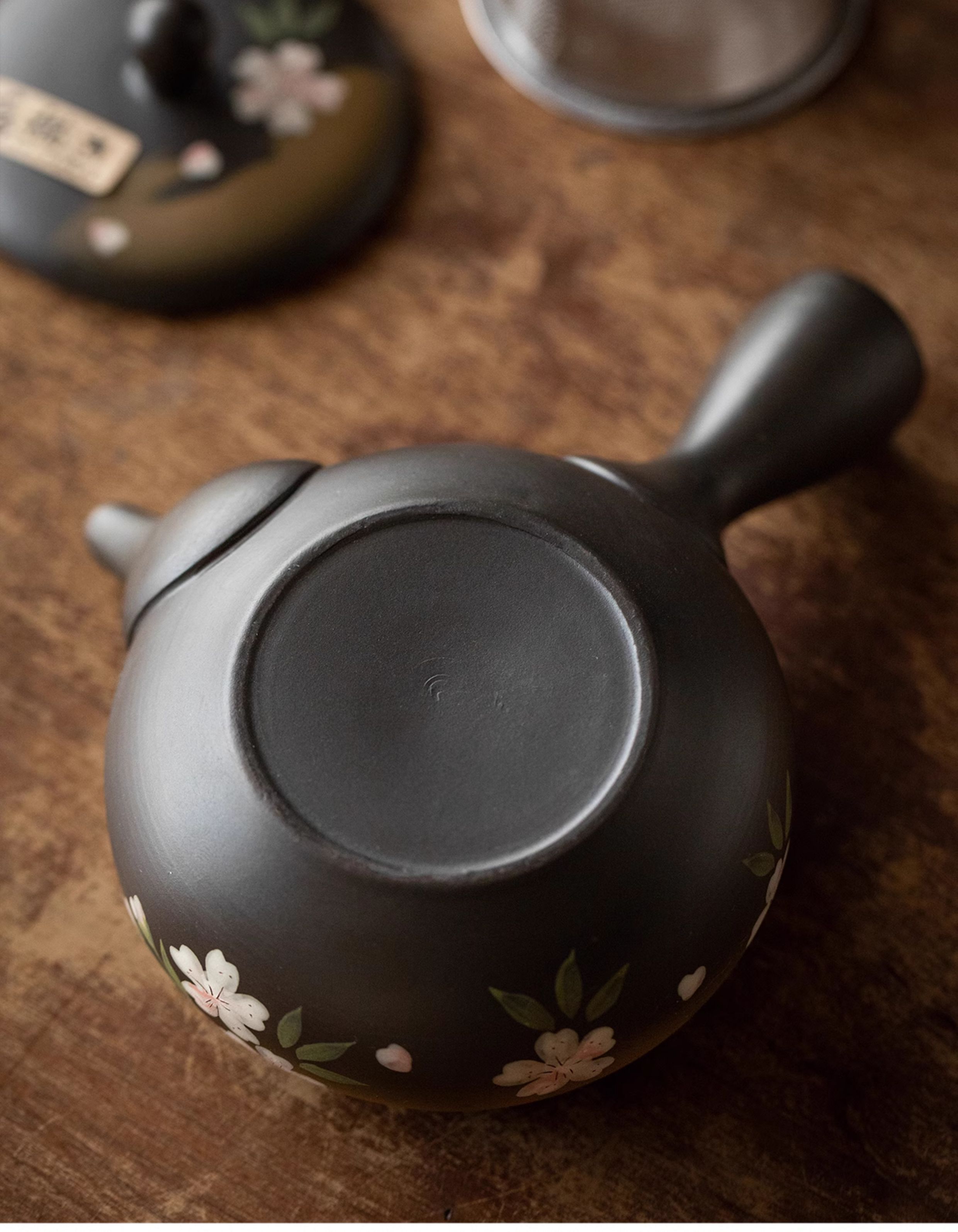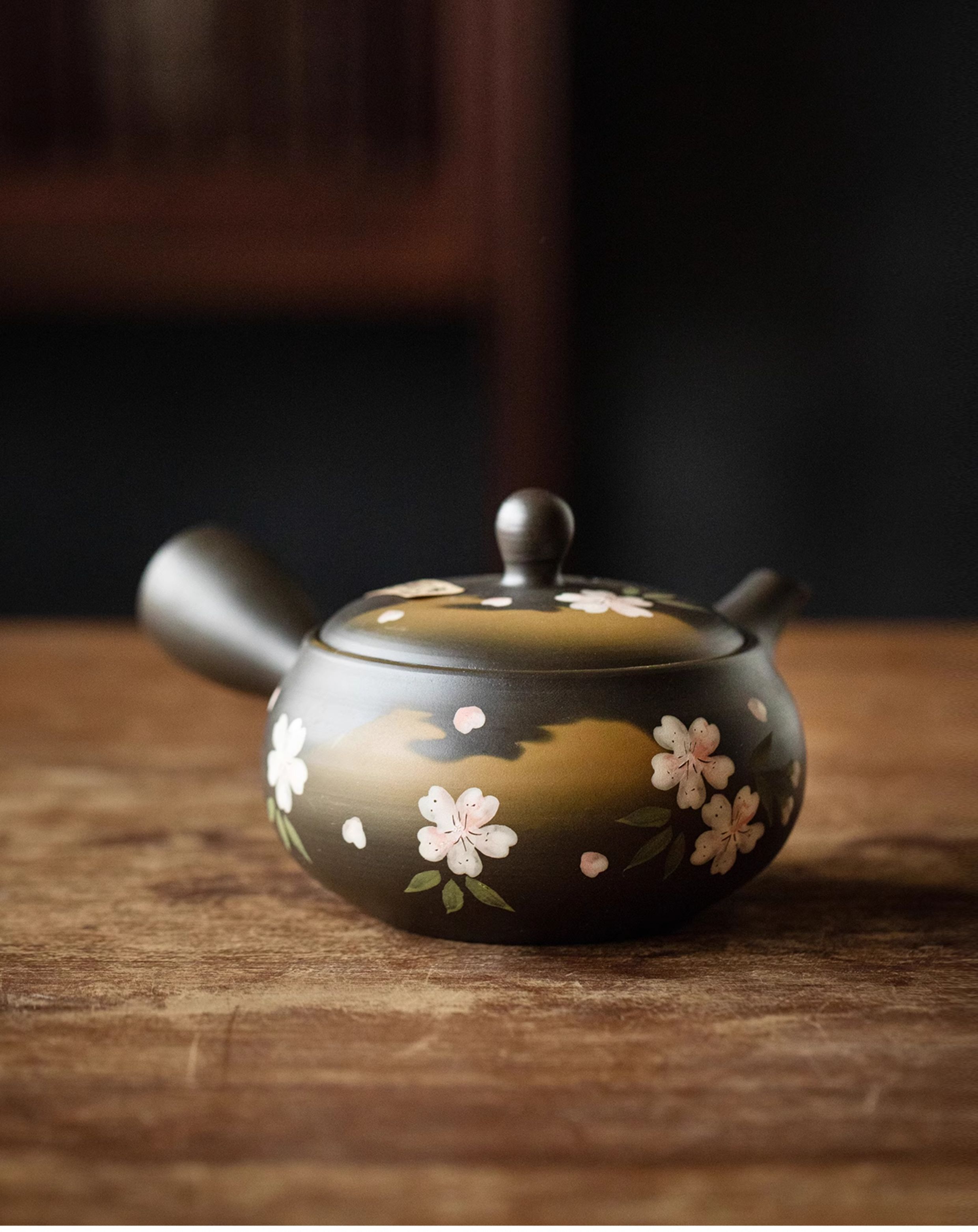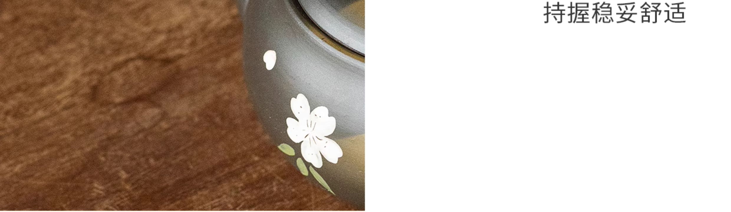 日本进口常滑烧侧把急须壶日式手工家用泡茶壶防烫过滤小清新茶具樱花流光茶壶370cc