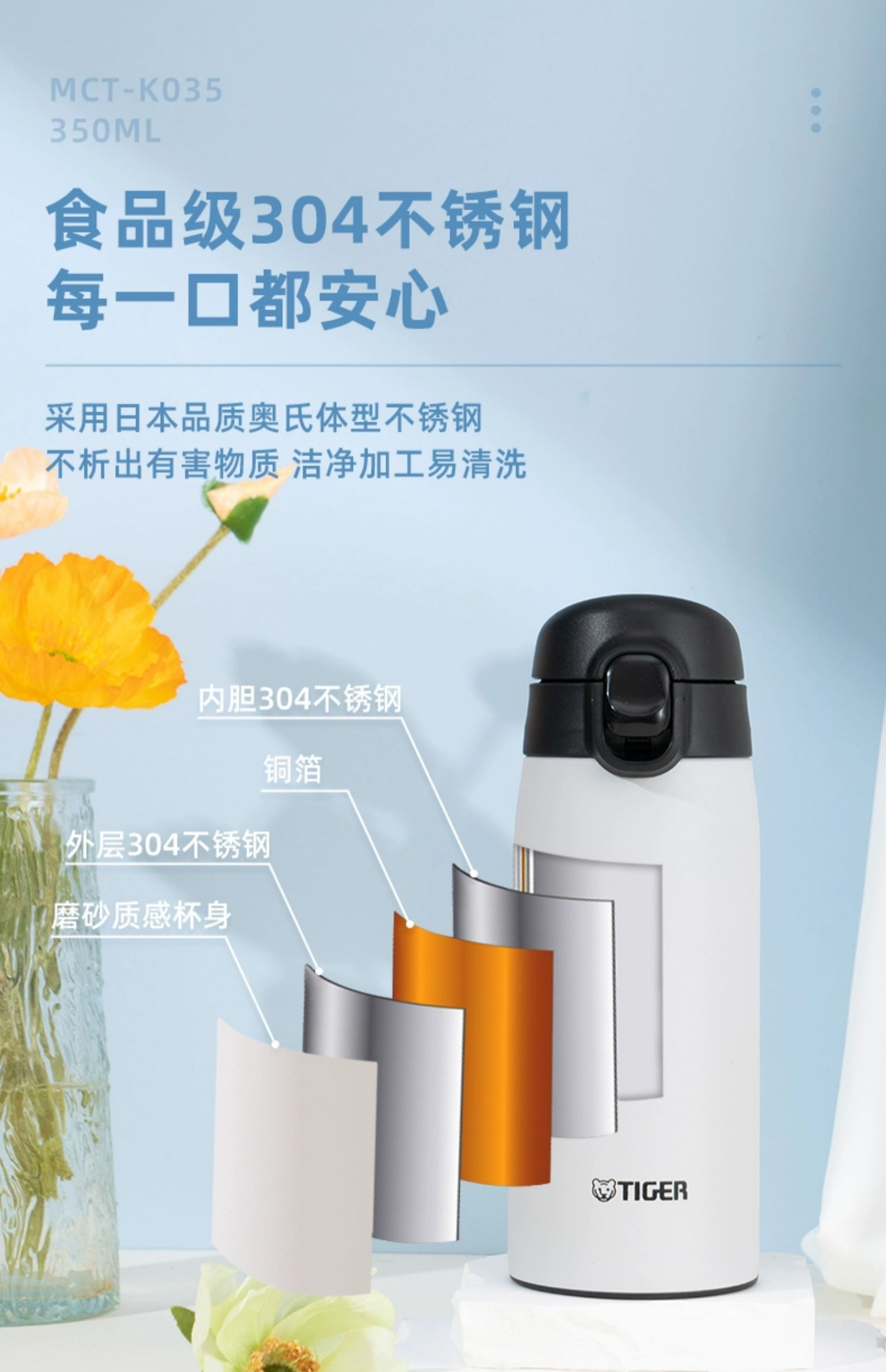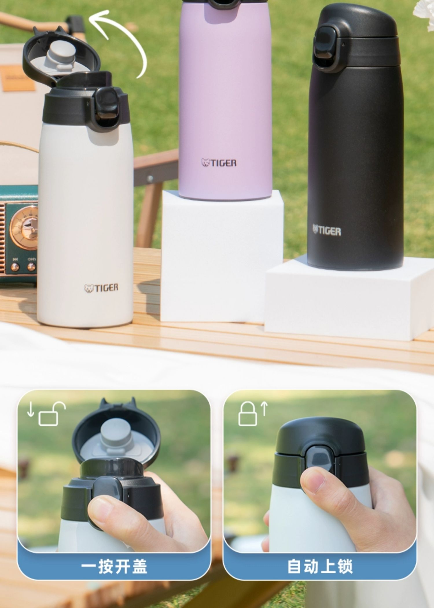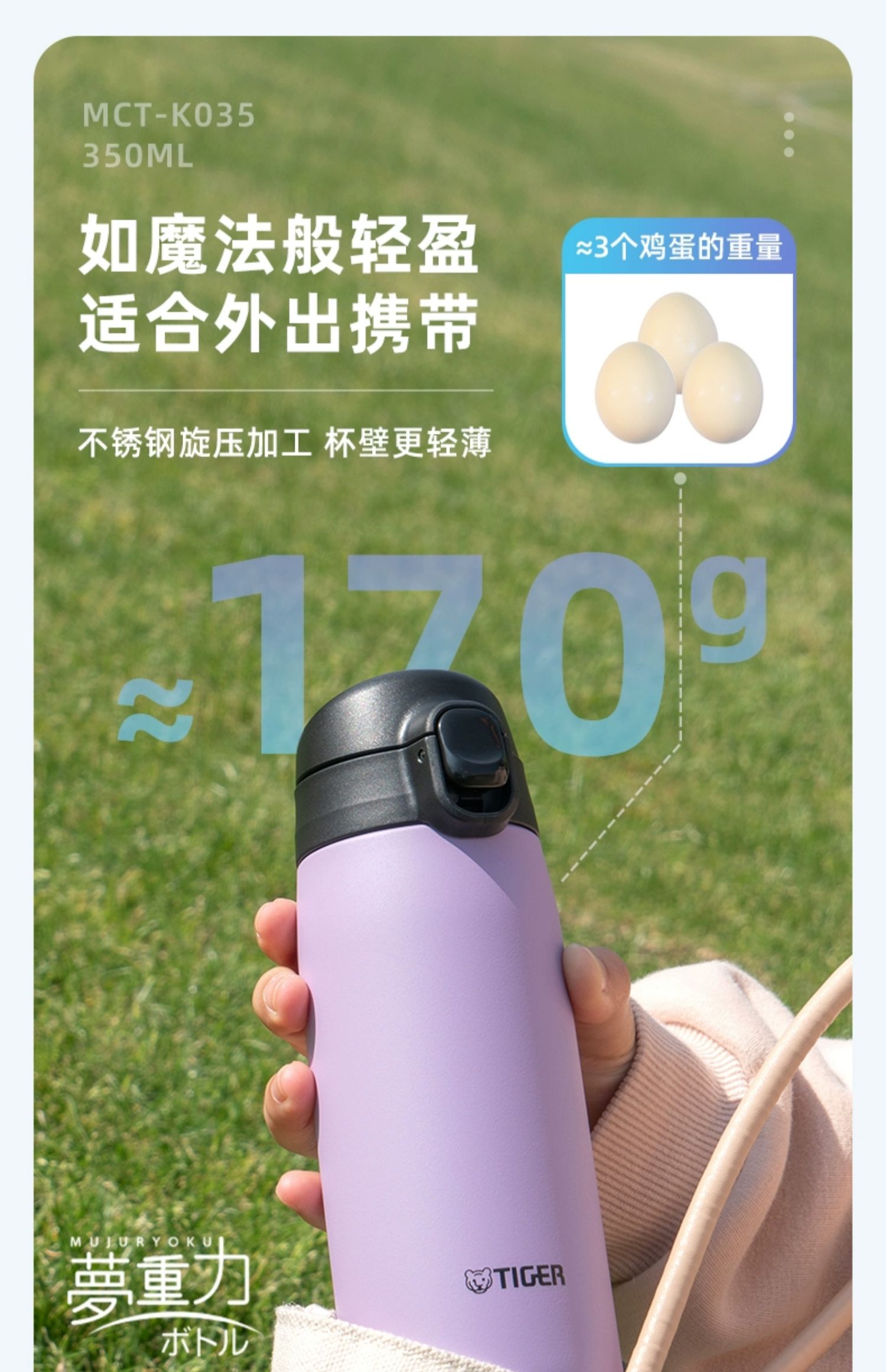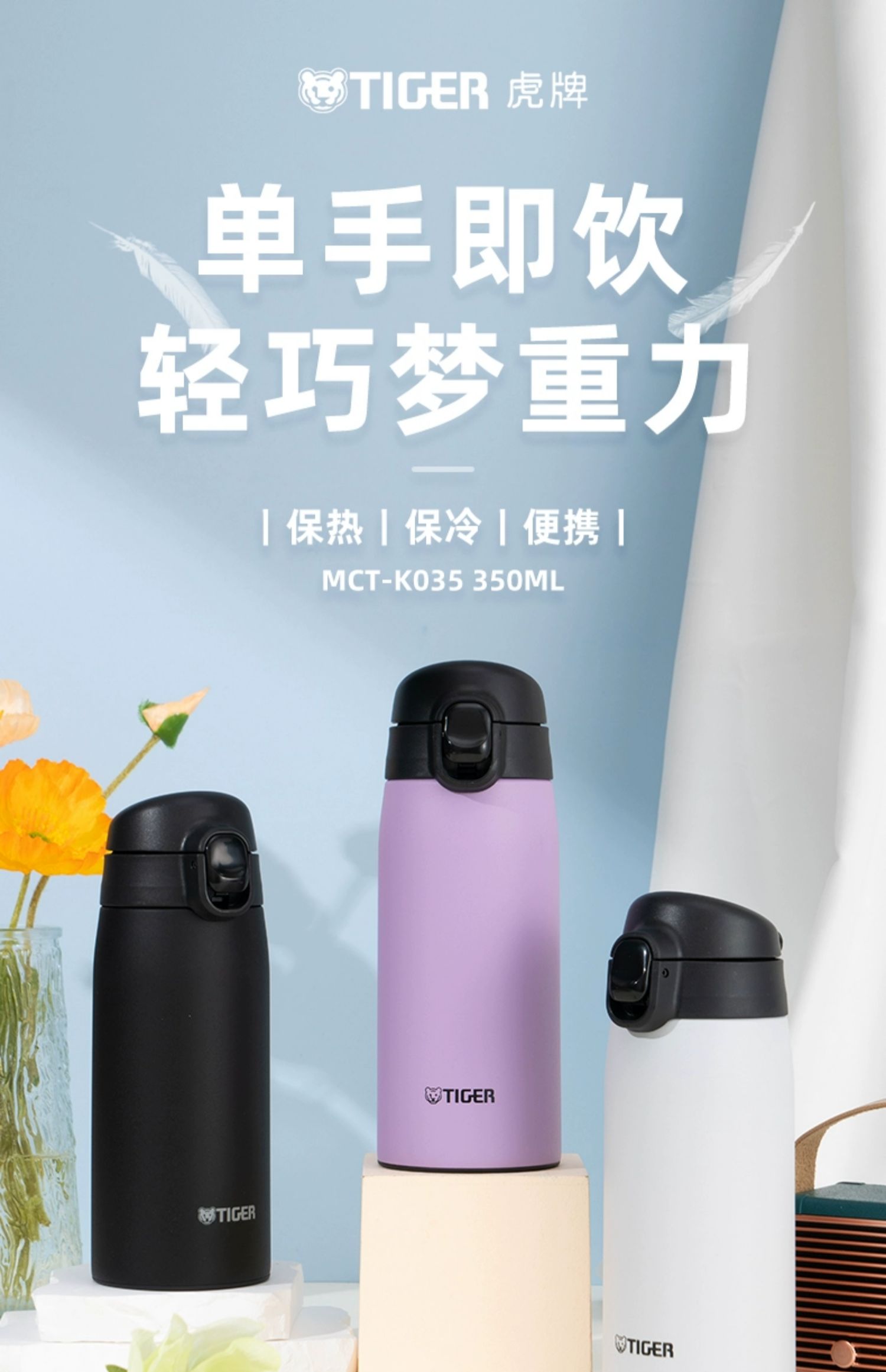 【清仓特惠5.5折,最后2个无货退款】虎牌不锈钢保温杯便携简约单手弹盖保温杯(丁香紫)350ml