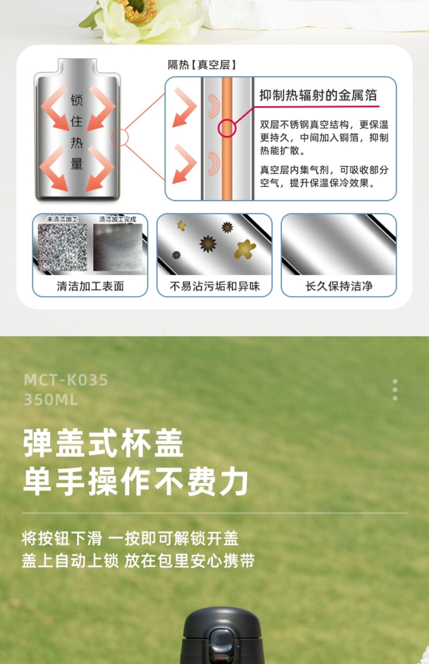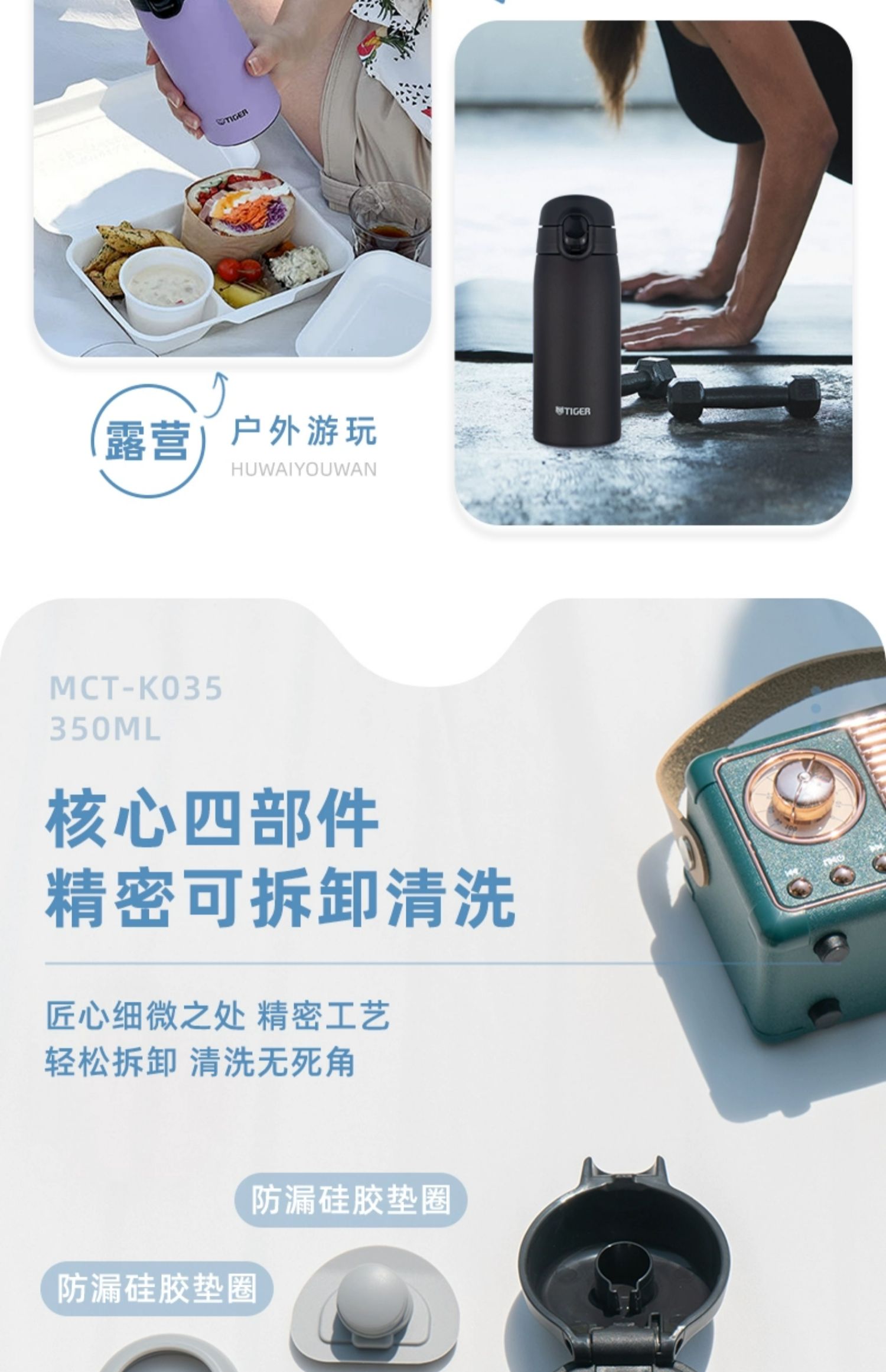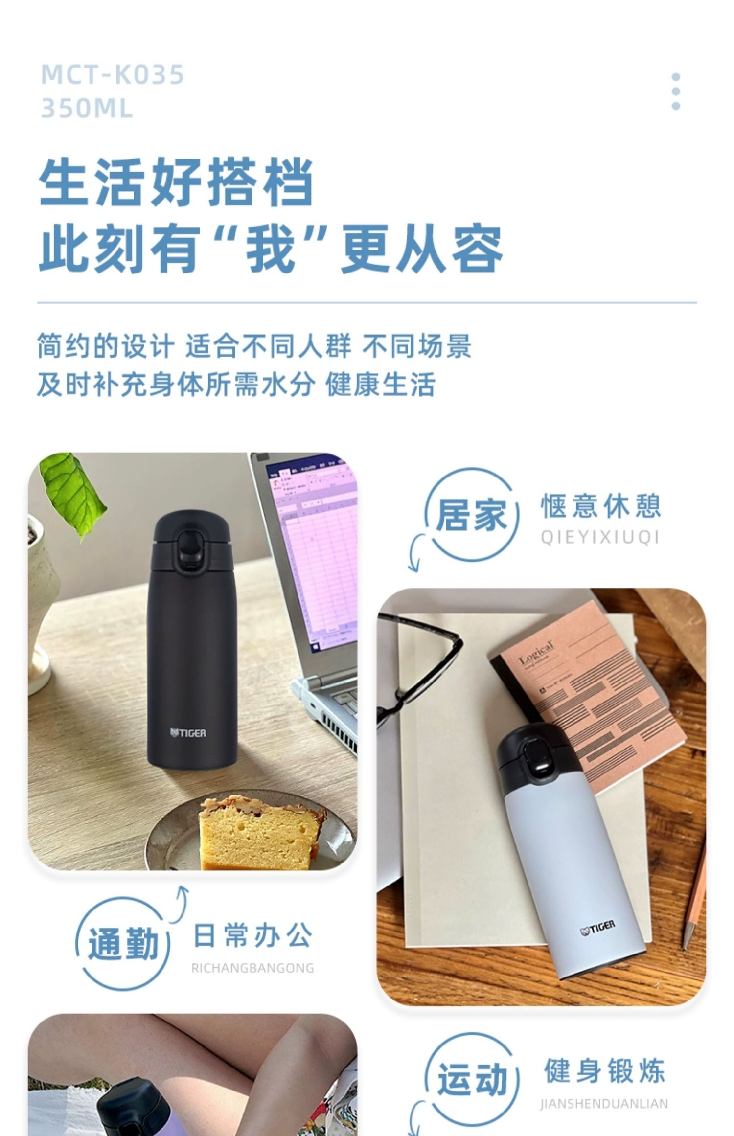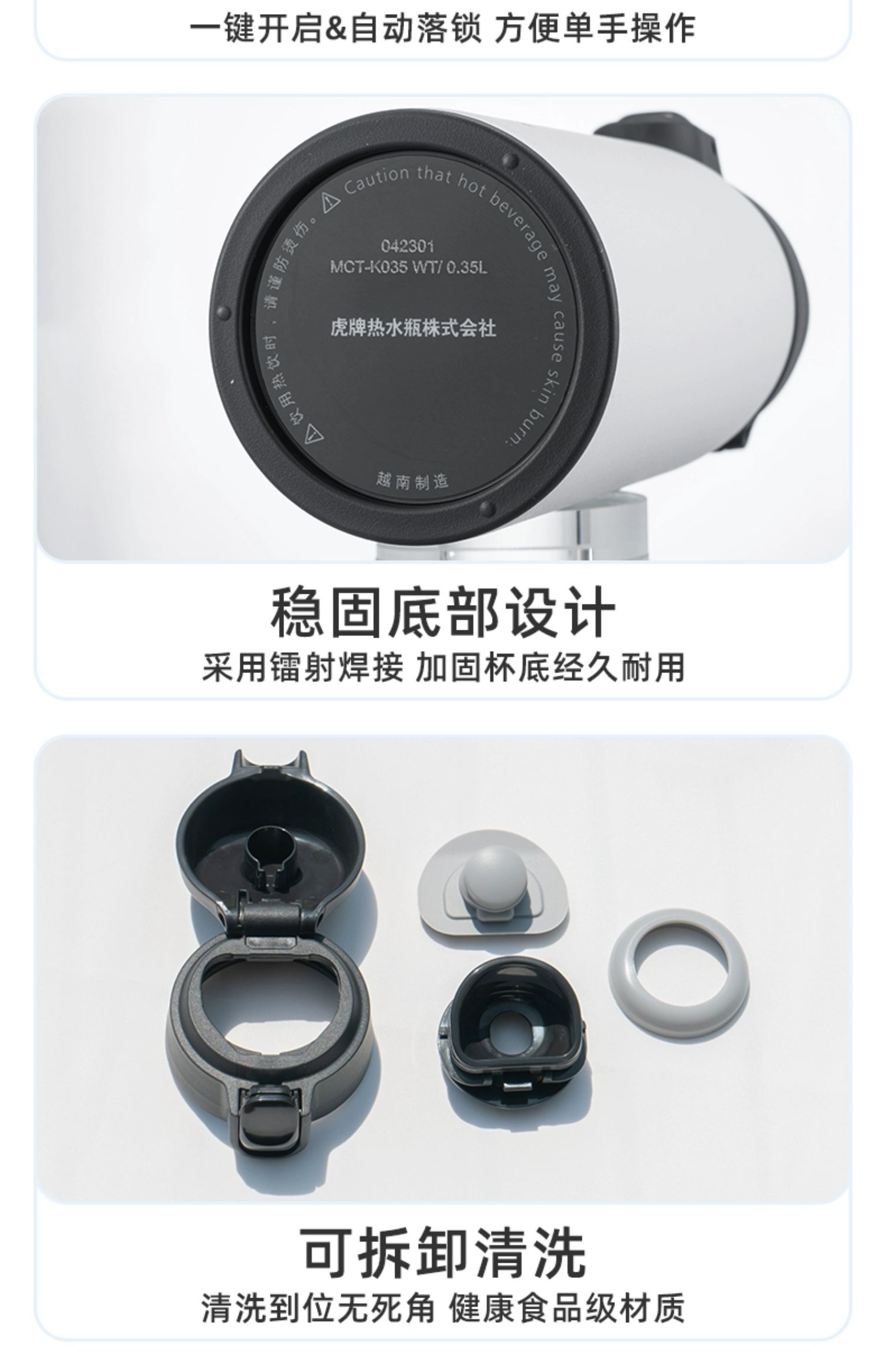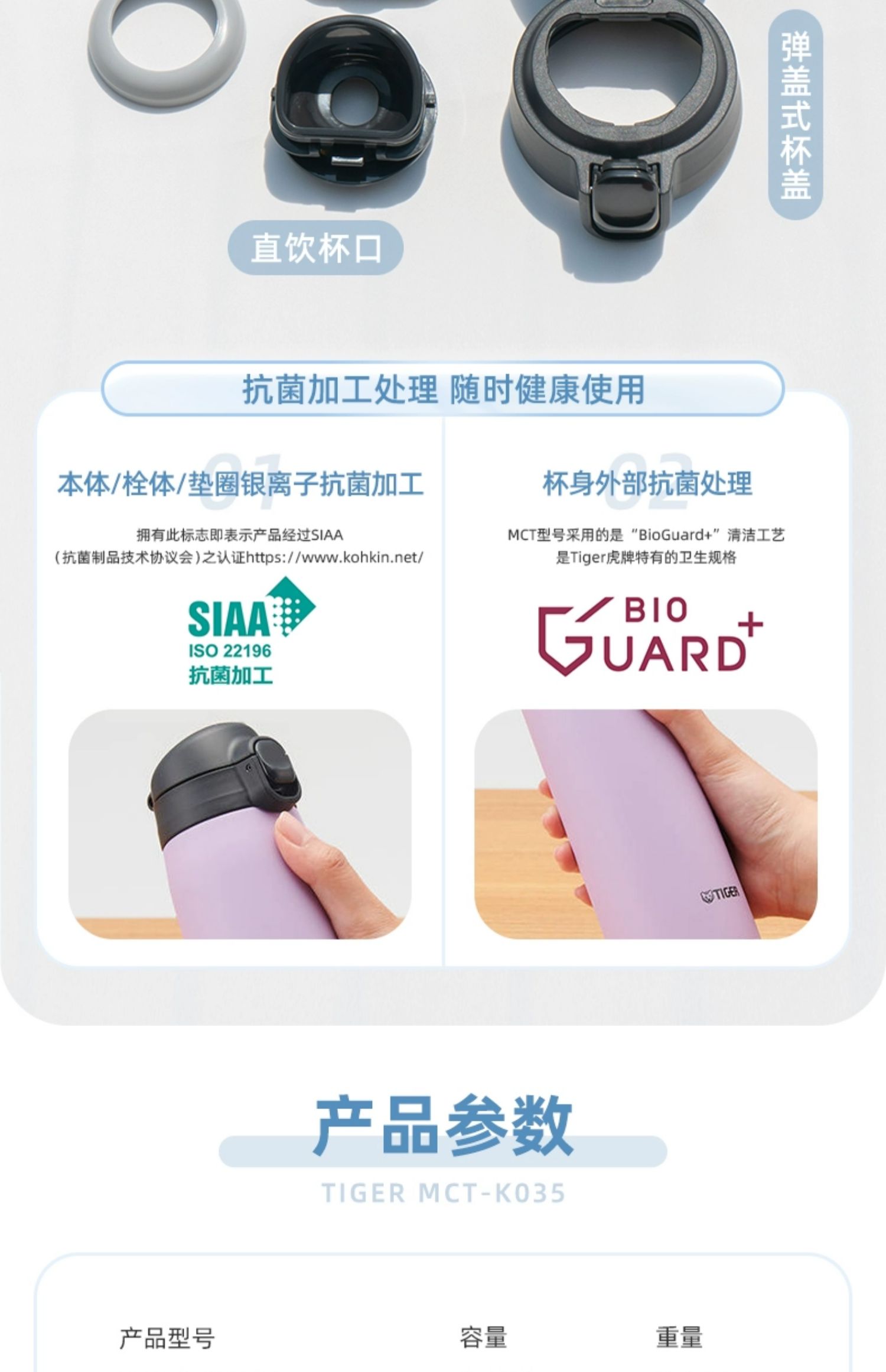 【清仓特惠5.5折,最后2个无货退款】虎牌不锈钢保温杯便携简约单手弹盖保温杯(丁香紫)350ml