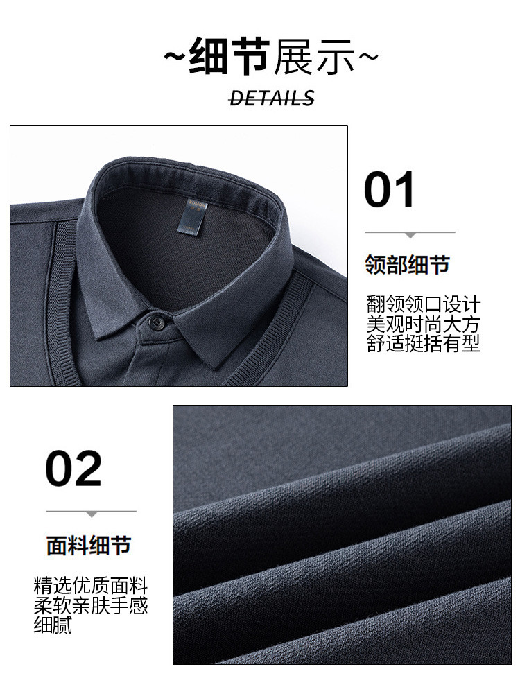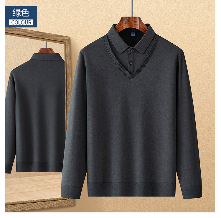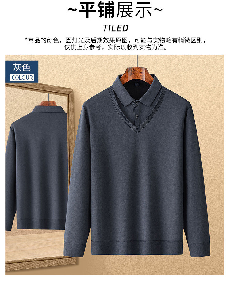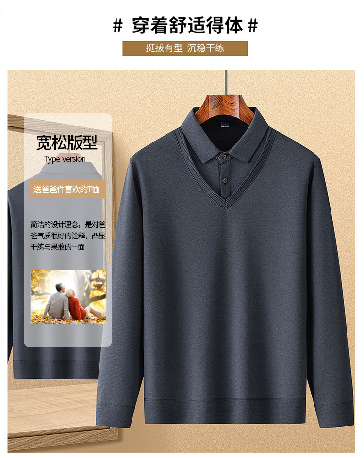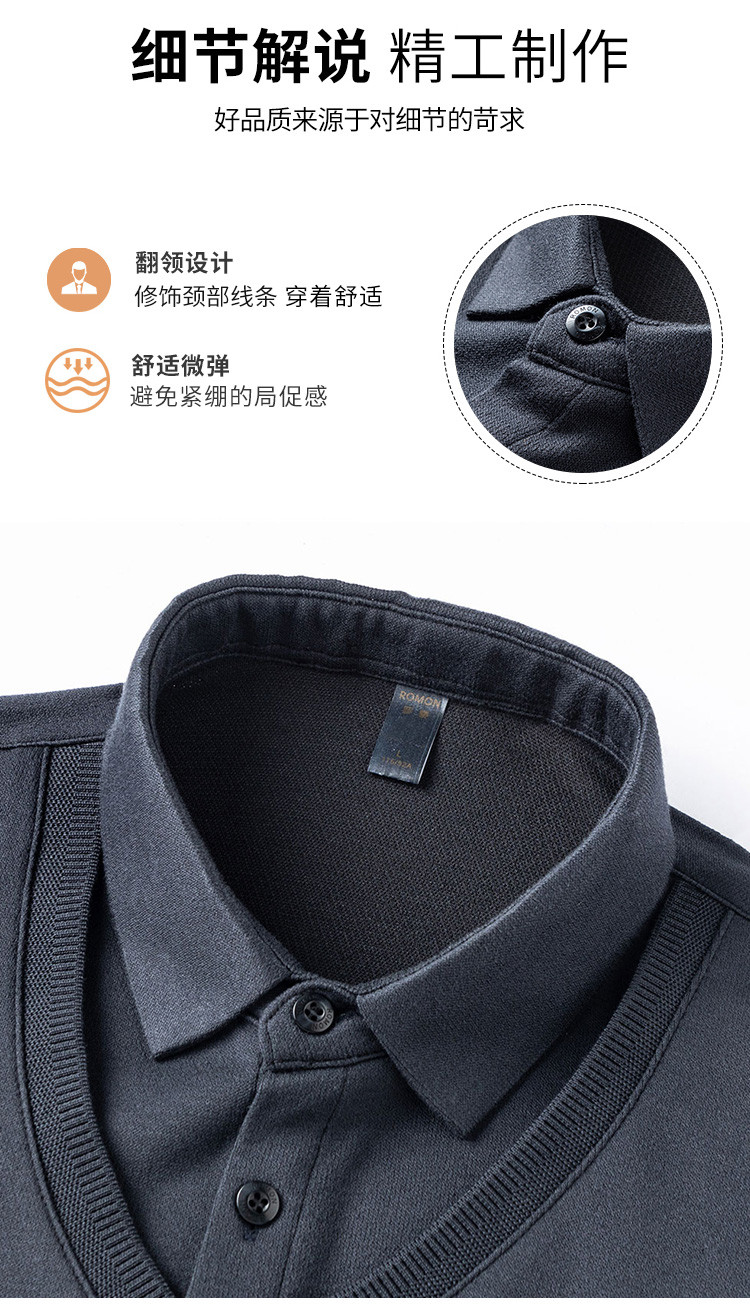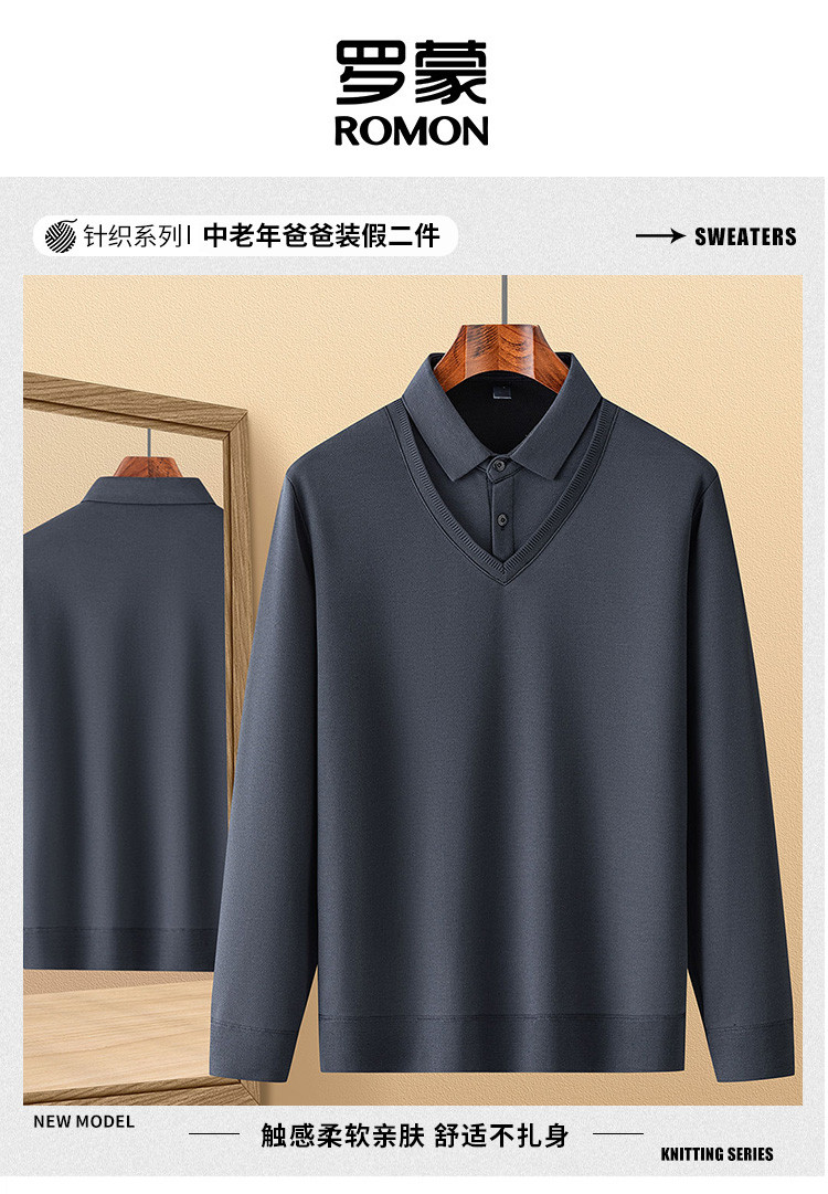 罗蒙假两件衬衫领针织衫男士衬衫长袖衬衫男中老年爸爸装