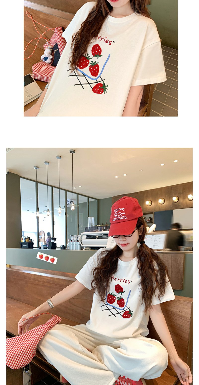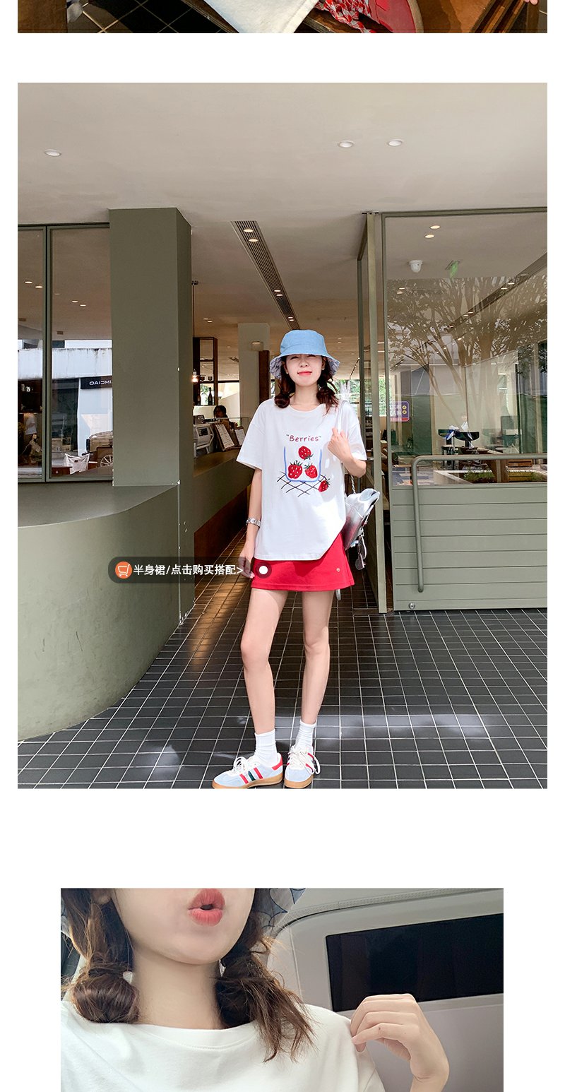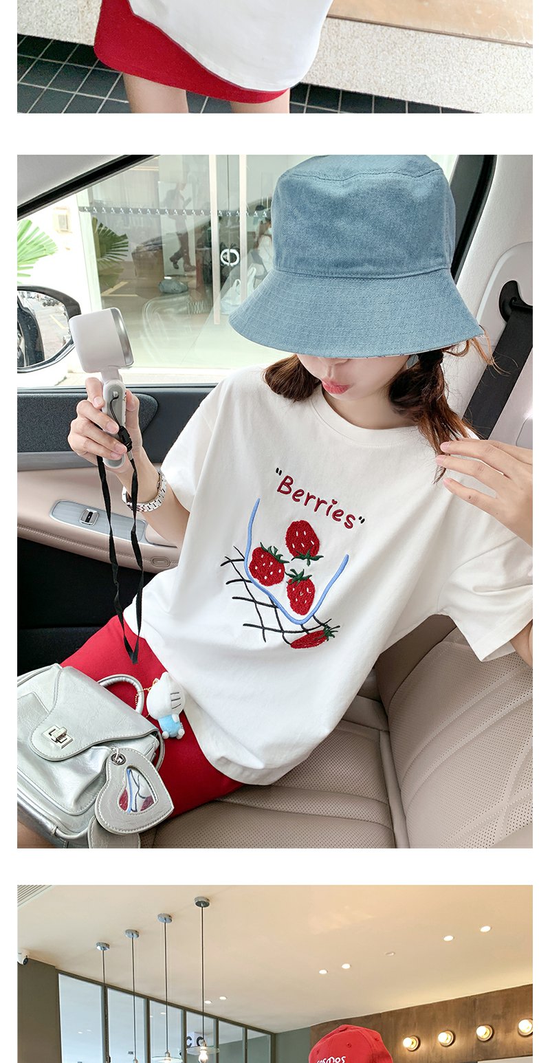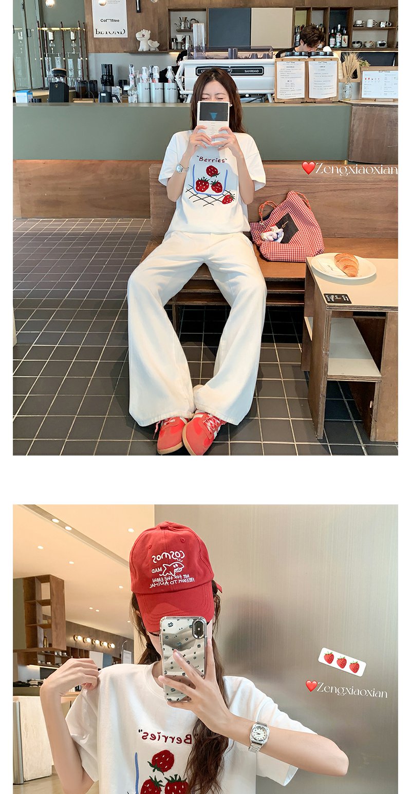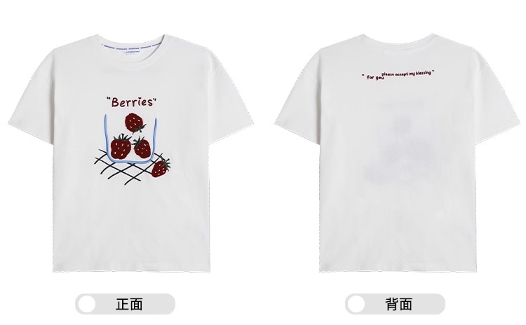 <曾小咸推荐>现货秒杀!微信超特价!甜美风草莓绣花宽松圆领短袖T恤 日常139.99 立减80 秒杀59.99!