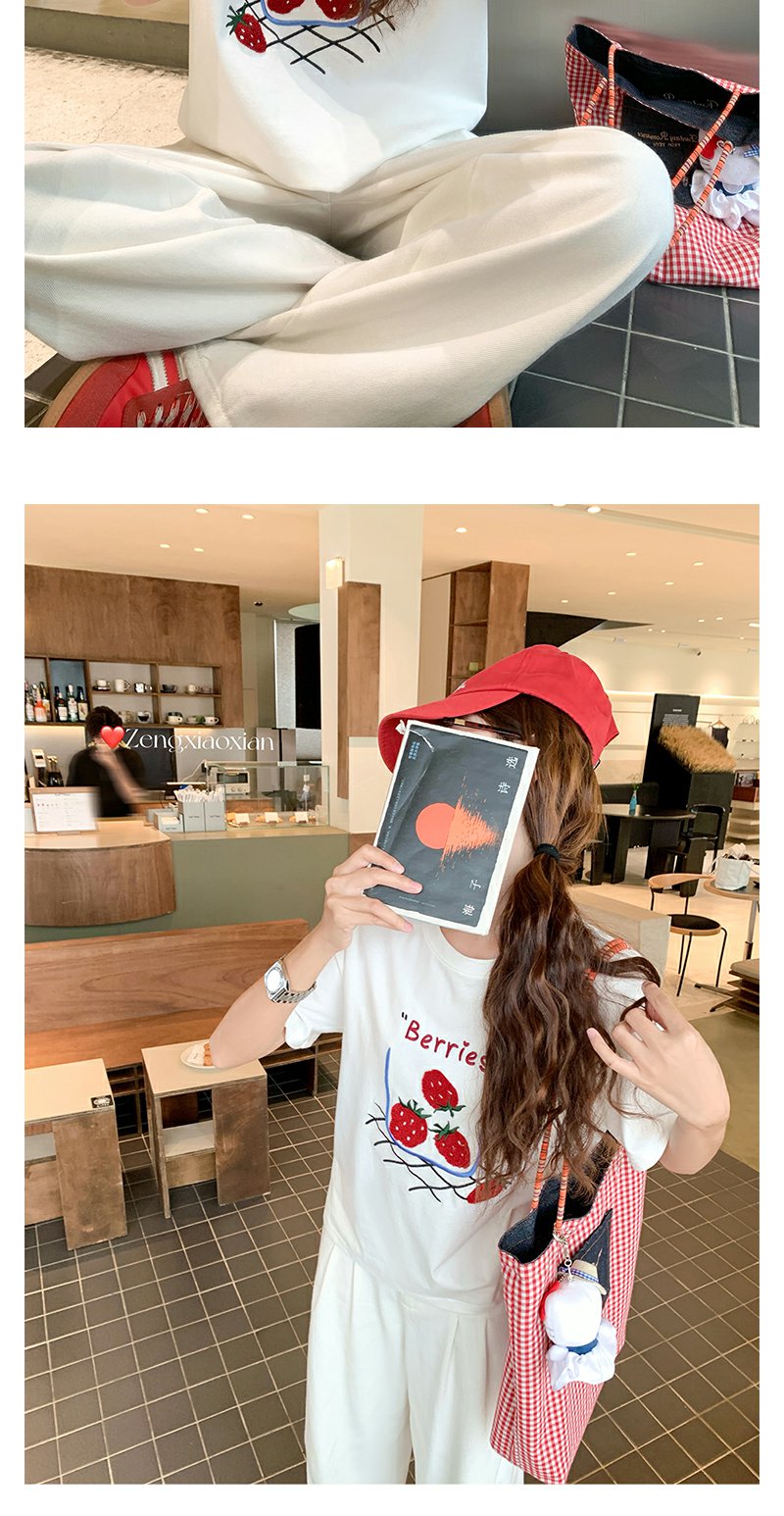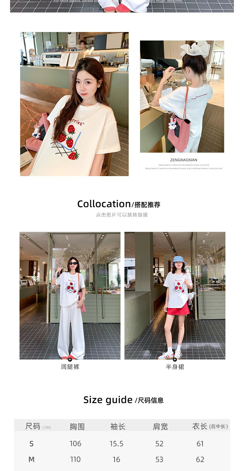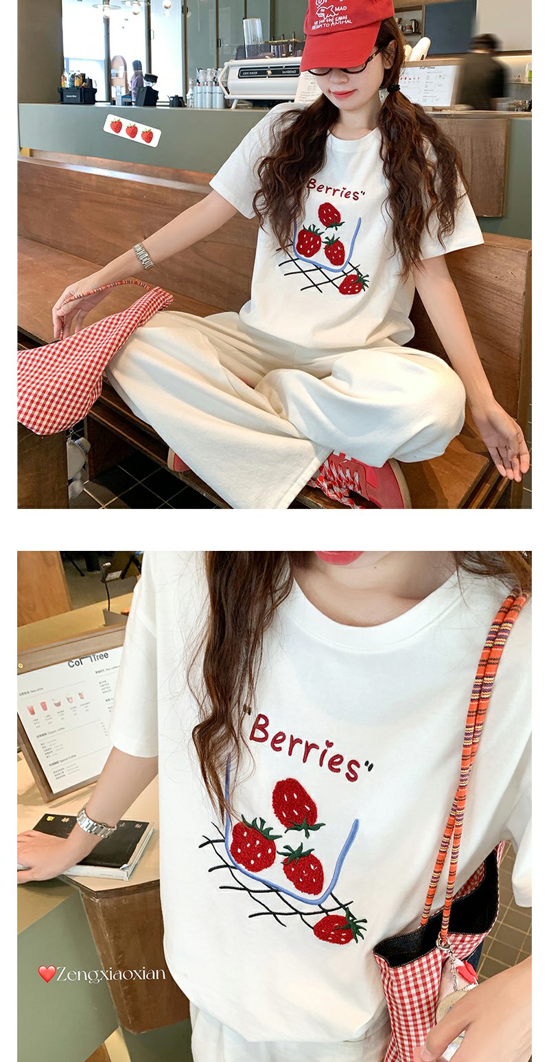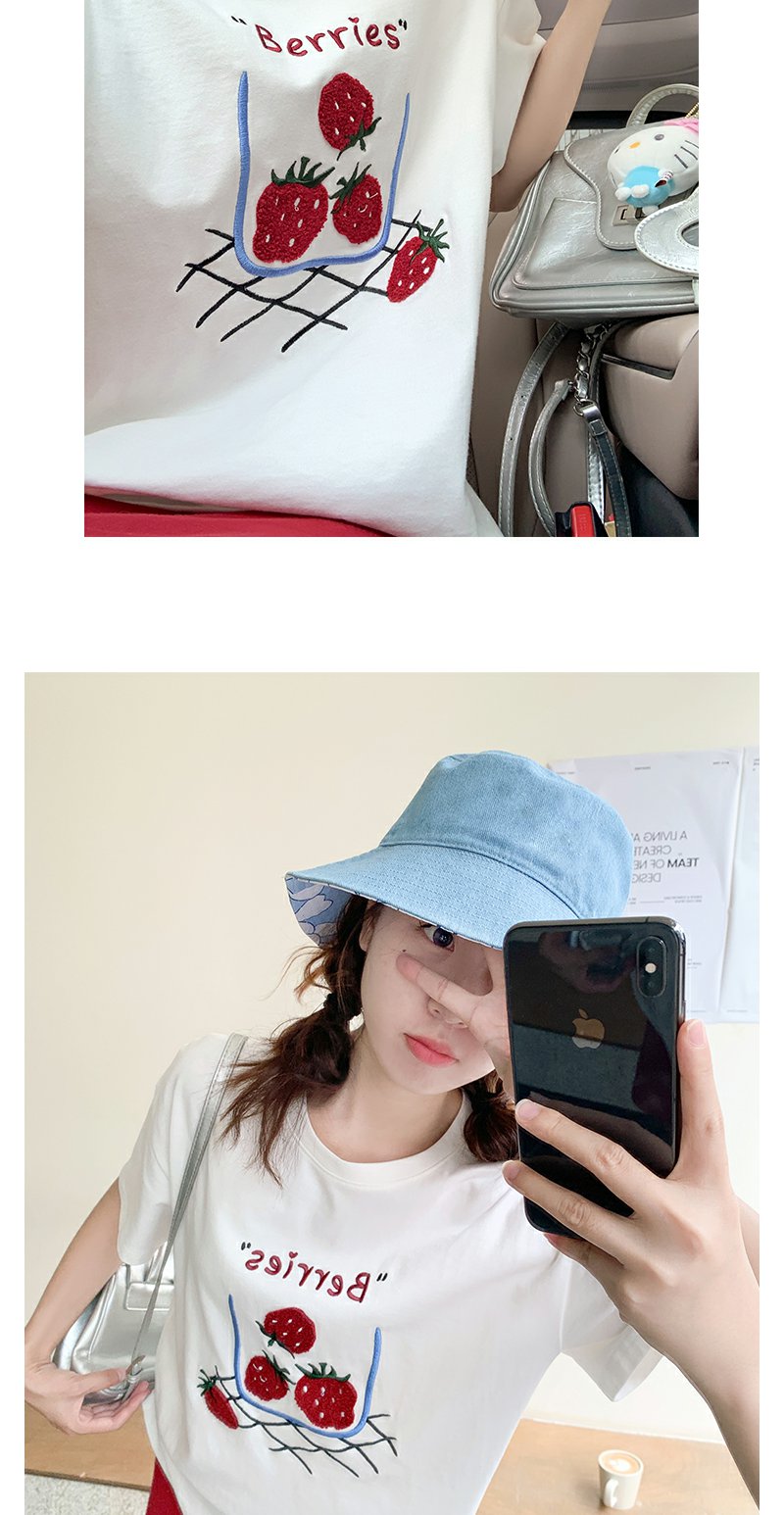 <曾小咸推荐>现货秒杀!微信超特价!甜美风草莓绣花宽松圆领短袖T恤 日常139.99 立减80 秒杀59.99!