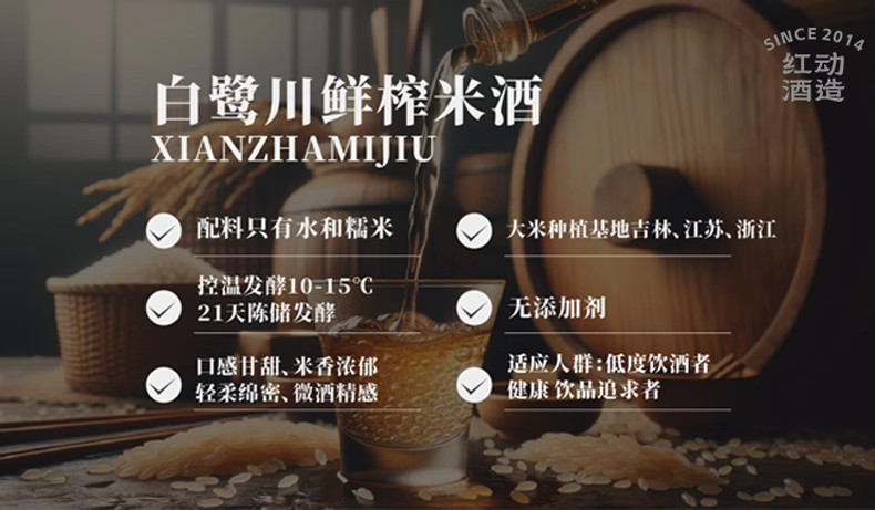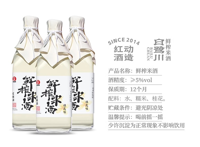 红动白鹭川鲜榨米酒原味/桂花味(发酵酒)≥5度 整箱 500ml*12瓶