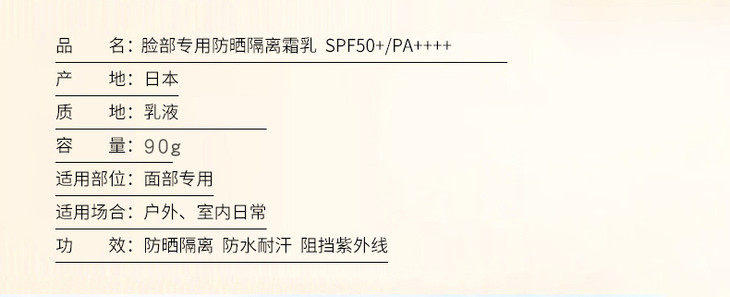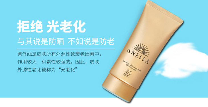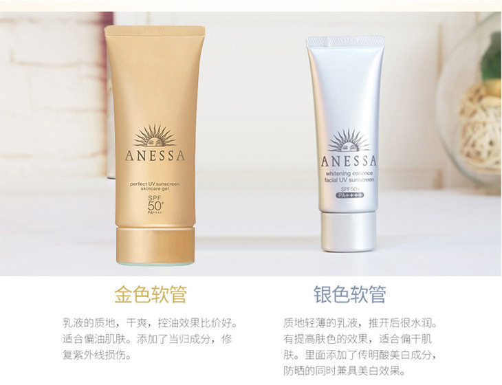 安热沙金色软管防晒隔离霜防水资生堂安耐晒小金瓶防水防汗90g(972417)