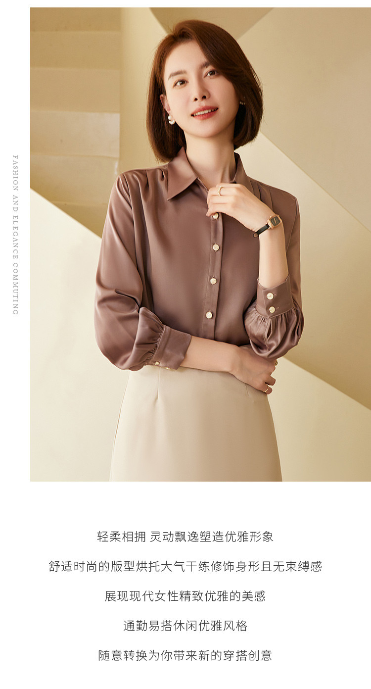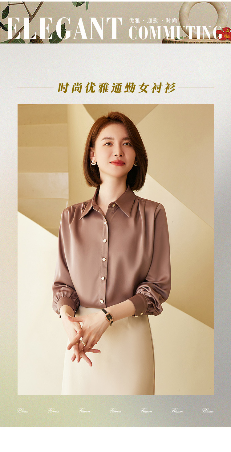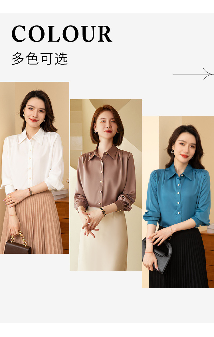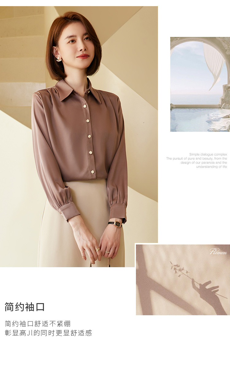 【多色可选】罗蒙春夏长袖衬衫女士商务通勤休闲百搭缎面衬衫女