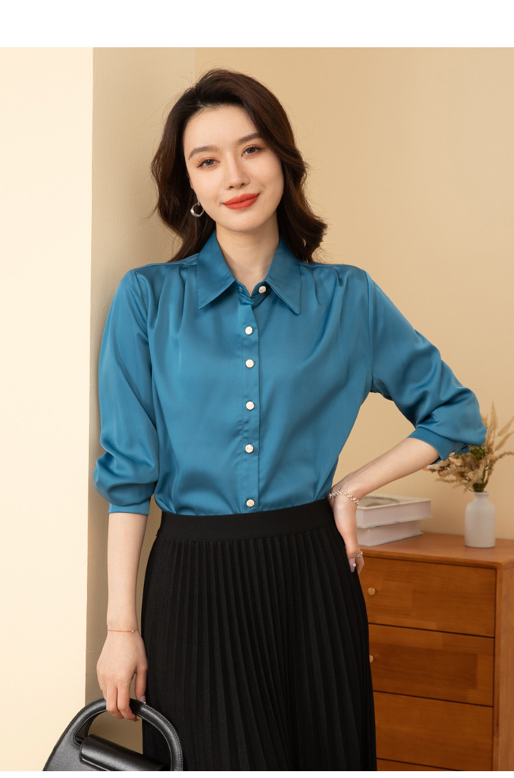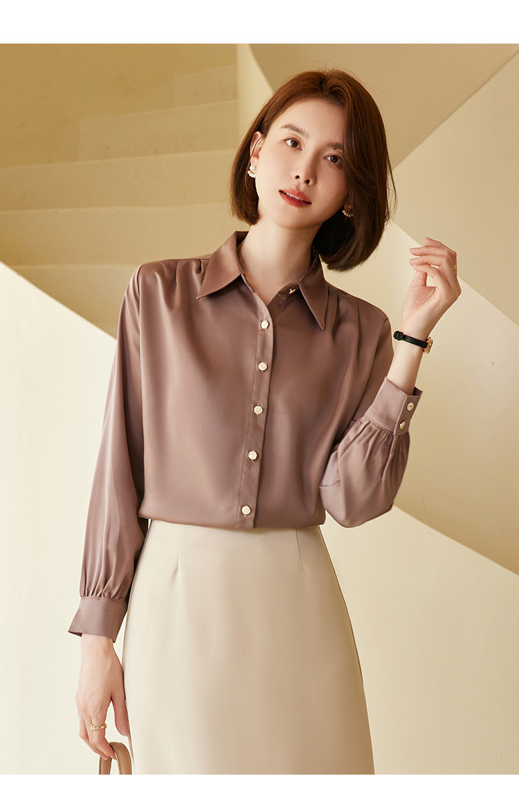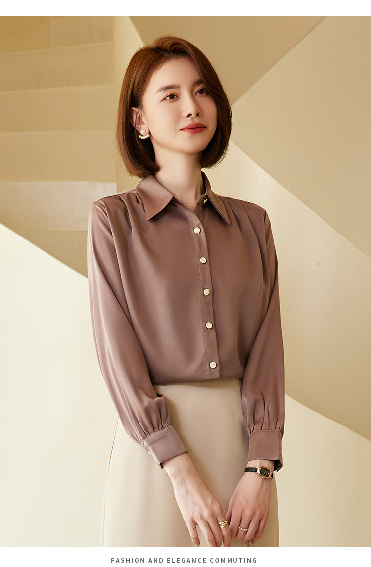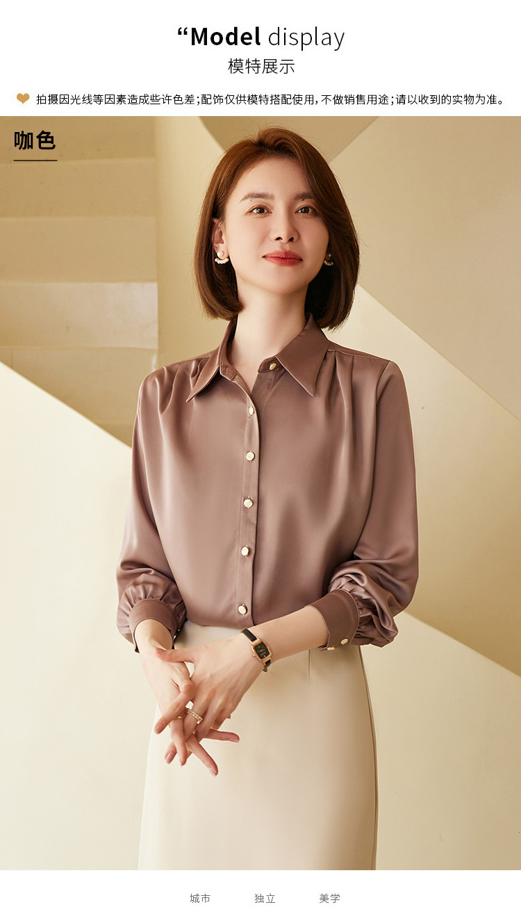 【多色可选】罗蒙春夏长袖衬衫女士商务通勤休闲百搭缎面衬衫女