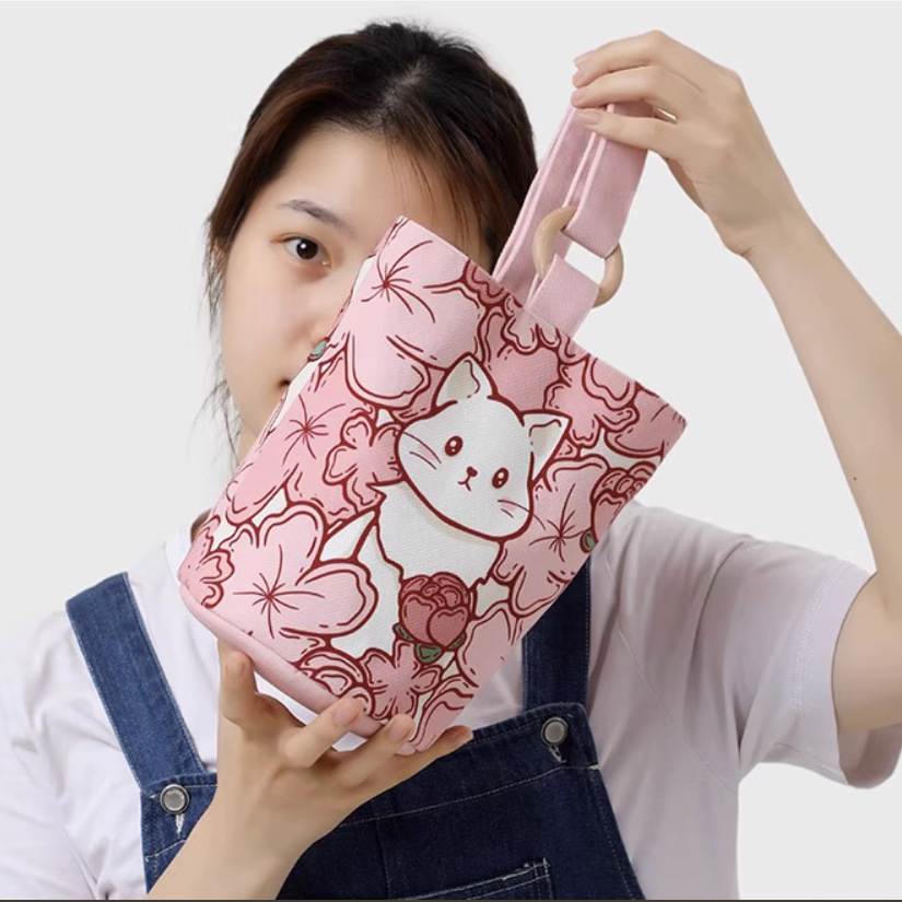 上班族便携手提袋帆布水桶包可爱水桶型手拎便当包宝妈外出手提包