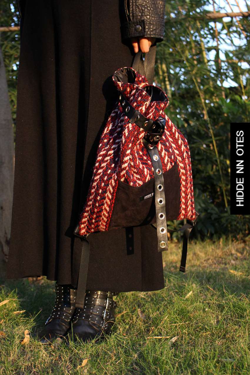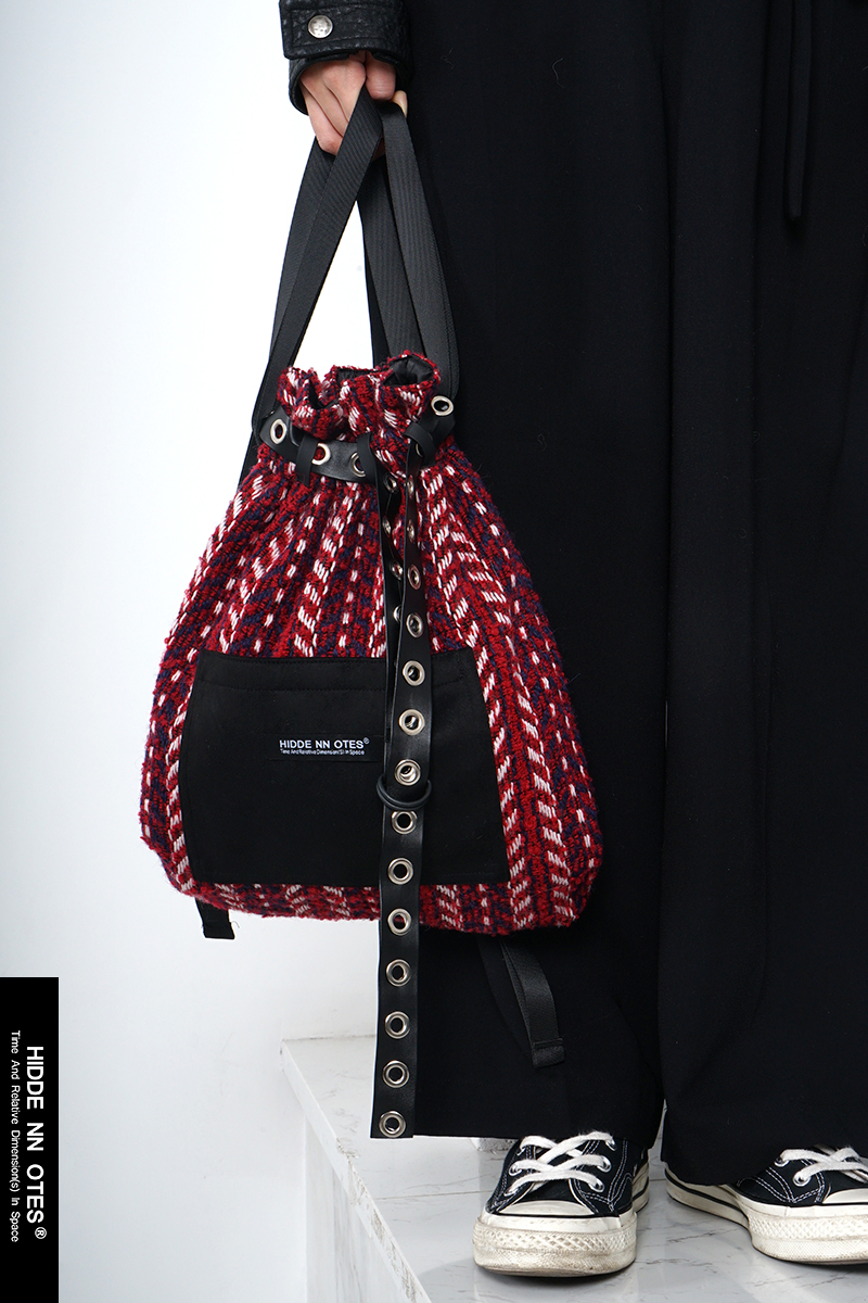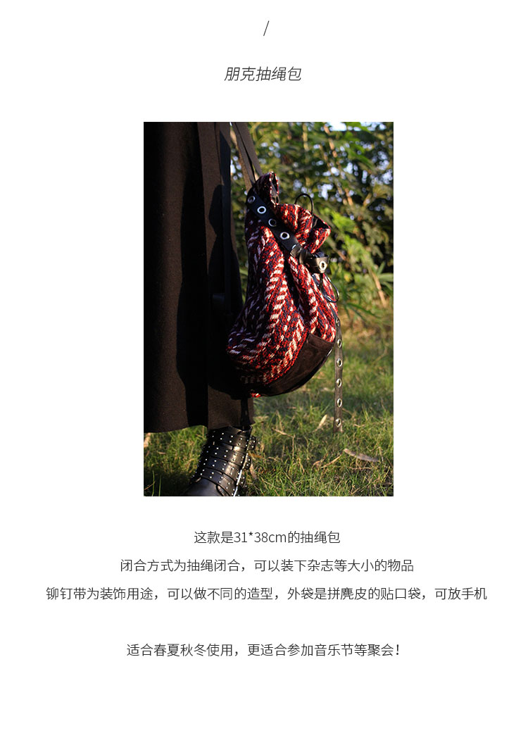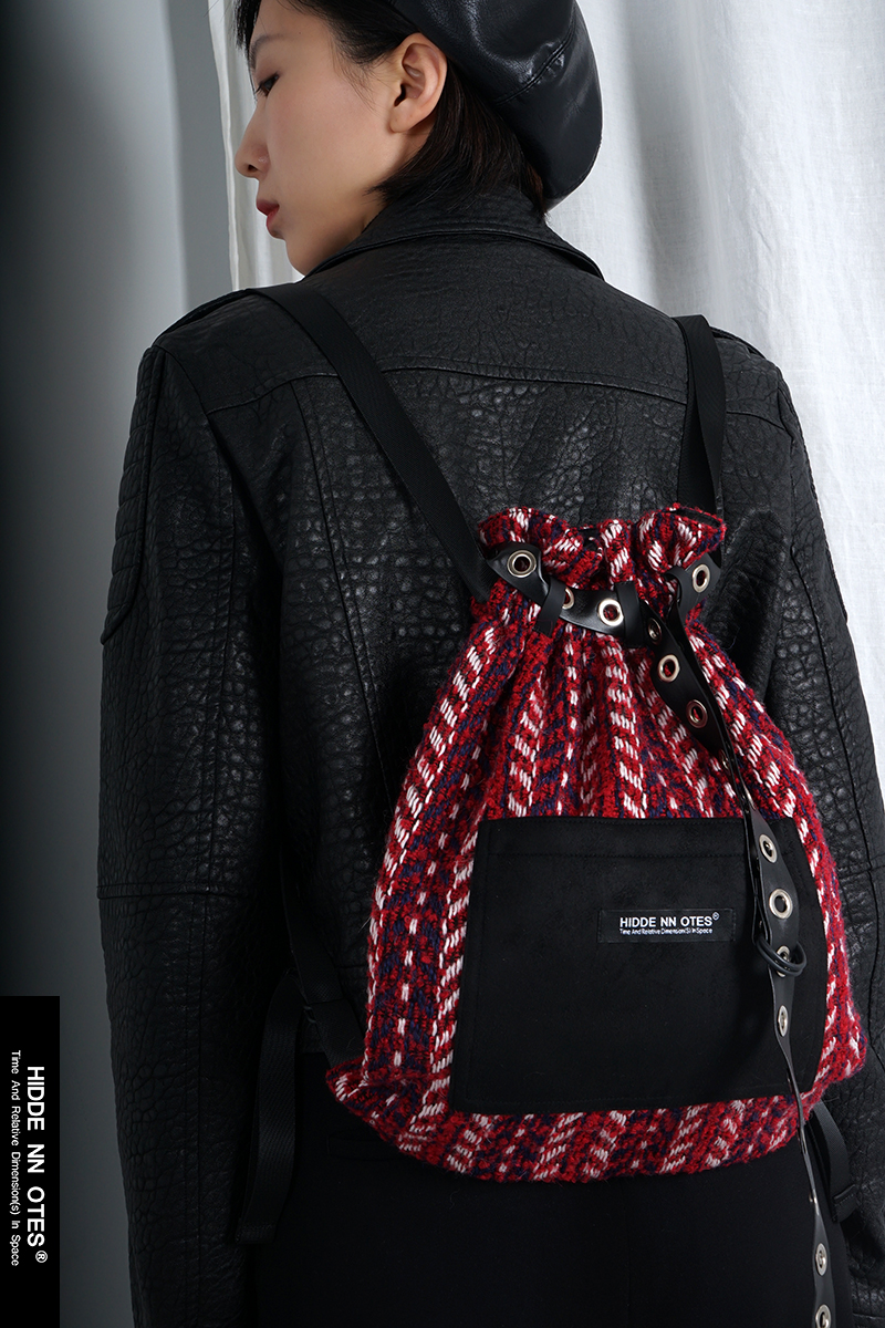 〖HIDDE NN OTES〗原创抽绳包 音乐节朋克街头潮酷呢子双肩包女
