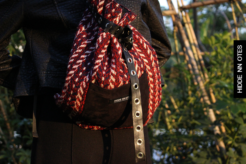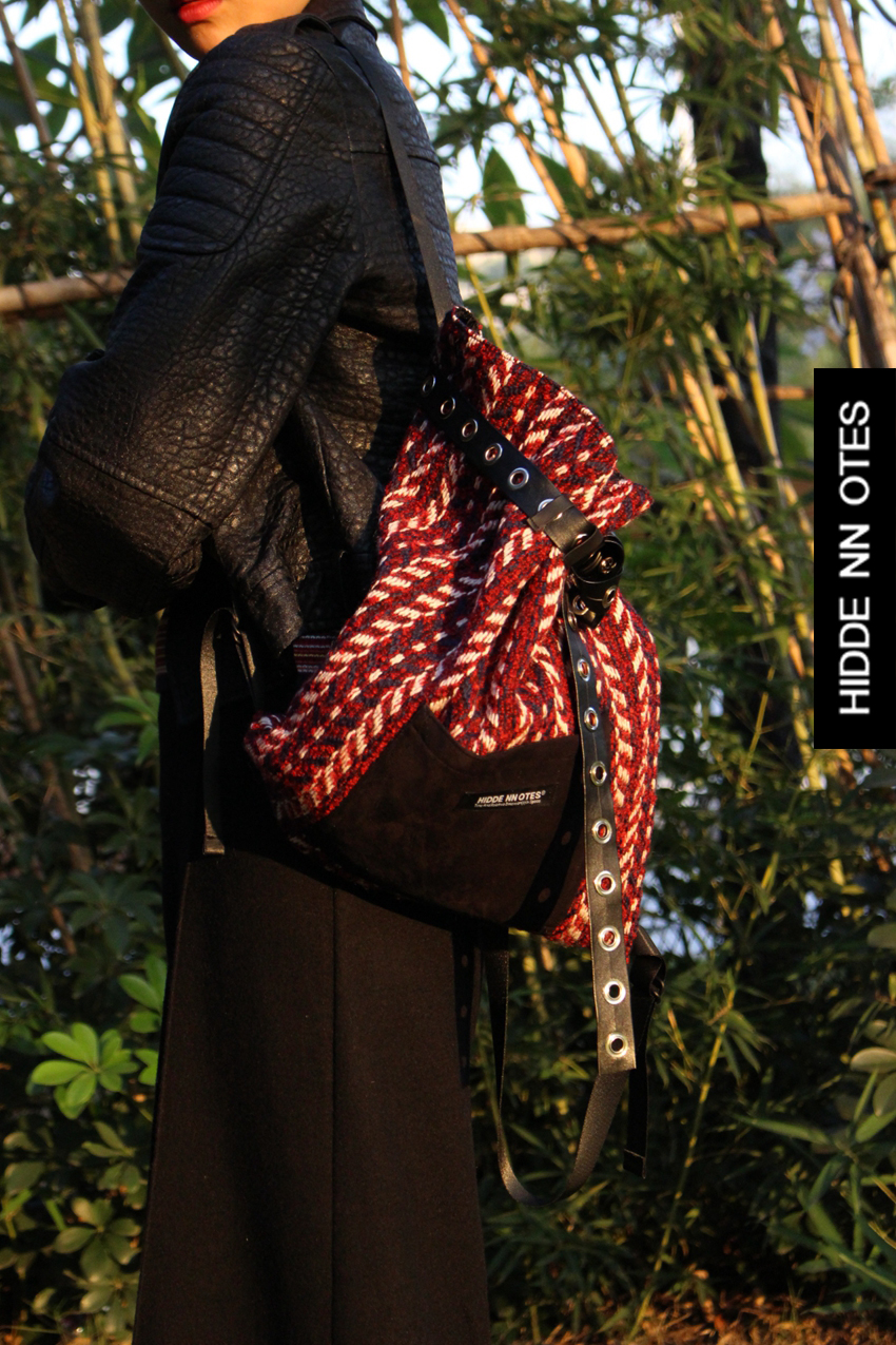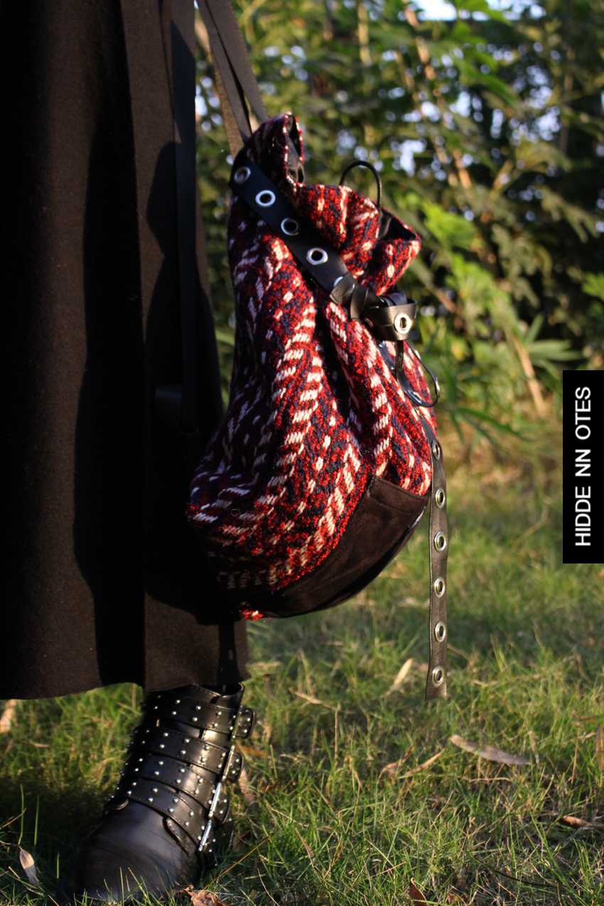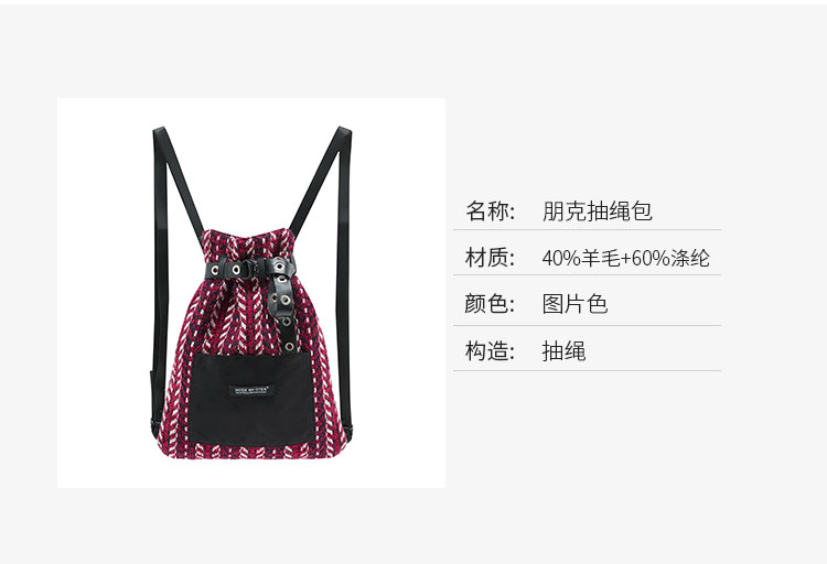 〖HIDDE NN OTES〗原创抽绳包 音乐节朋克街头潮酷呢子双肩包女