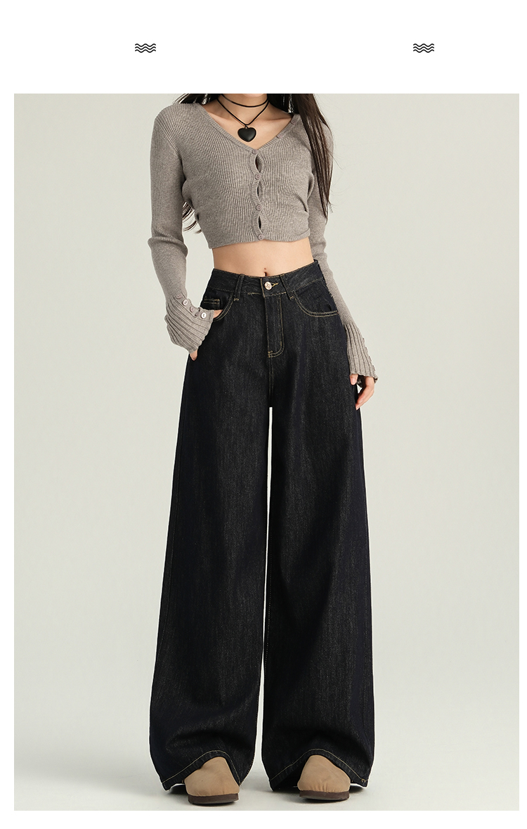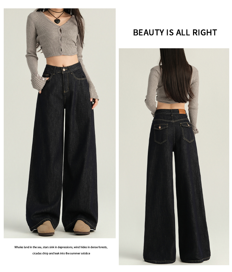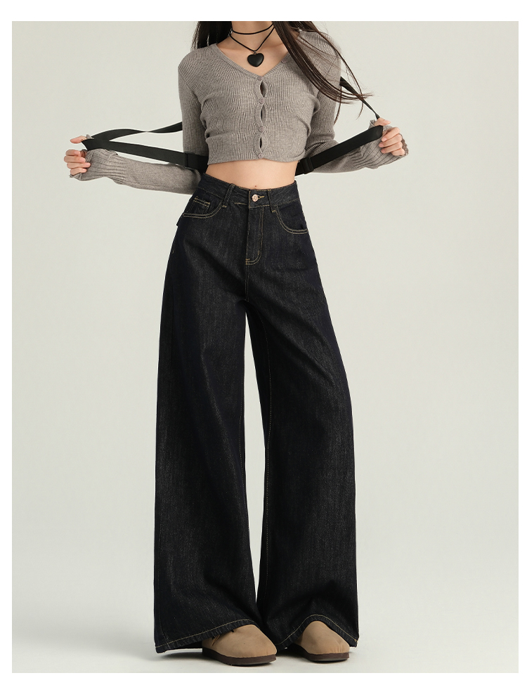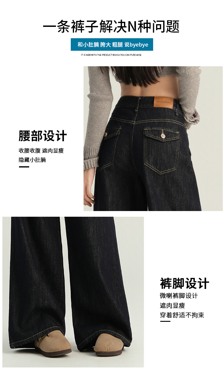 罗蒙春夏女式牛仔裤宽松显瘦舒适休百搭时尚潮流阔腿裤女棉质长裤