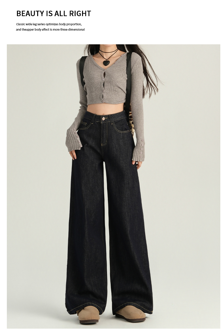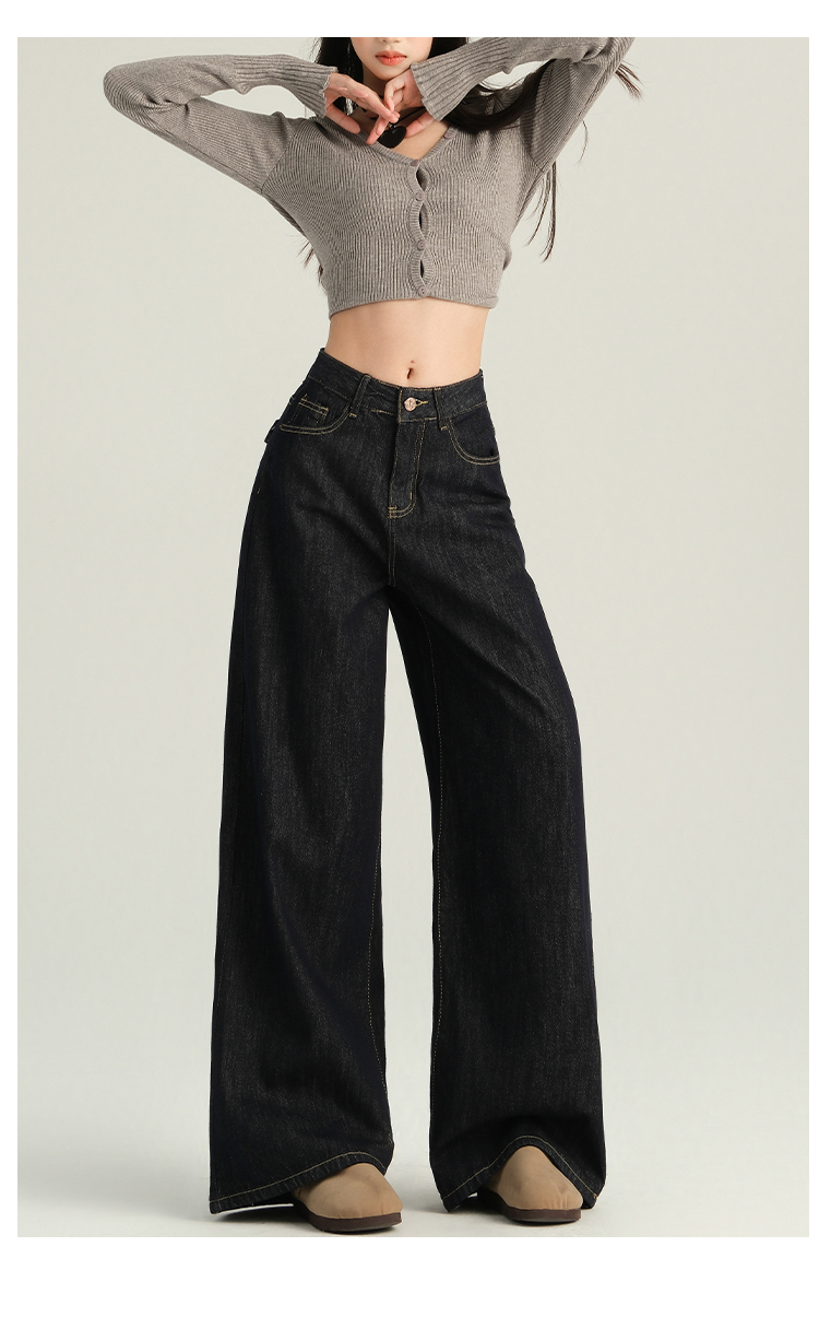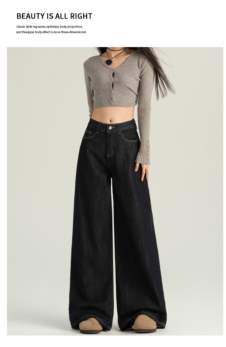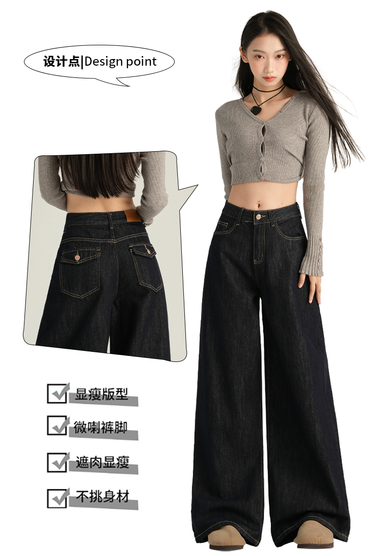 罗蒙春夏女式牛仔裤宽松显瘦舒适休百搭时尚潮流阔腿裤女棉质长裤