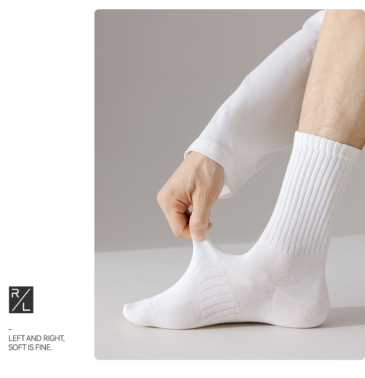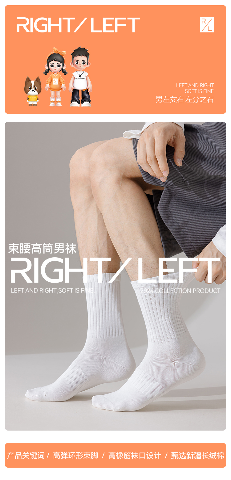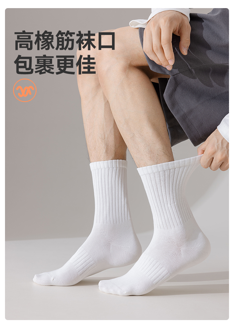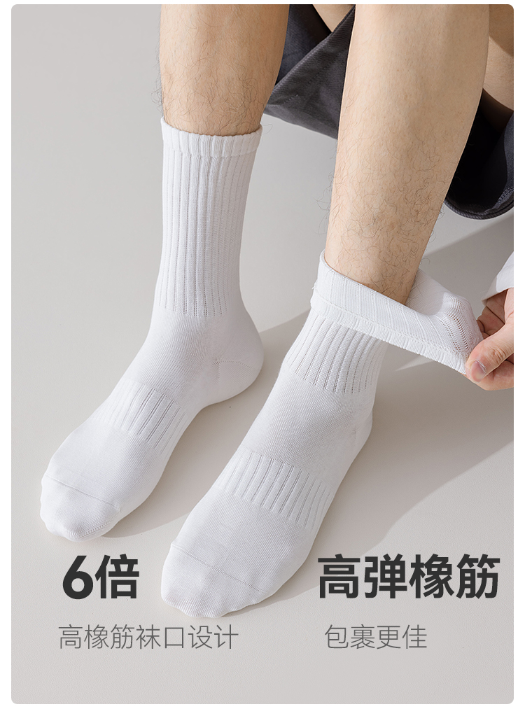 左分之右男士袜子纯棉春夏季白色中高筒袜10A抗菌防臭男生运动袜