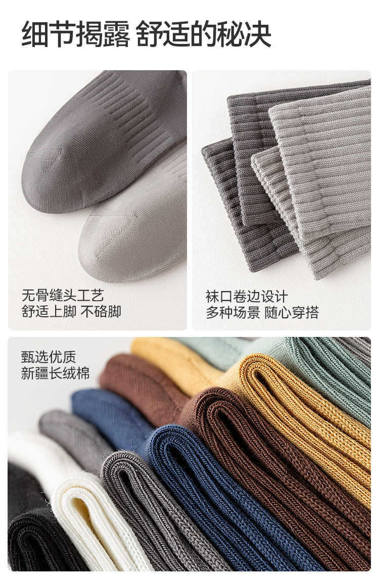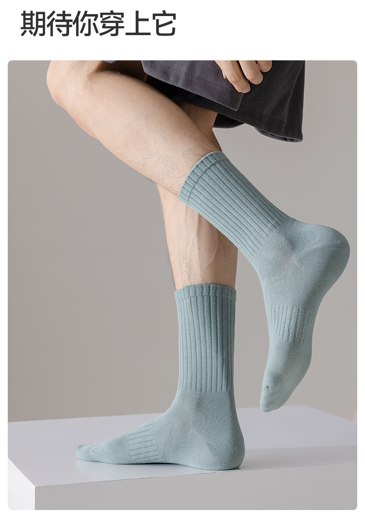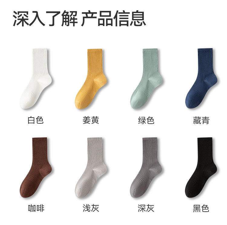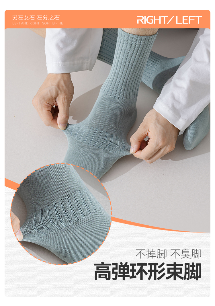 左分之右男士袜子纯棉春夏季白色中高筒袜10A抗菌防臭男生运动袜