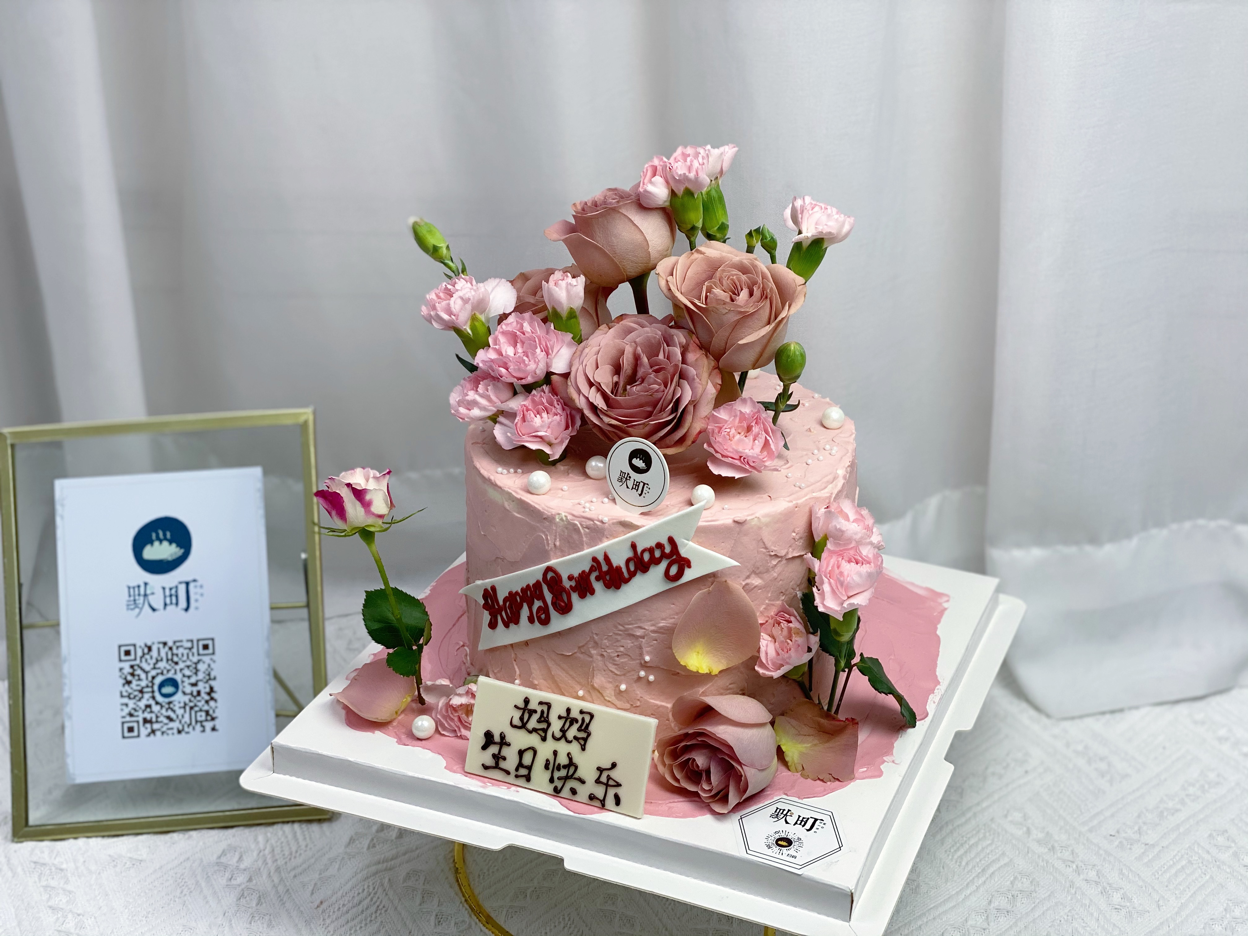 康乃馨+豆沙粉玫瑰蛋糕