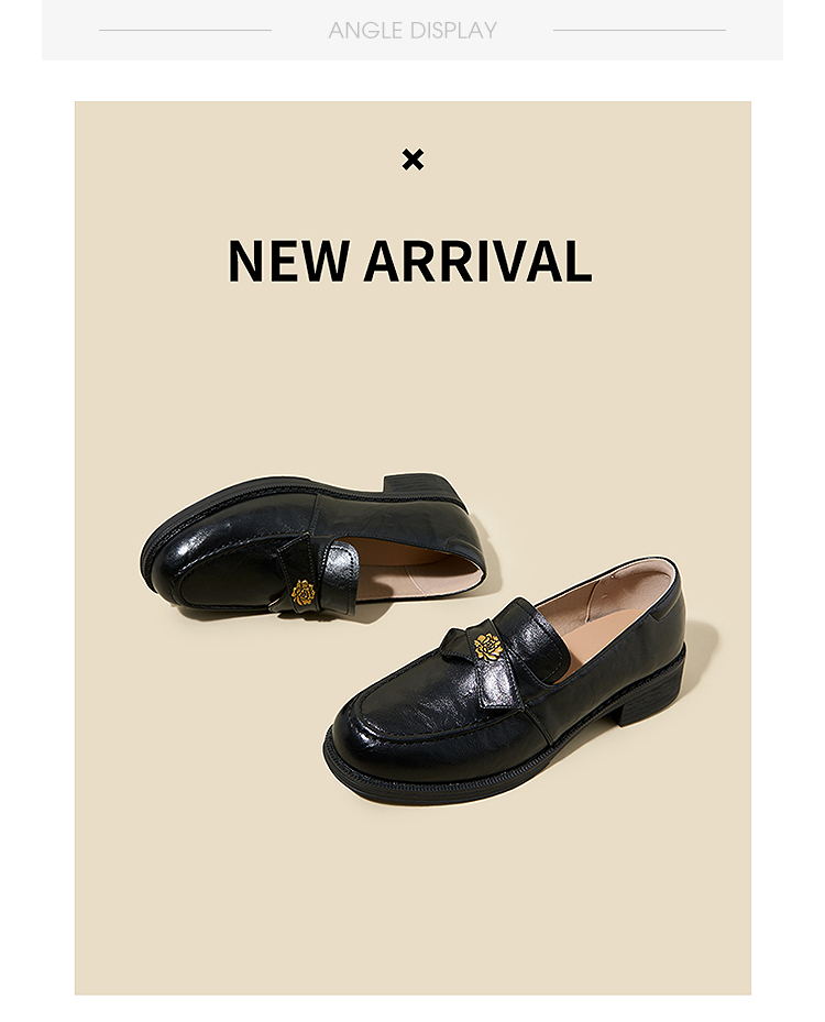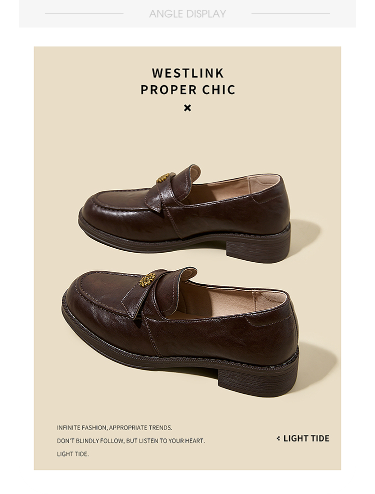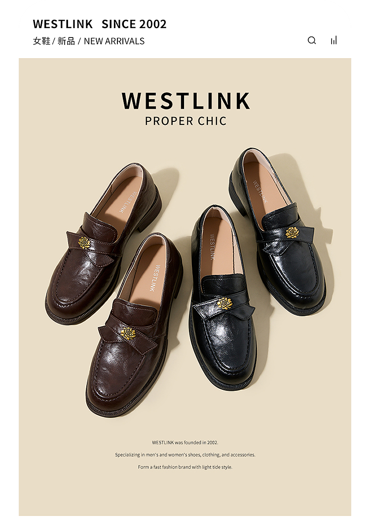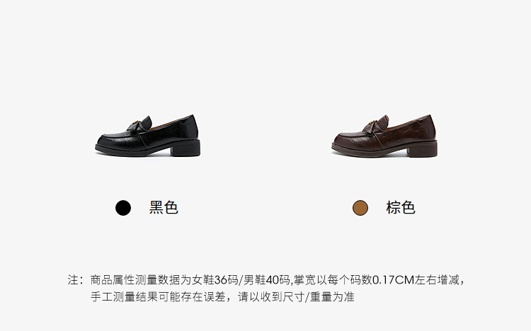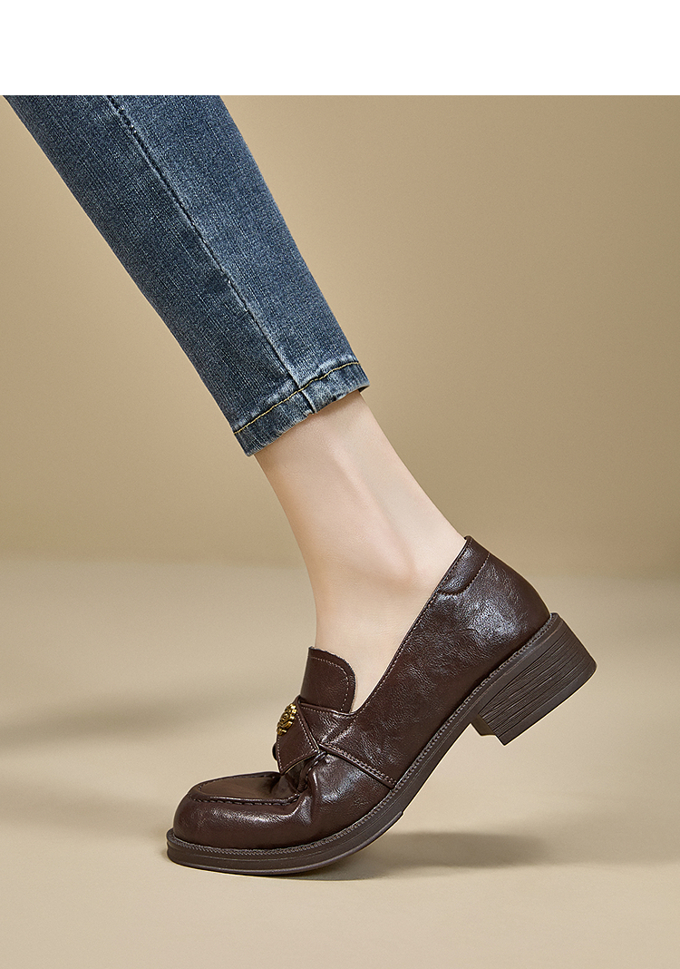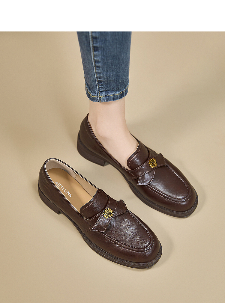 西遇复古乐福鞋女新款秋季法式老钱风粗跟单鞋子山茶花小皮鞋V0057228
