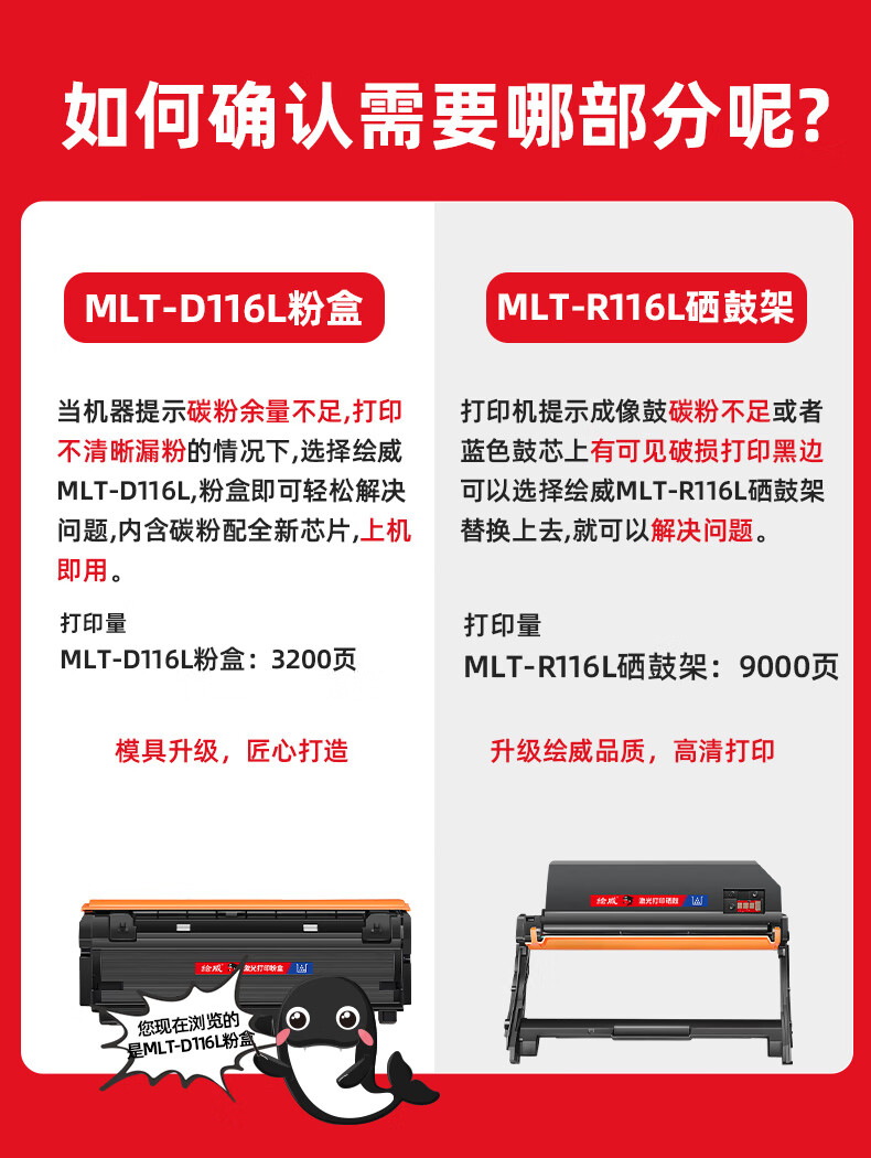绘威MLT-D116L粉盒 适用三星SL-M2676N M2876HN M2626D硒鼓M2826ND M2625D M2825DW M2875打印机粉盒D116S