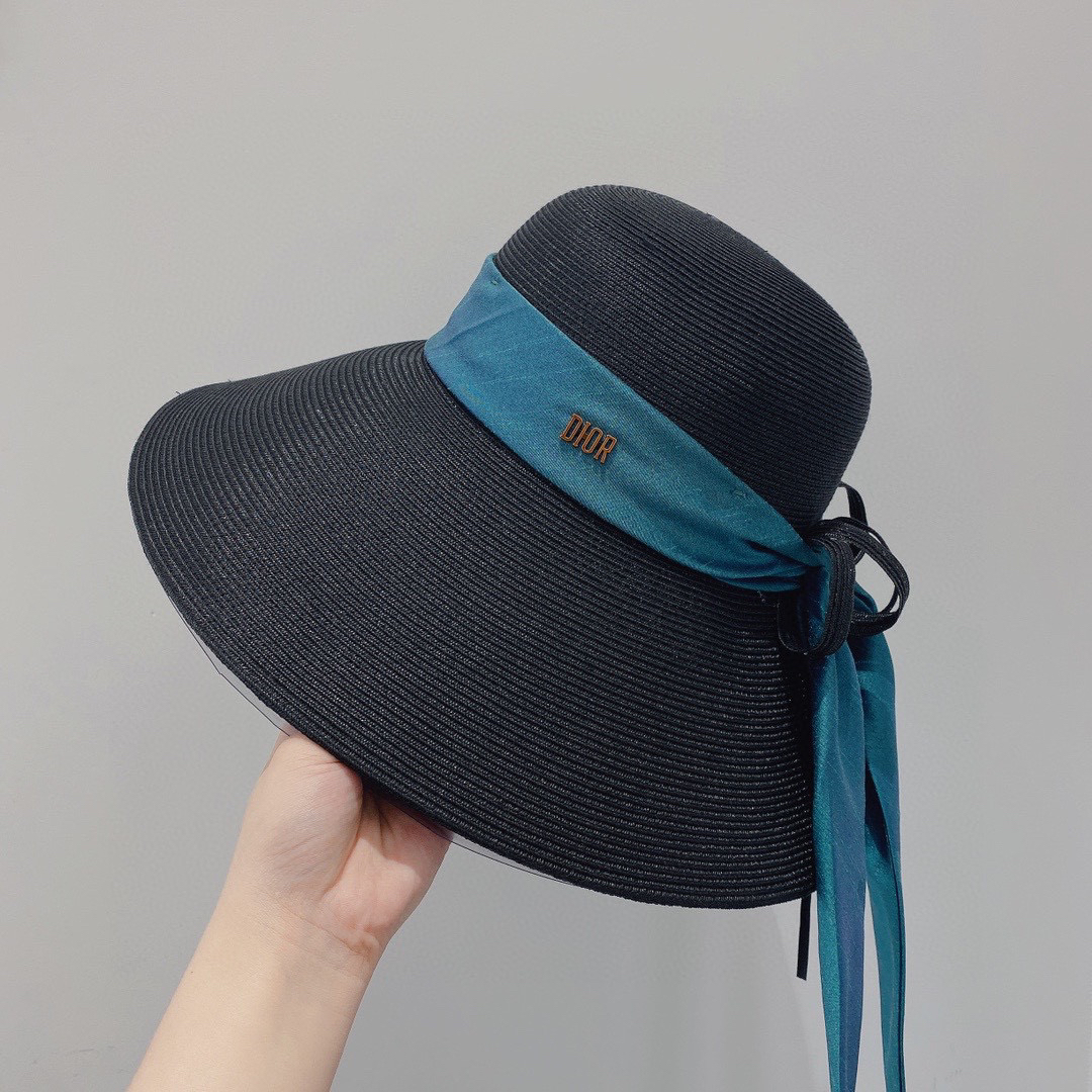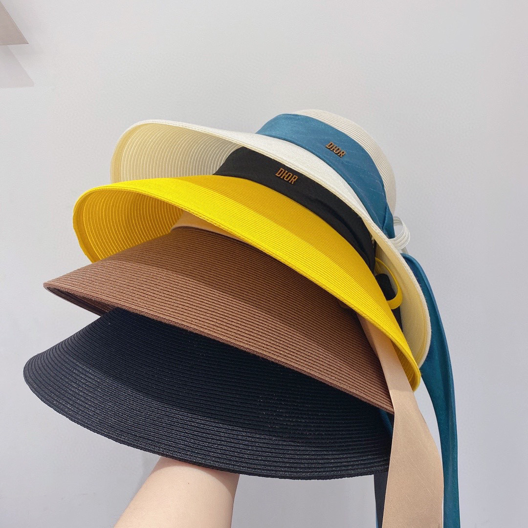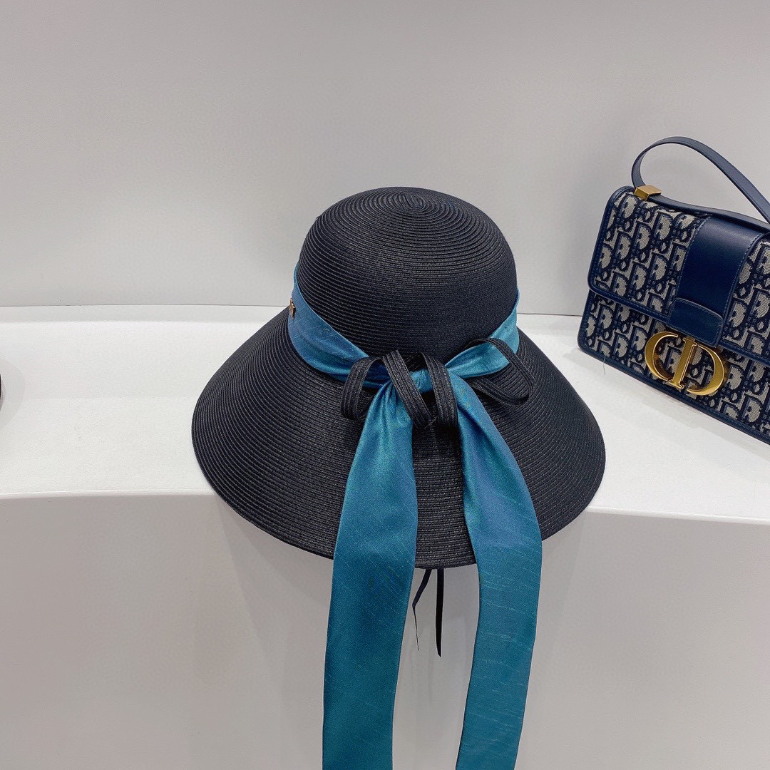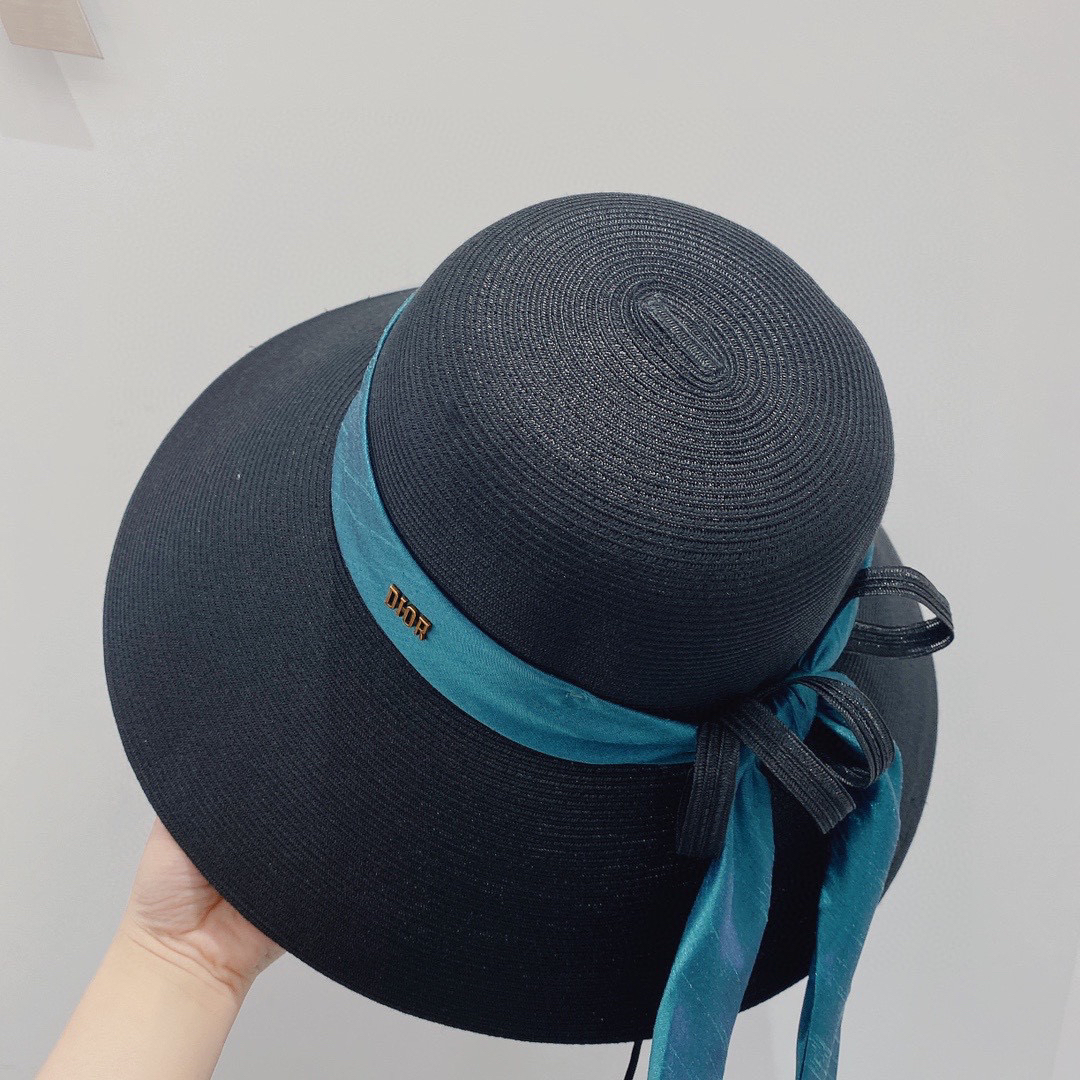 D!or春夏款PP草布遮阳帽太阳帽,台湾PP 草超轻材质,高级麻棉手工蝴蝶结,轻盈透气可折叠,携带方便,雅致大气,出游必备单品