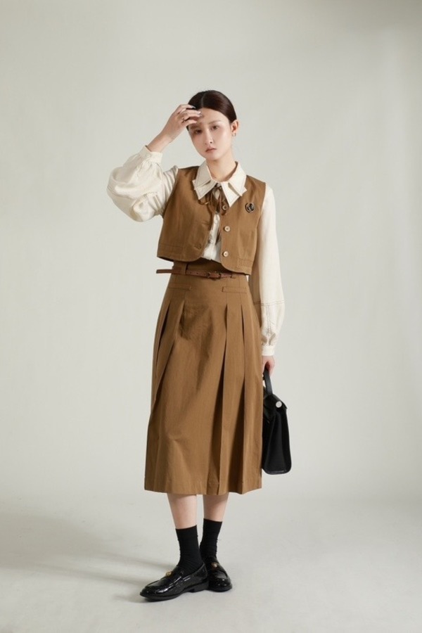 ANSUABEL 气质短款外套V领纱裙套装 14128