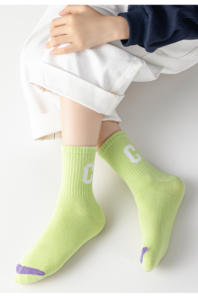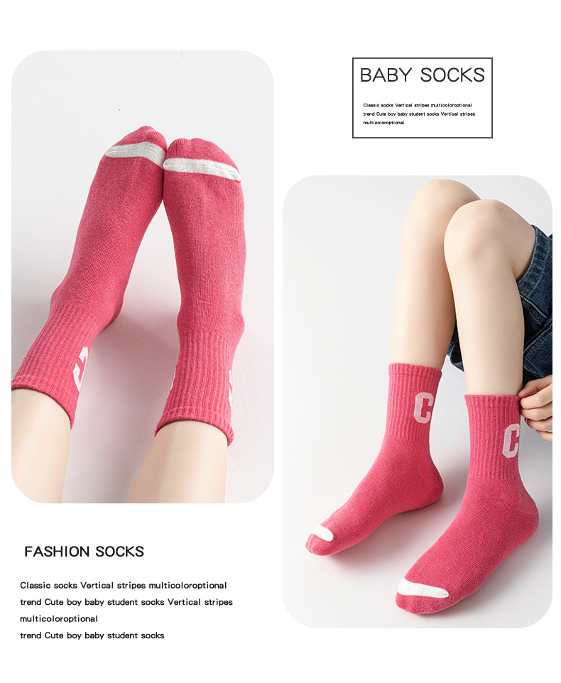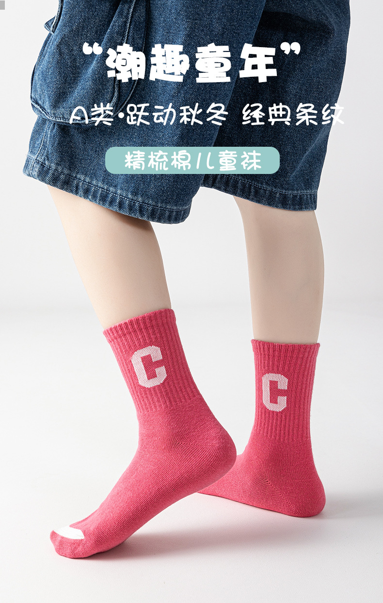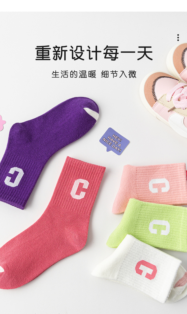 【五双装】儿童春秋款棉袜,可爱字母印花,高弹力加宽松口设计,让孩子的小脚丫更自由呼吸。让我们给您的孩子带来温暖和舒适的穿着感受!
