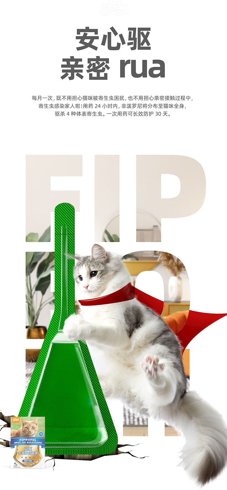新宠之康 非泼罗尼滴剂 猫咪体外驱虫 芬苯达唑片拜宠清猫咪体内驱虫药