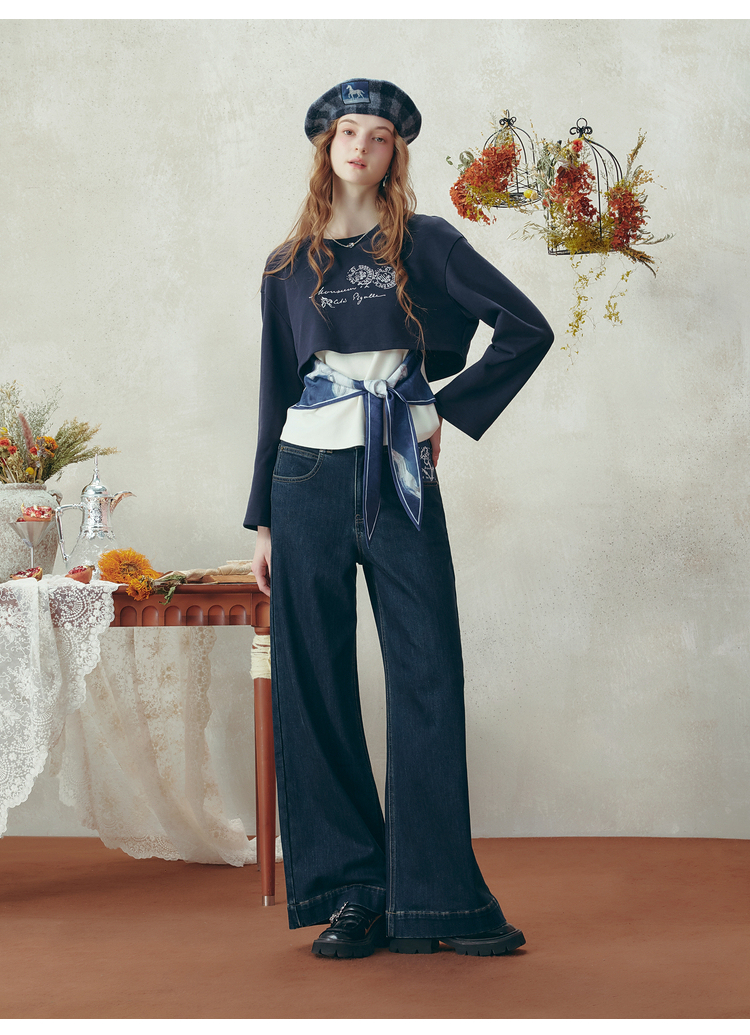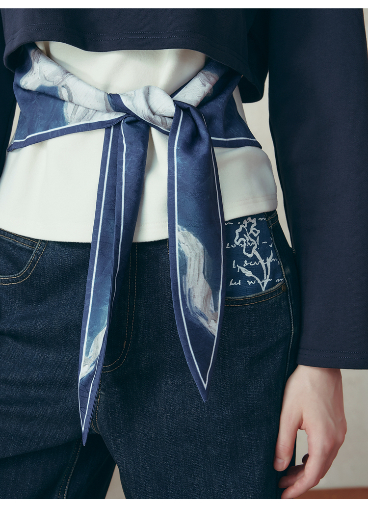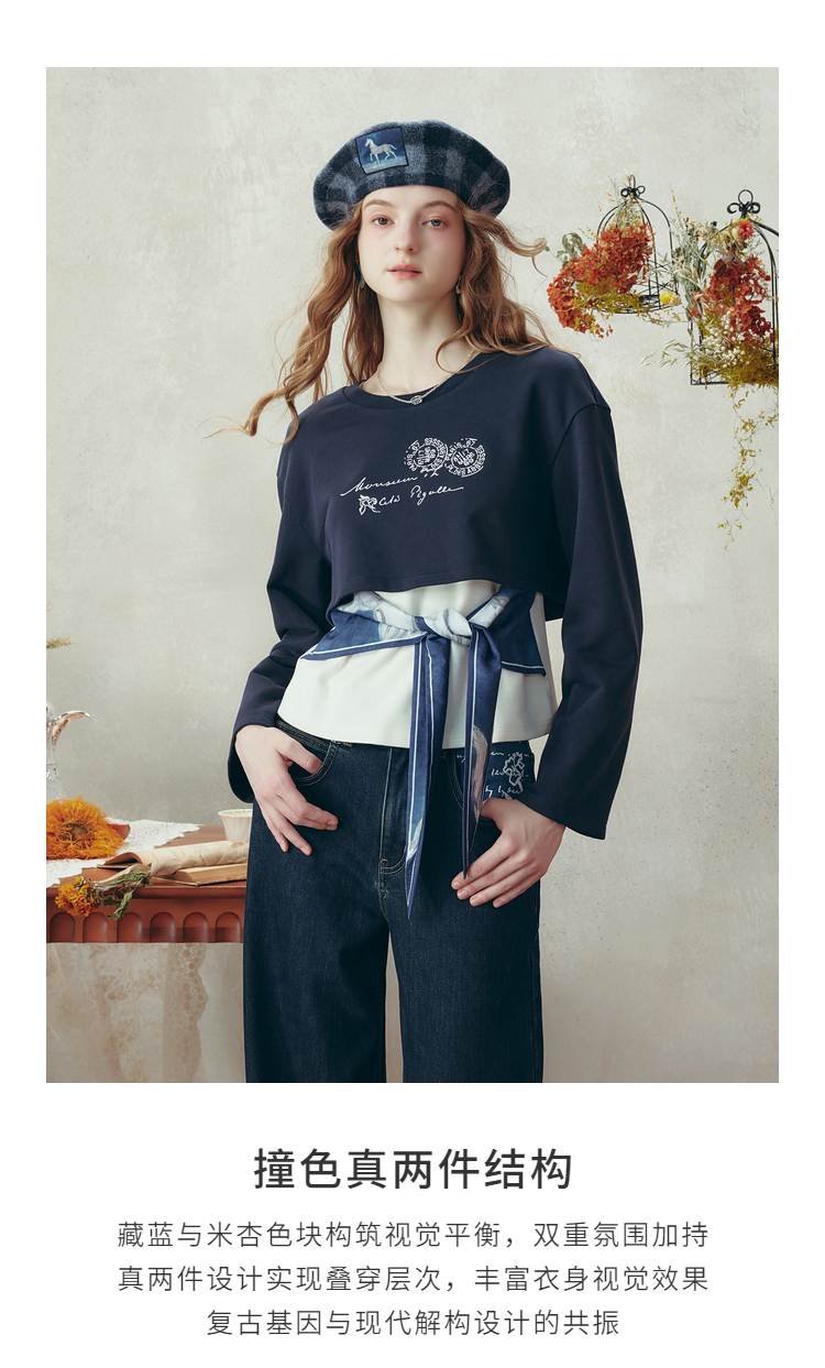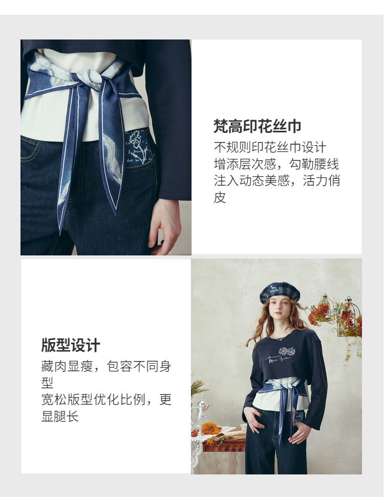 两三事梵高文艺 白昼海岸 2025冬季新款印花绑带两件套卫衣女