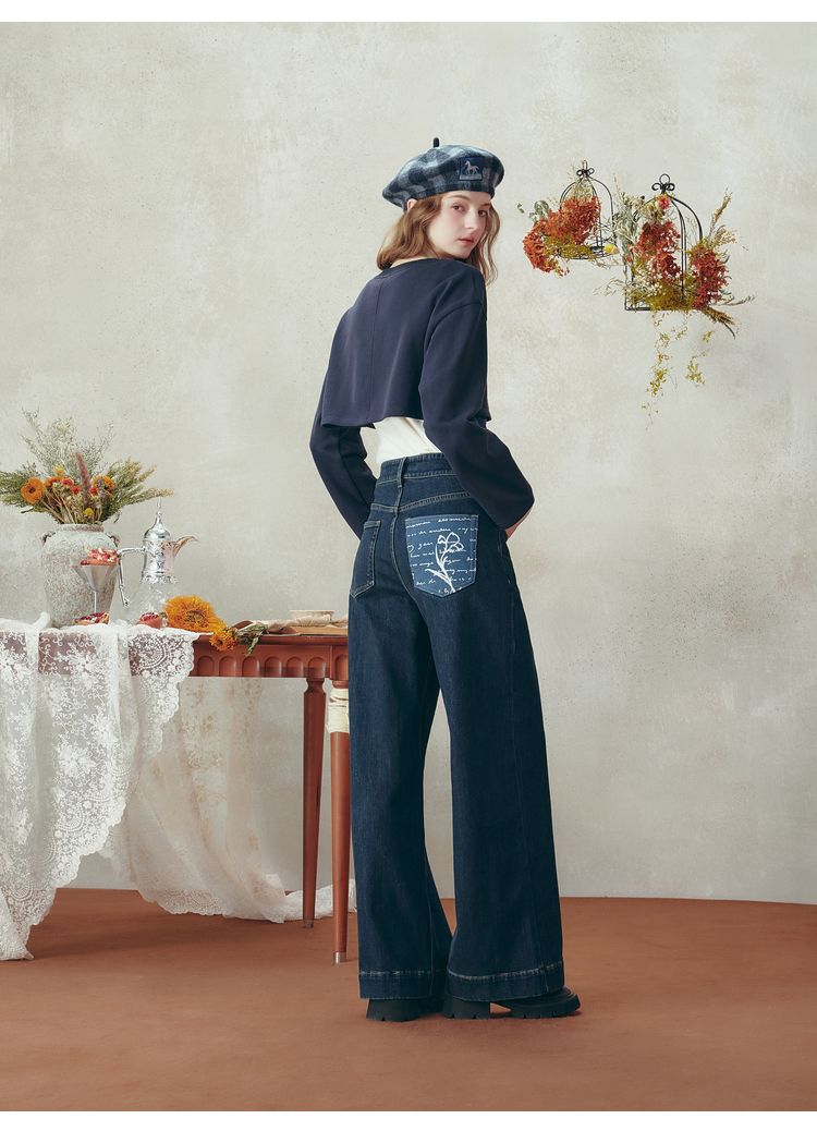 两三事梵高系列 青衫 秋季新款复古蕾丝拼接打底高领针织衫女
