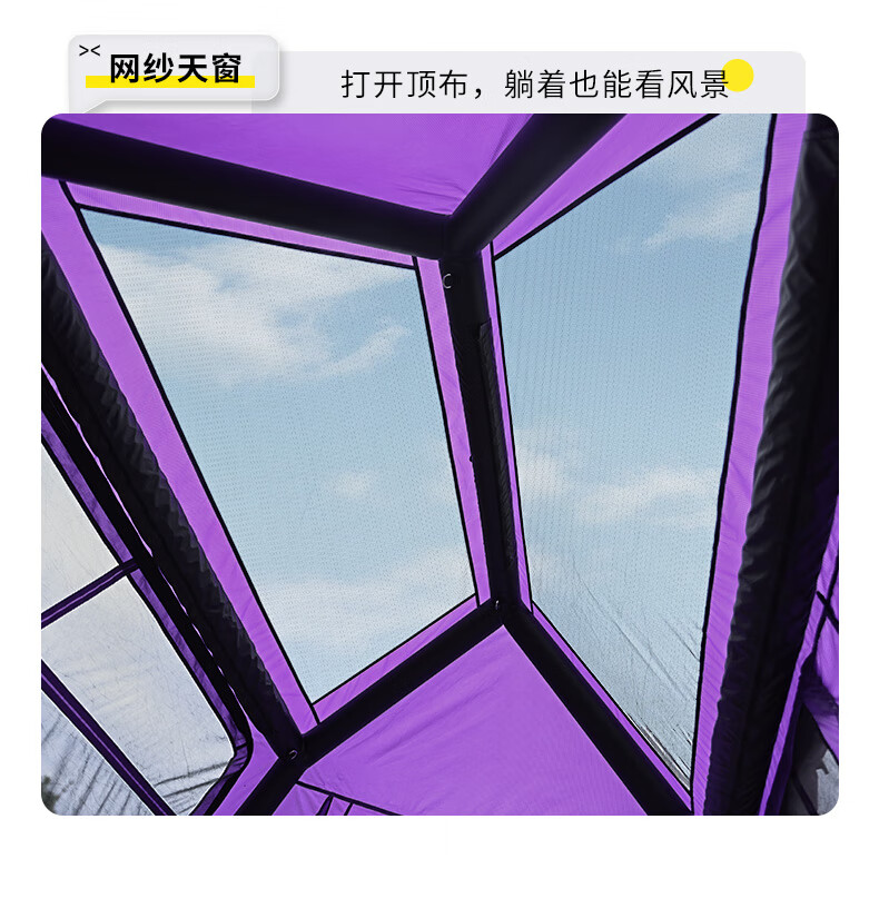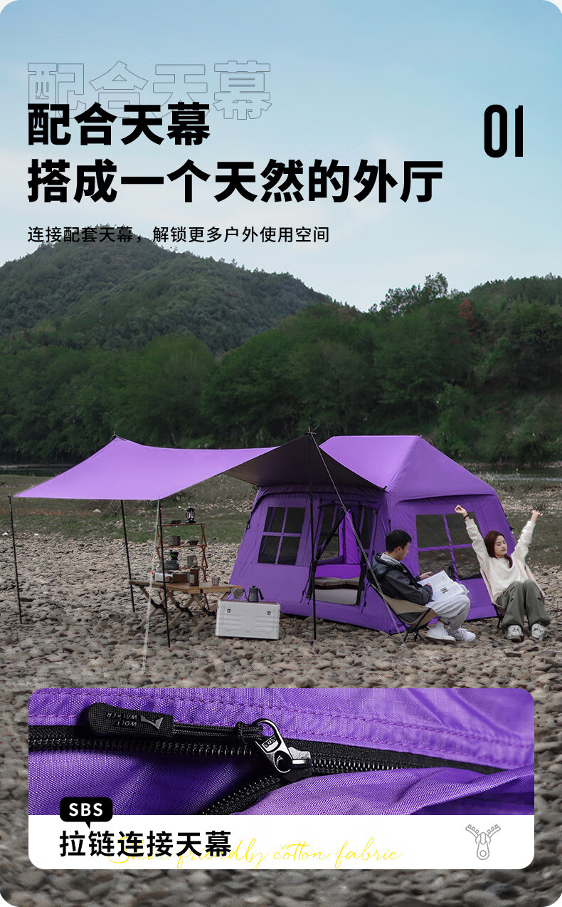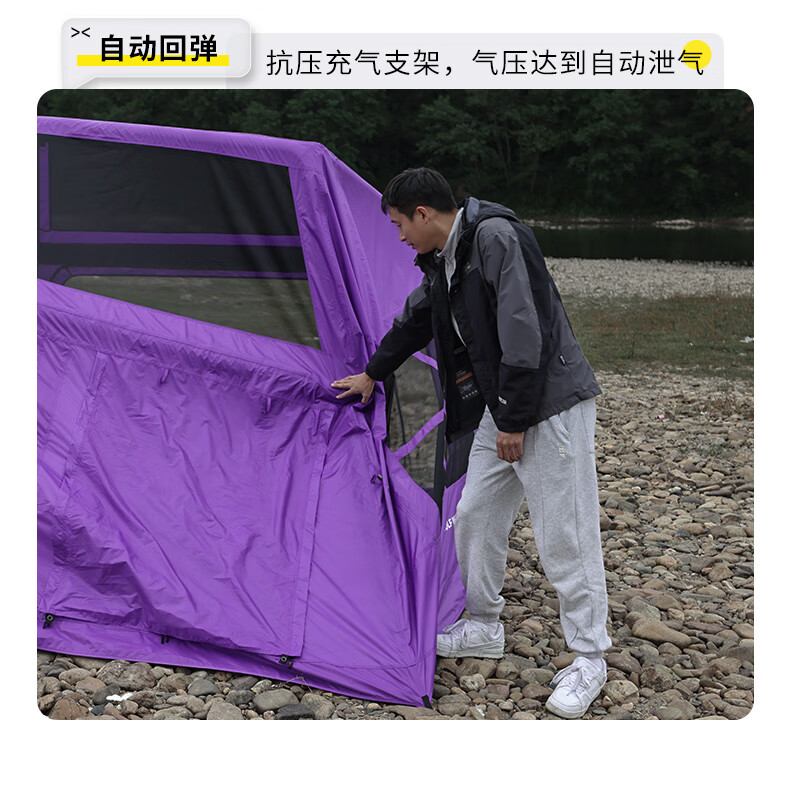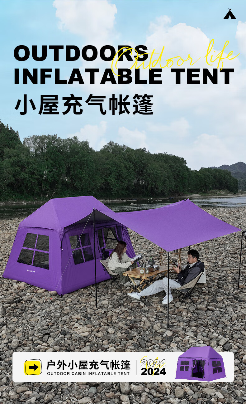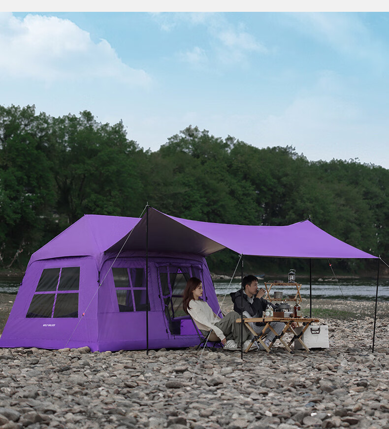 狼行者云阁充气帐篷户外野营过夜防暴雨加厚露营装备野外大天幕 紫色