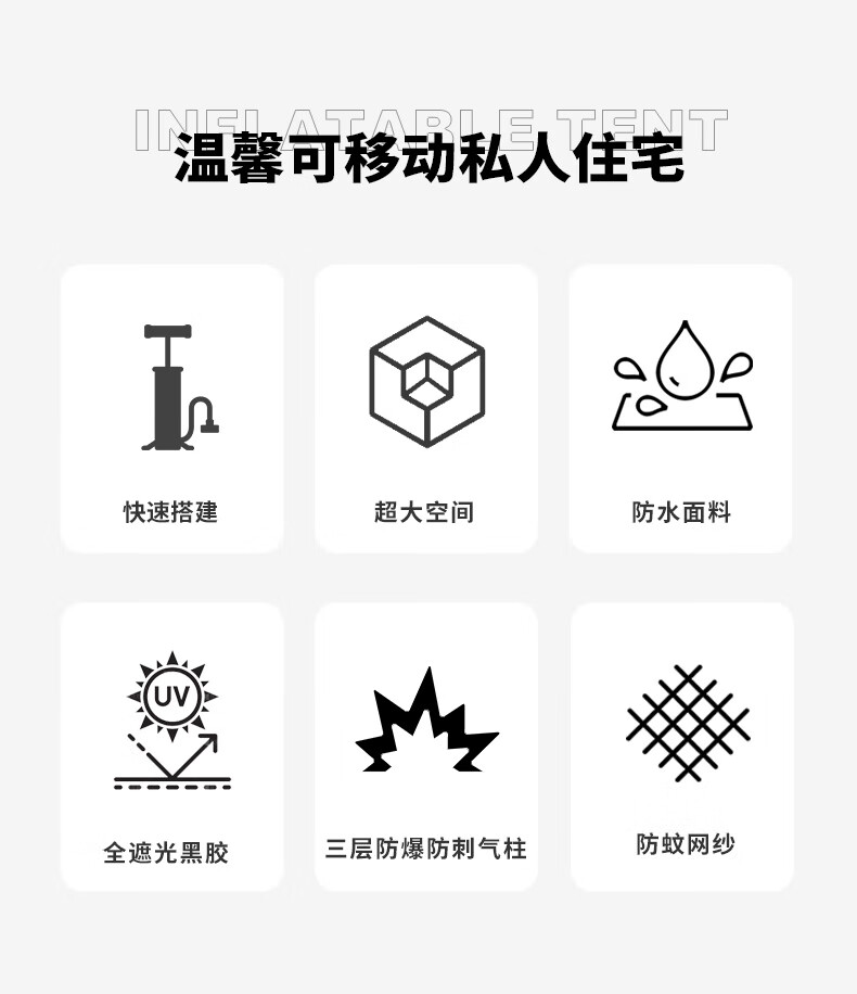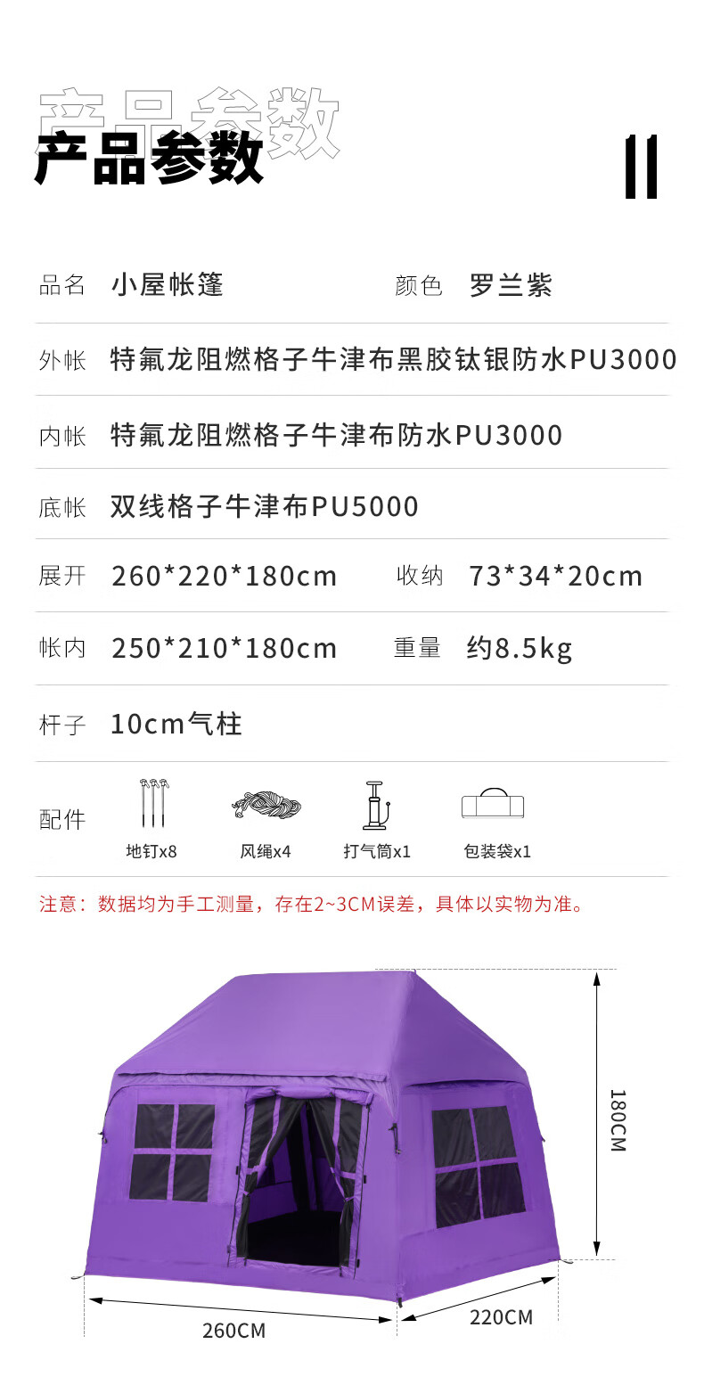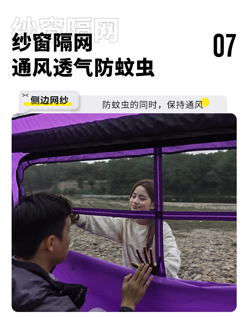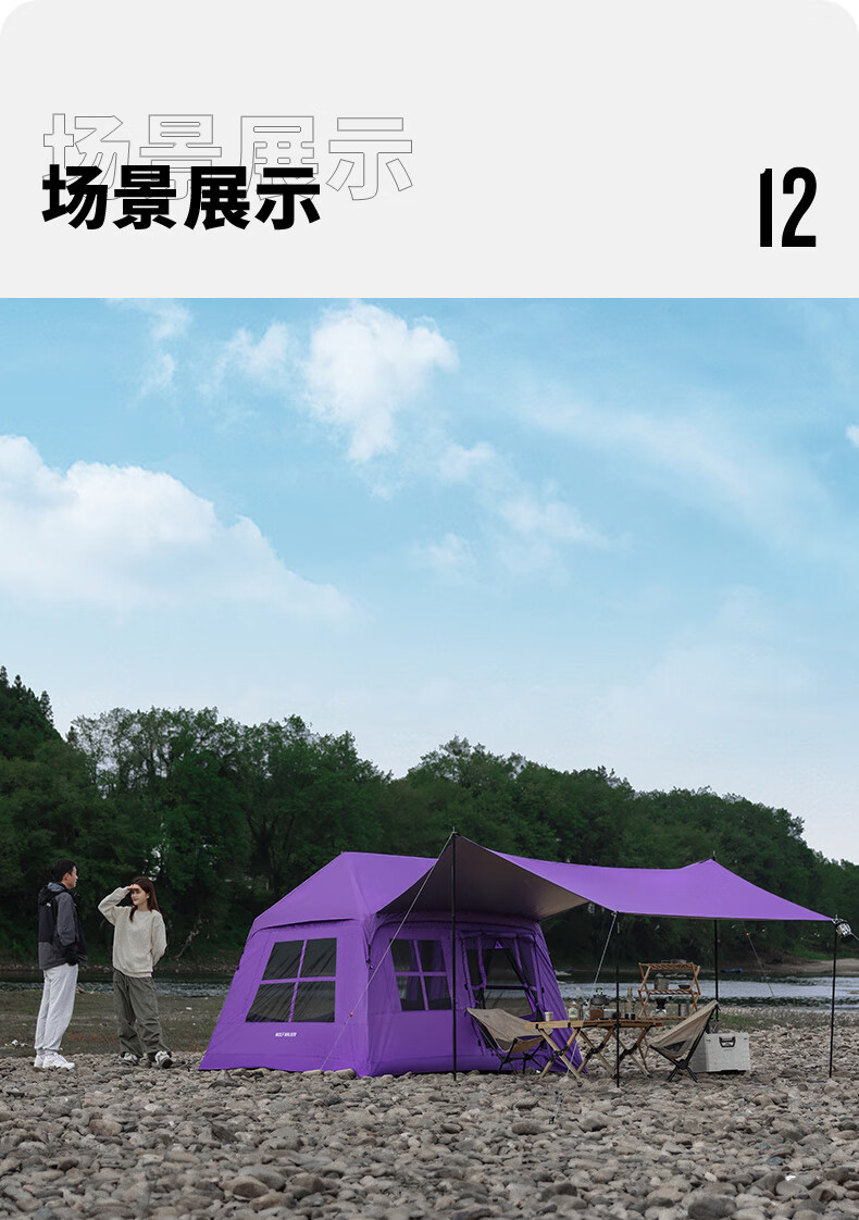 狼行者云阁充气帐篷户外野营过夜防暴雨加厚露营装备野外大天幕 紫色