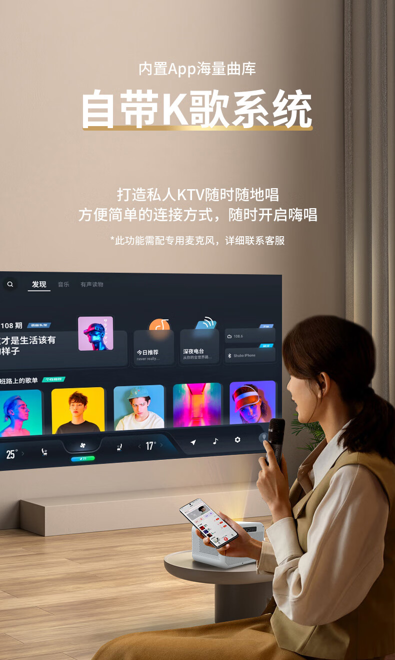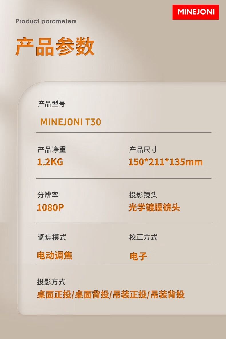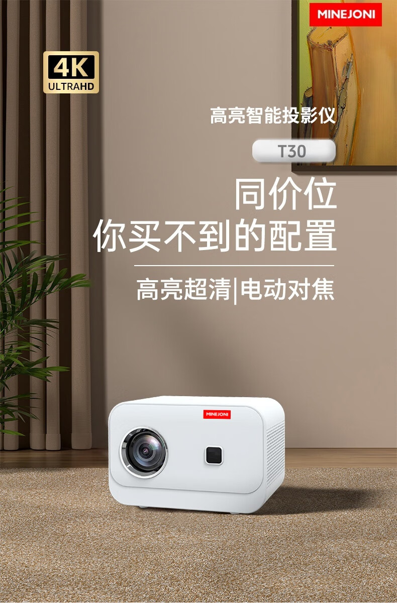 MINEJONI2025新款白天高亮T30投影仪家用超高清4K投墙家庭影院卧室客厅小型户外KTV一体100寸投屏投影机