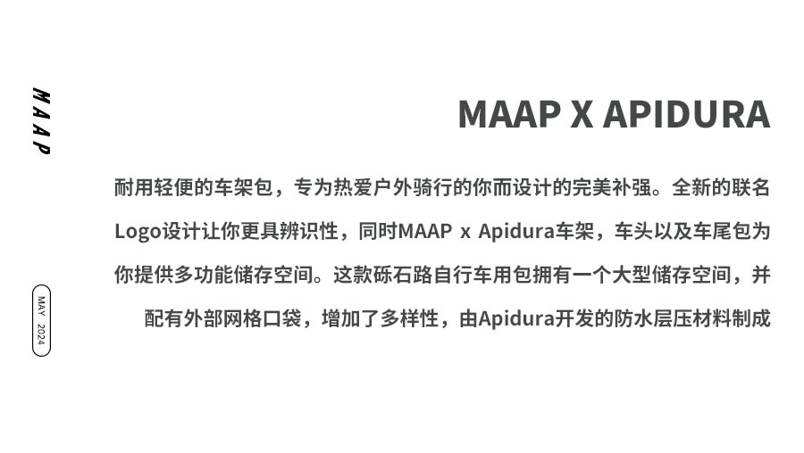 - MAAP作为澳洲功能性骑行服,其出色的时尚设计元素为骑行生活增添色彩。MAAP在为专业车手提升性能表现方面也毫不妥协。