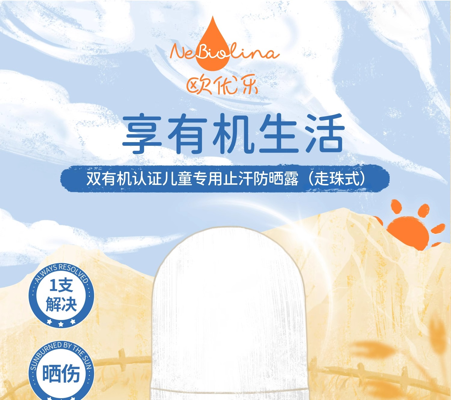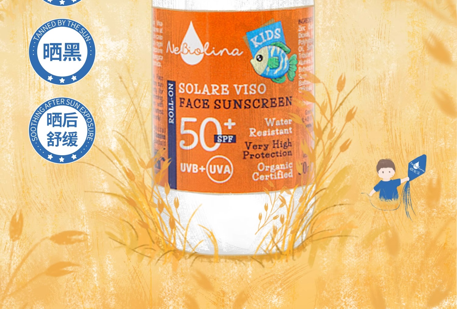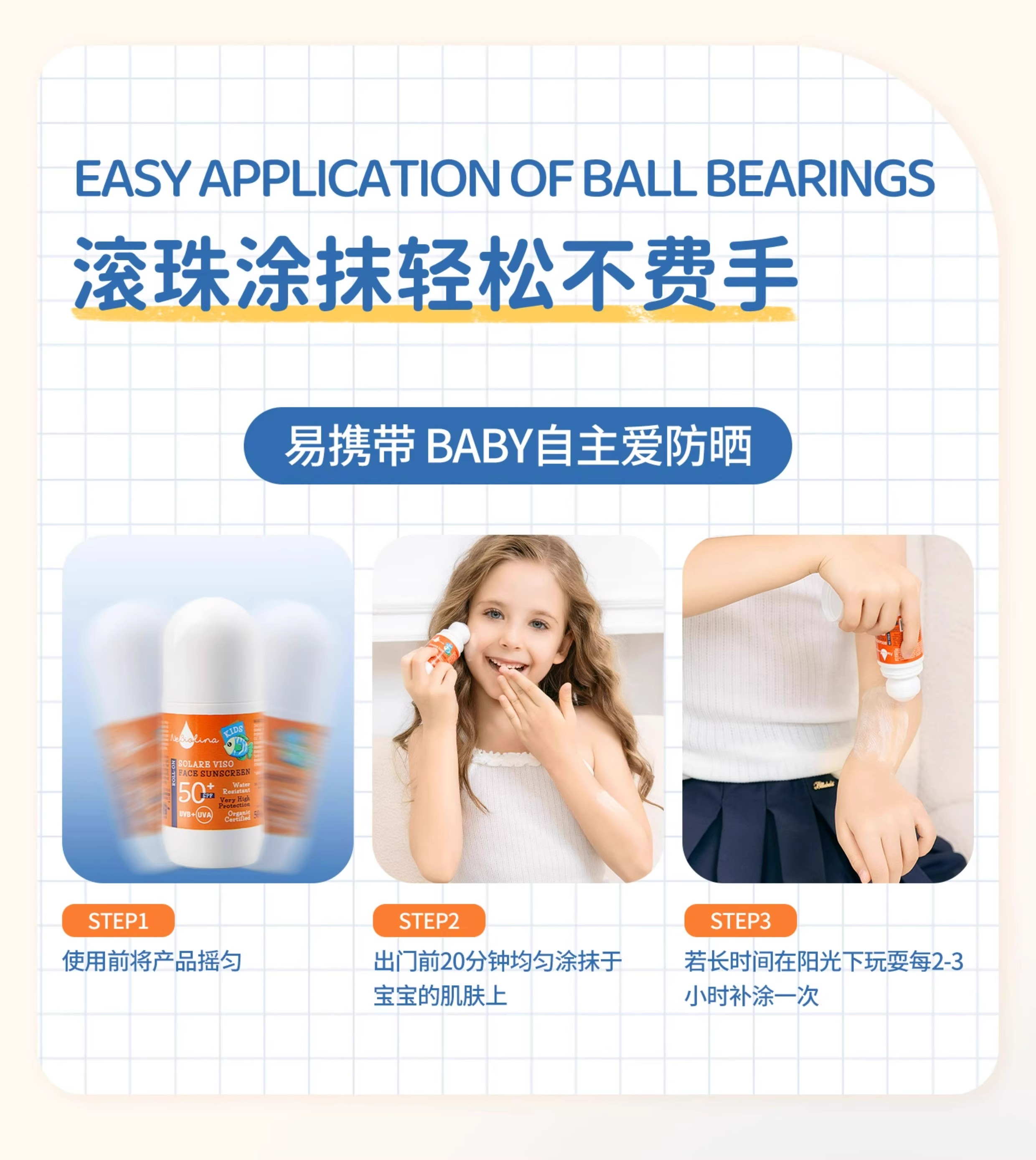 【进口有机植萃 物理防晒】天然儿童防晒防晒滚珠 SPF50+ 50ml 意大利 Nebiolina 欧优乐