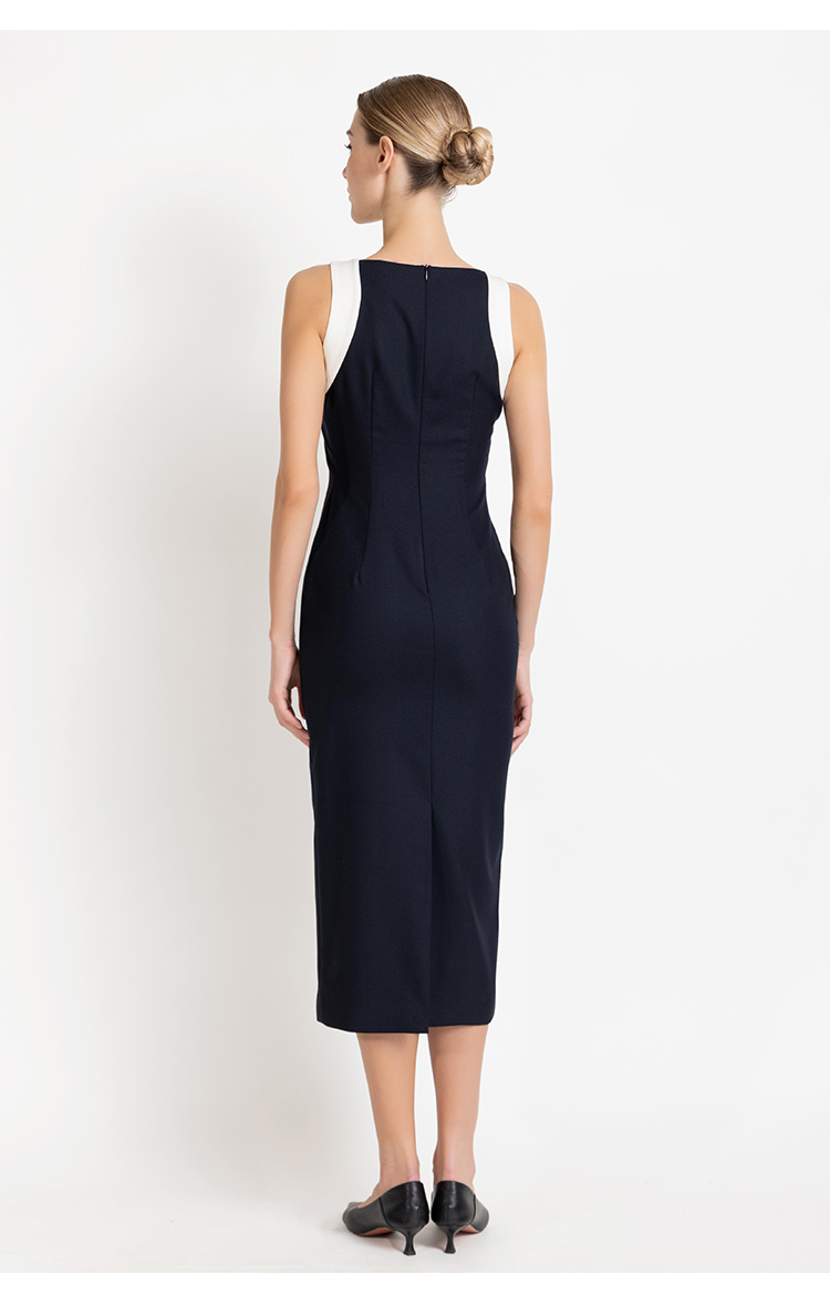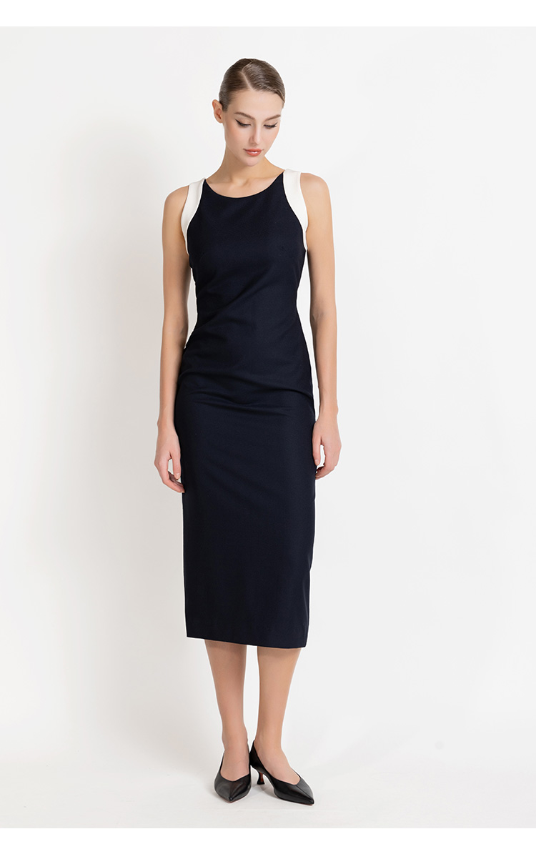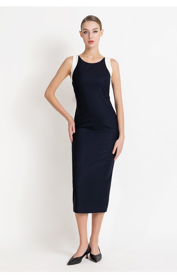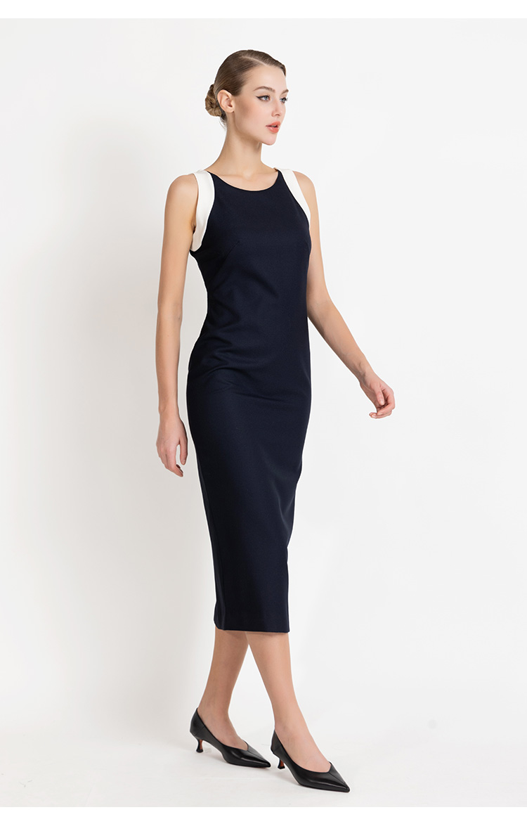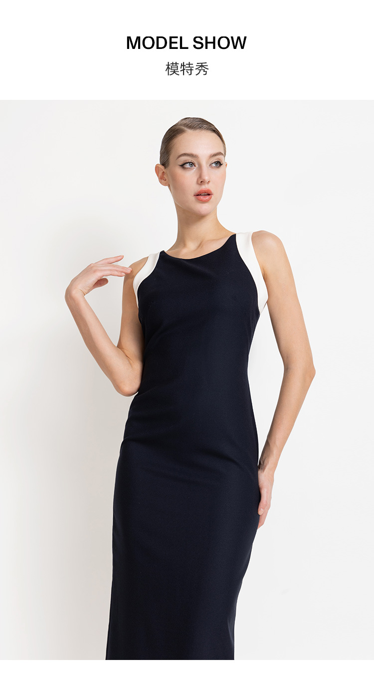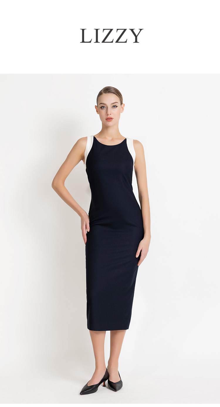 LIZZY 早秋简约优雅气质修身显瘦撞色拼接无袖包裙连衣裙8012