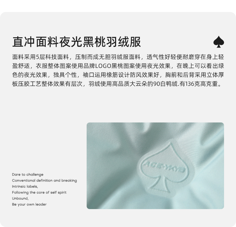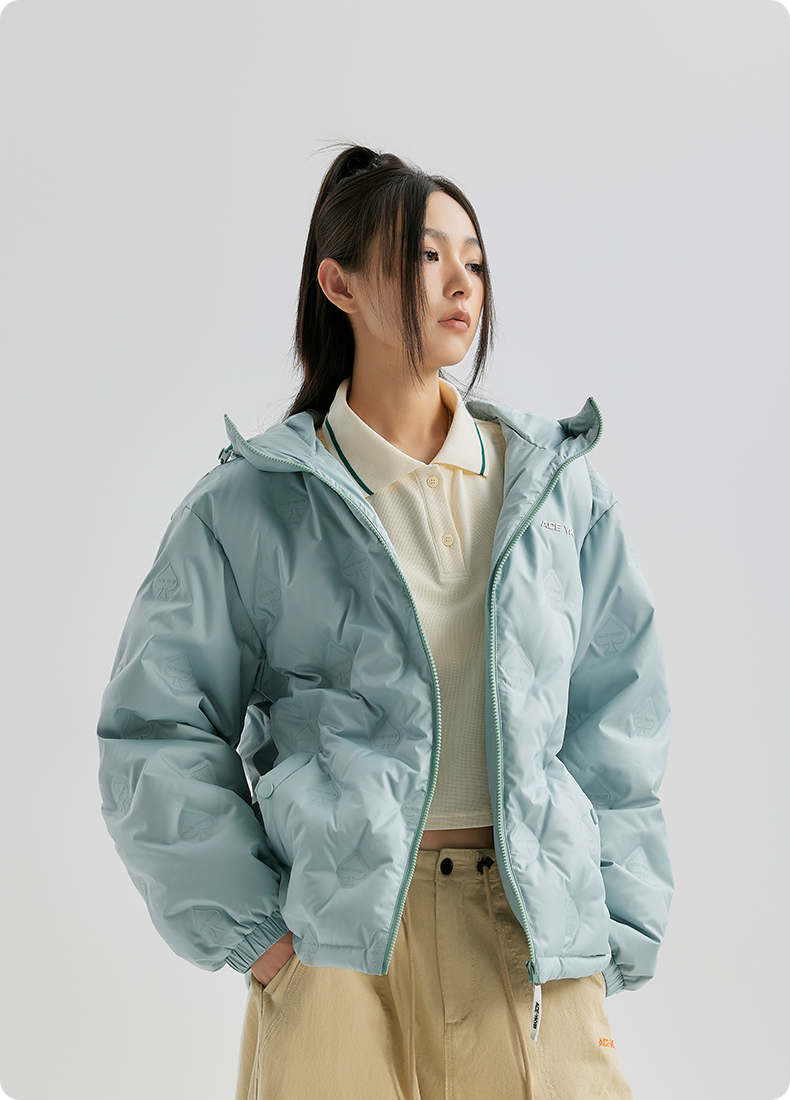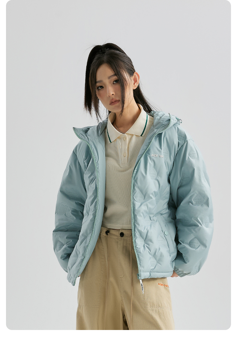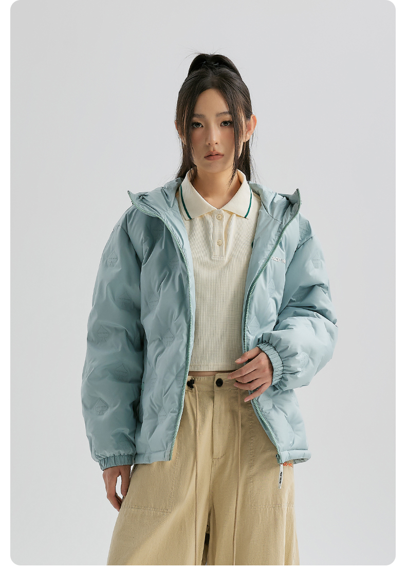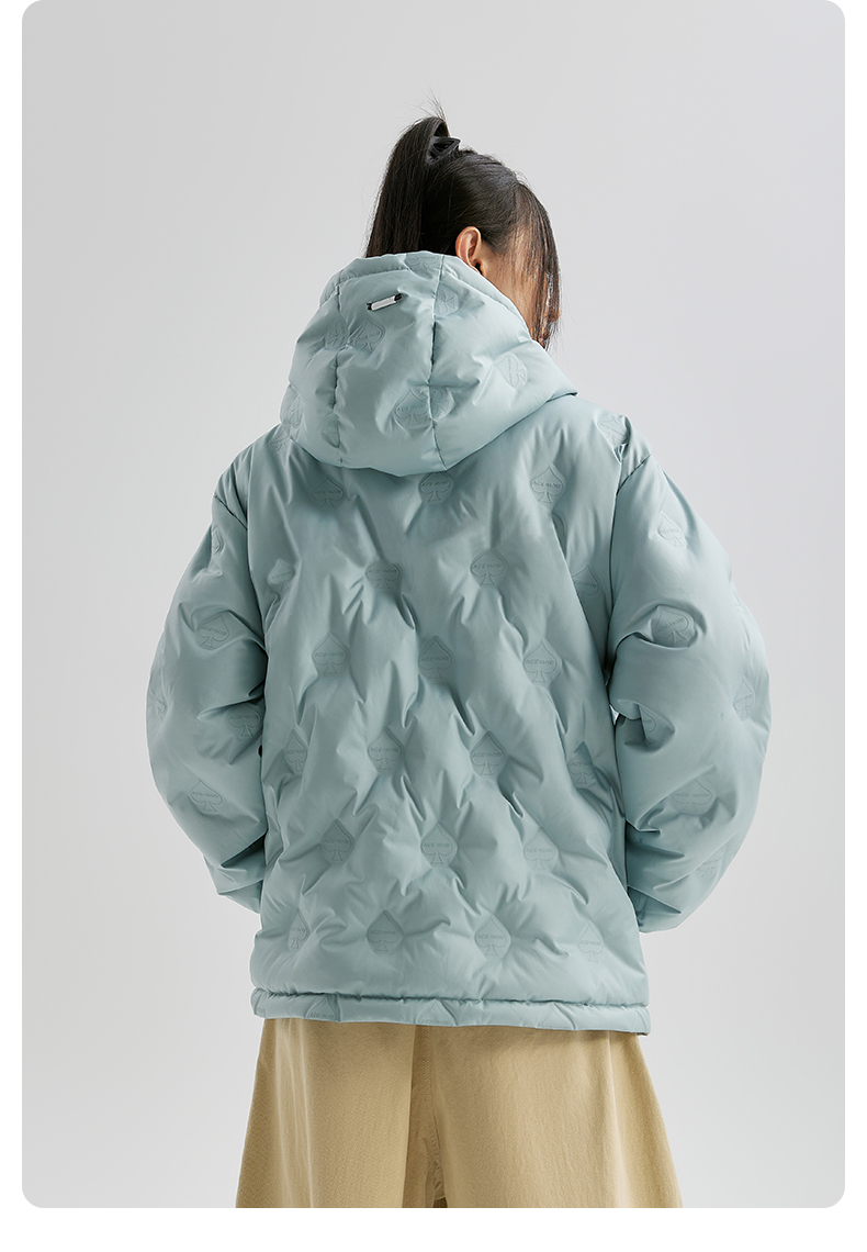 YKYB连帽羽绒服冬季新款潮牌上衣街头休闲黑桃压花夜光宽松外套