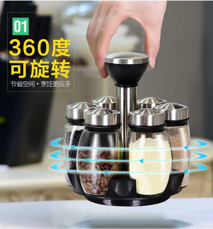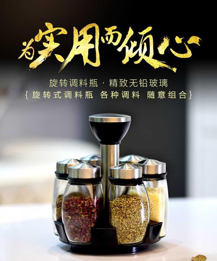 【买1送6厨房七件套】调料盒套装 调味罐厨房家用创意旋转调味瓶佐料盒玻璃调料瓶罐tlg12
