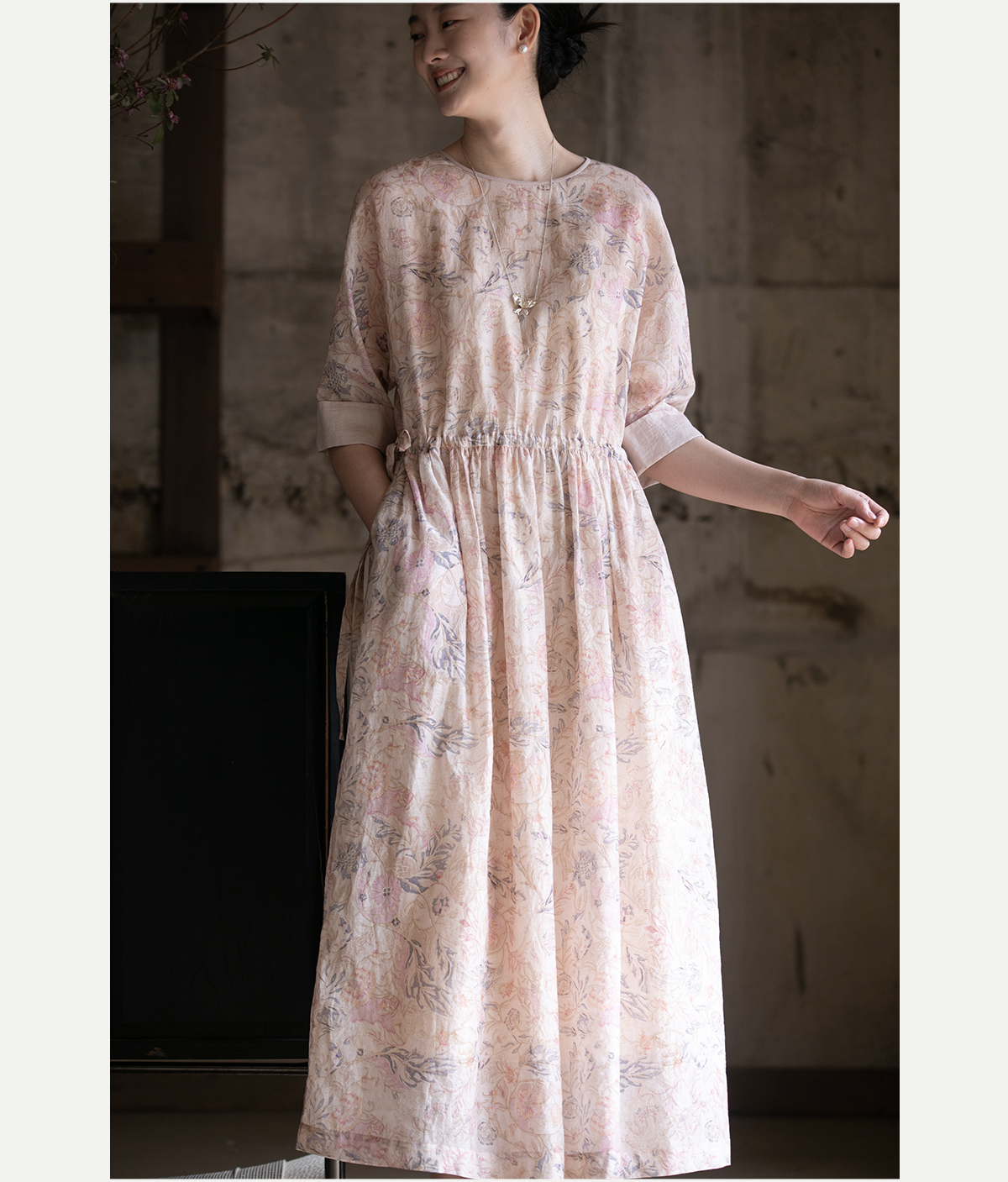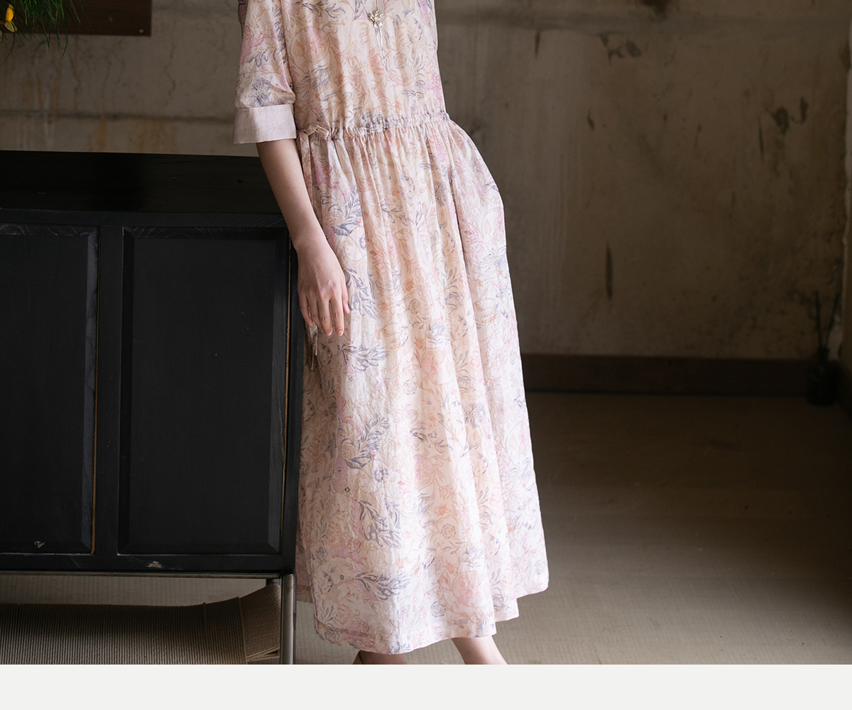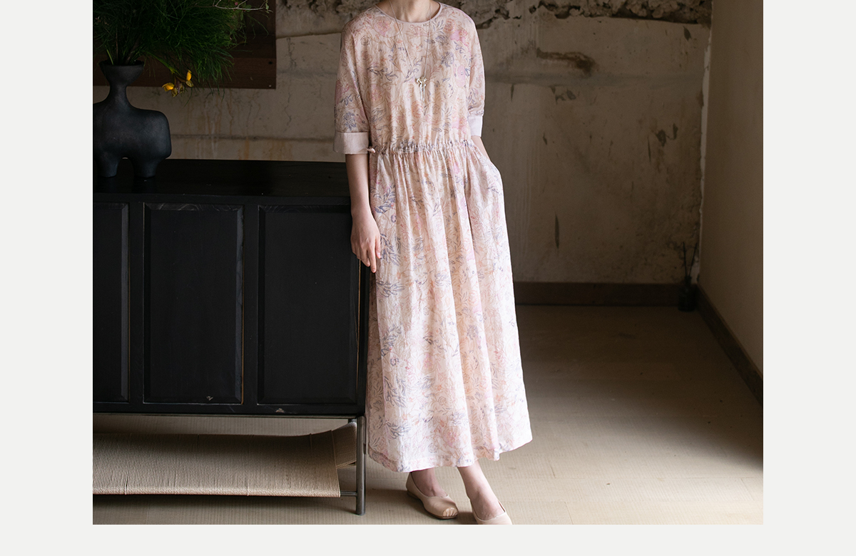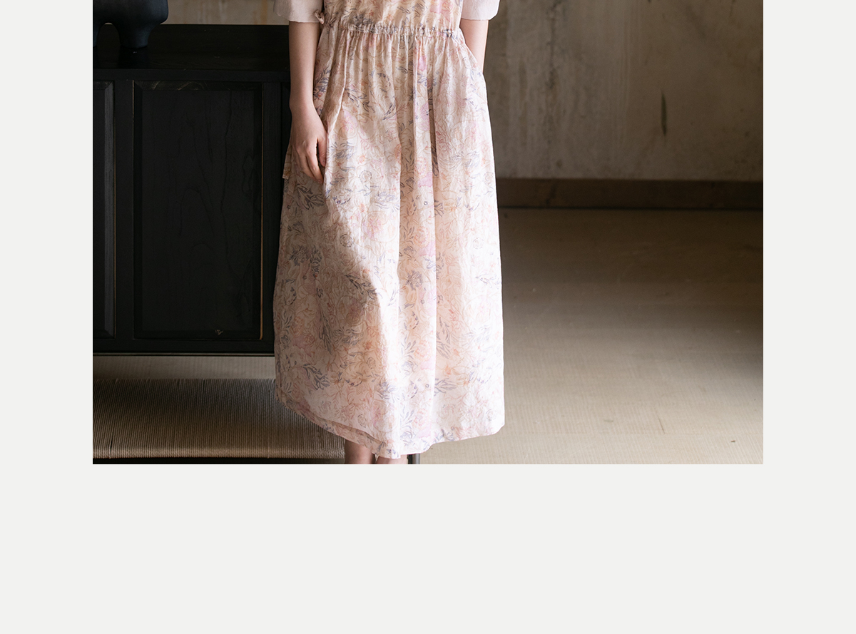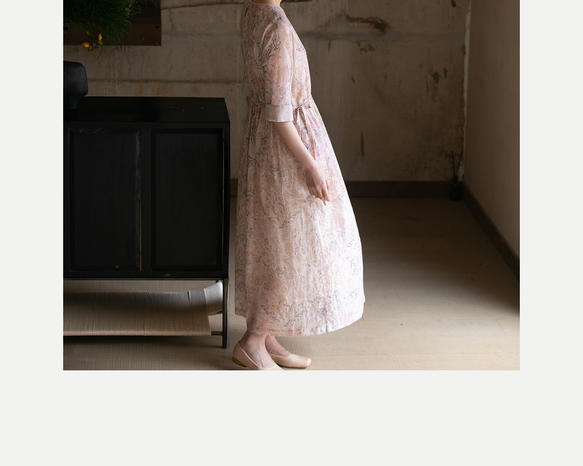 牧衣游原创 丝棉印染连衣裙新品轻薄圆领宽松文艺气质长裙 画舫