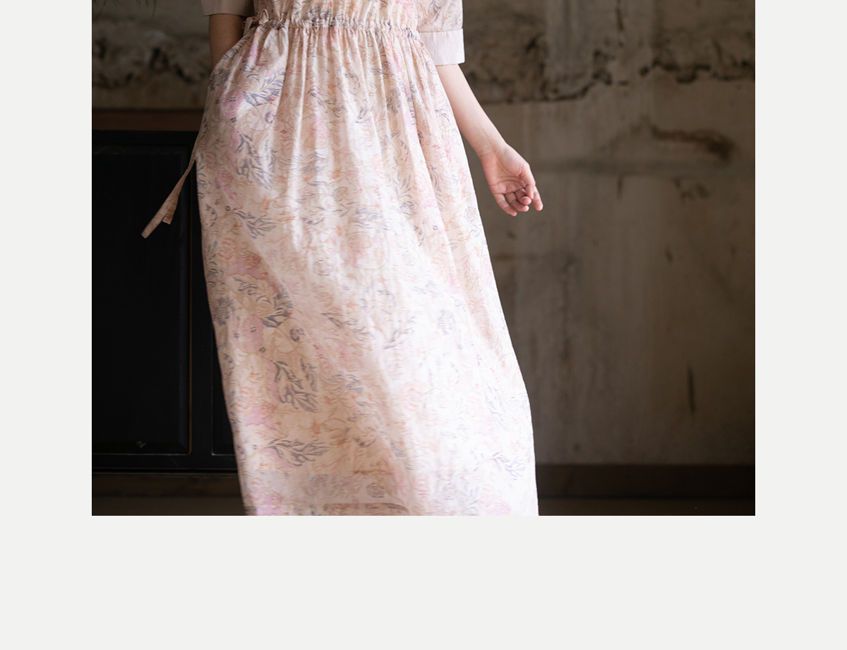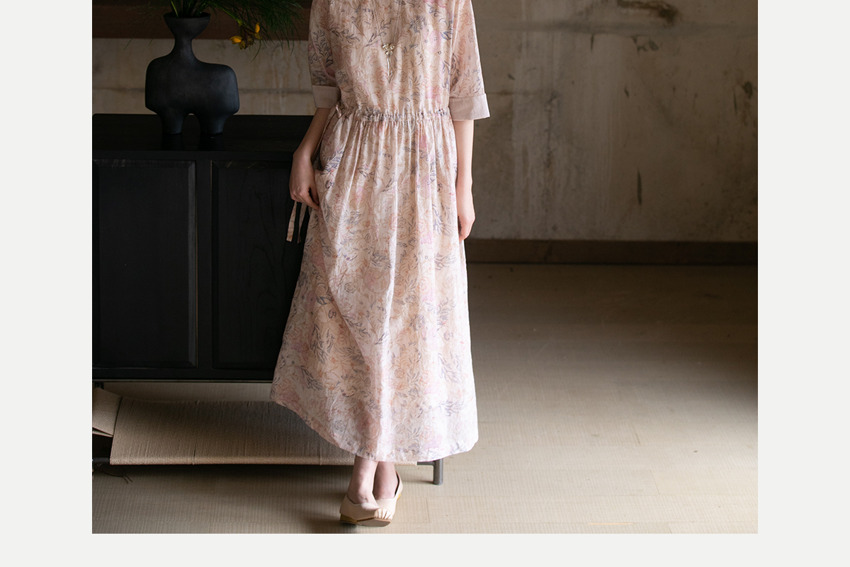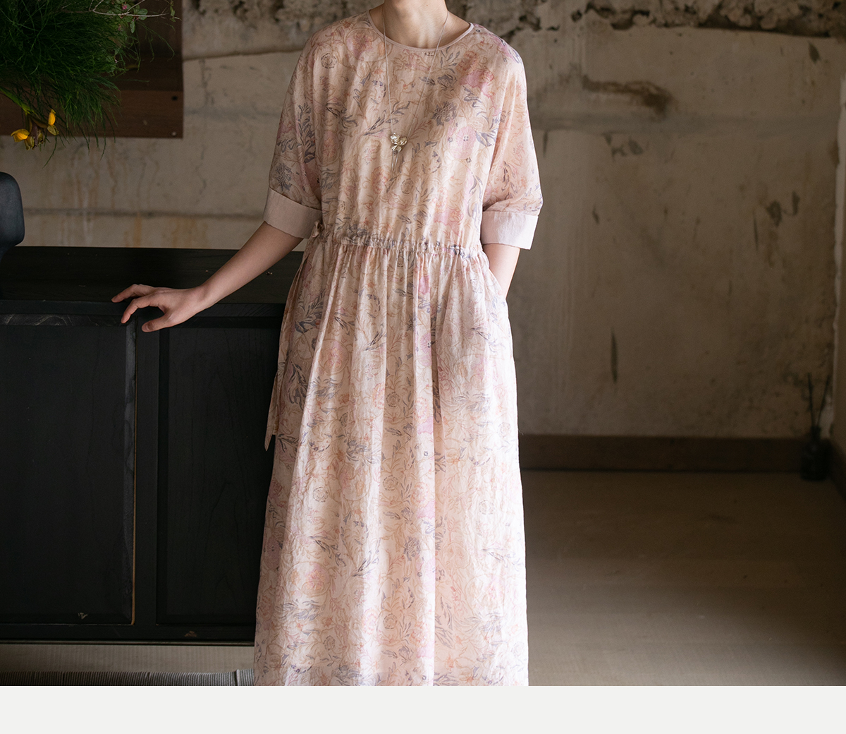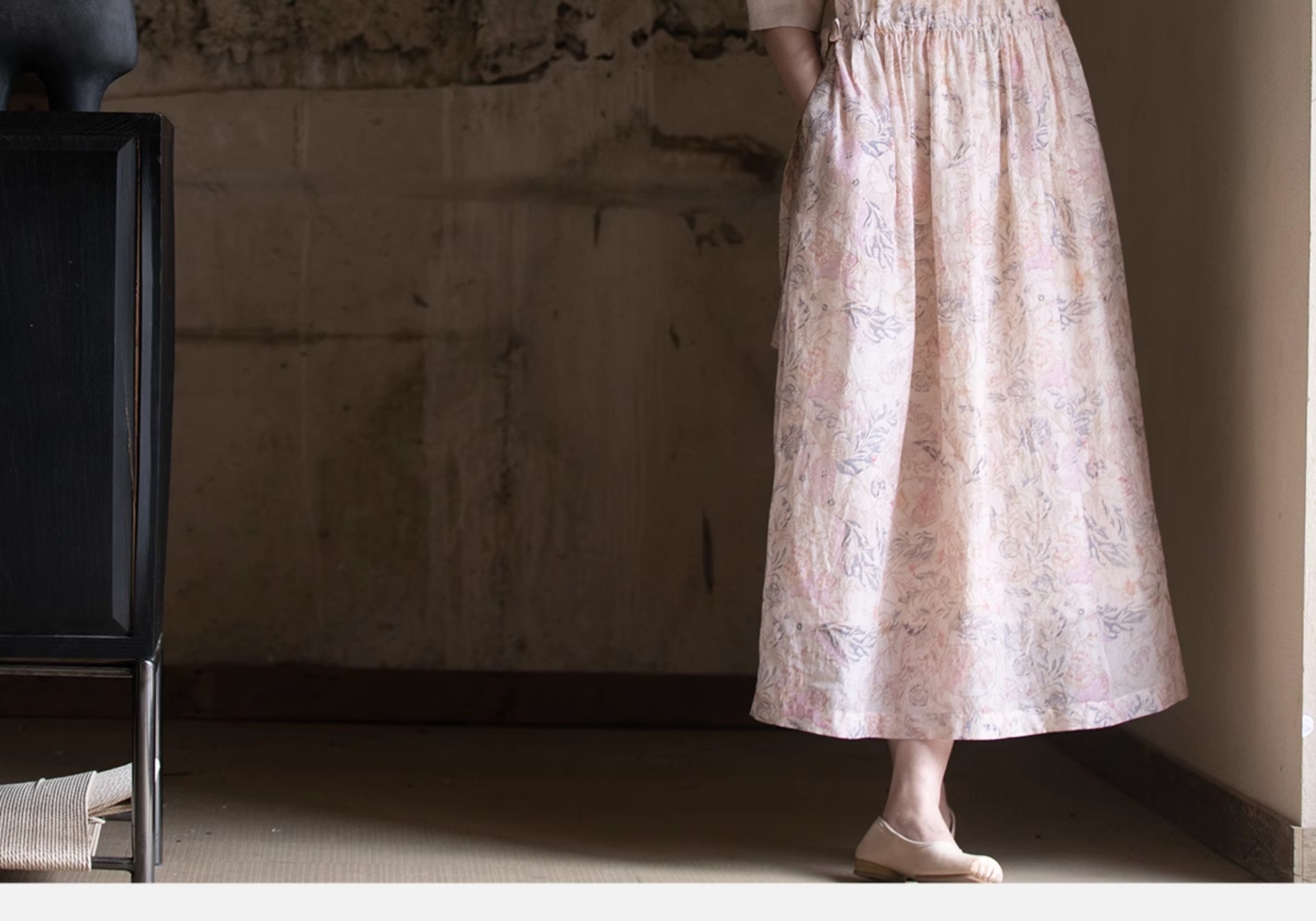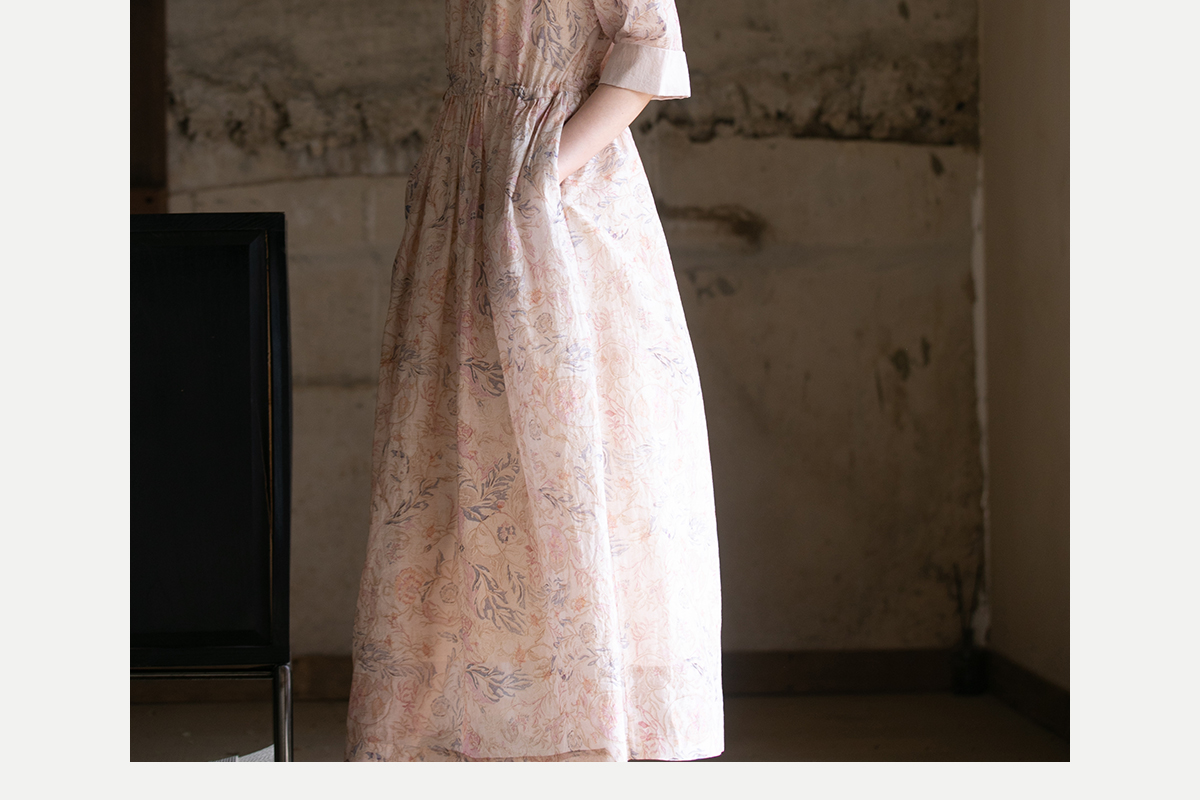 牧衣游原创 丝棉印染连衣裙新品轻薄圆领宽松文艺气质长裙 画舫
