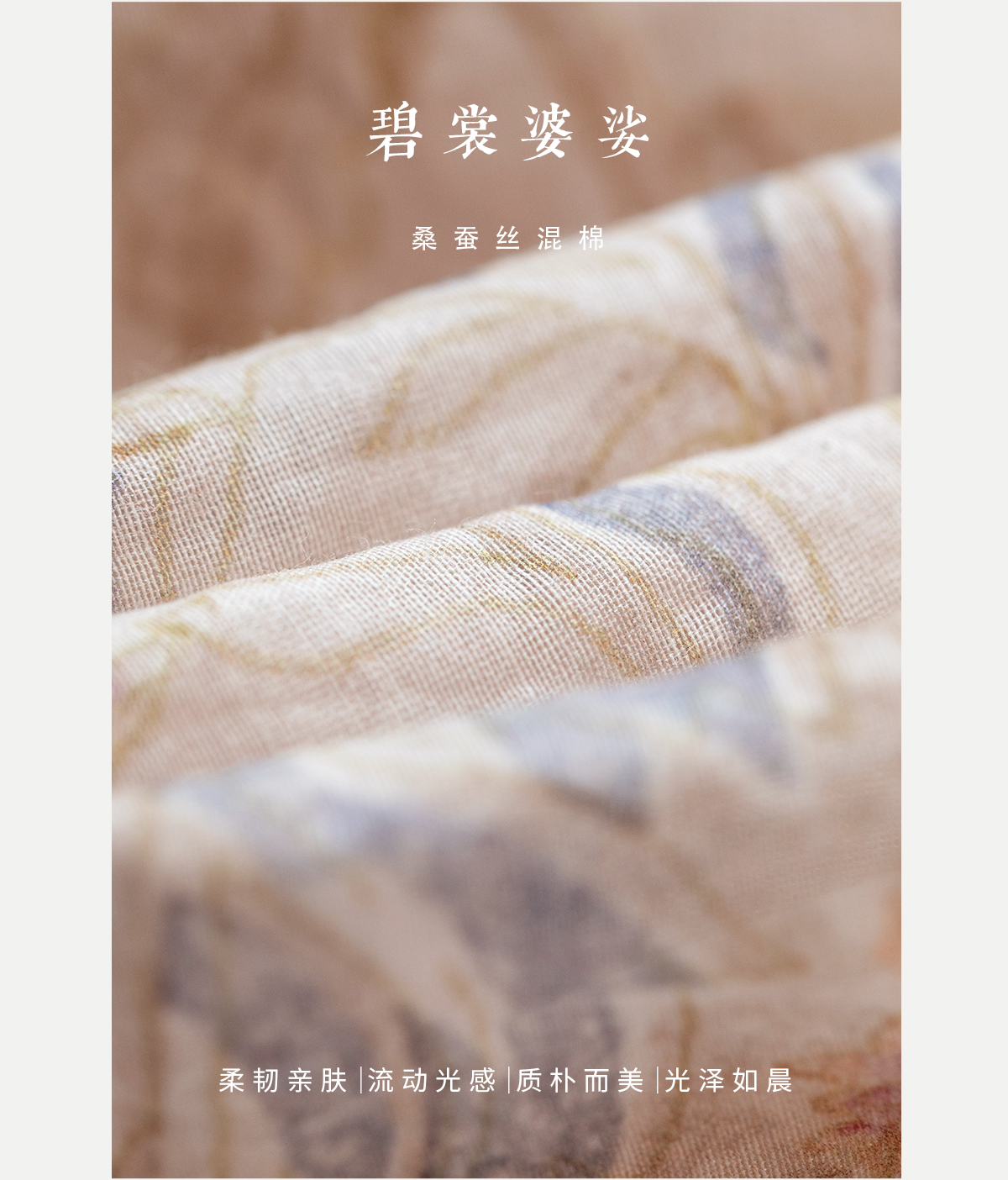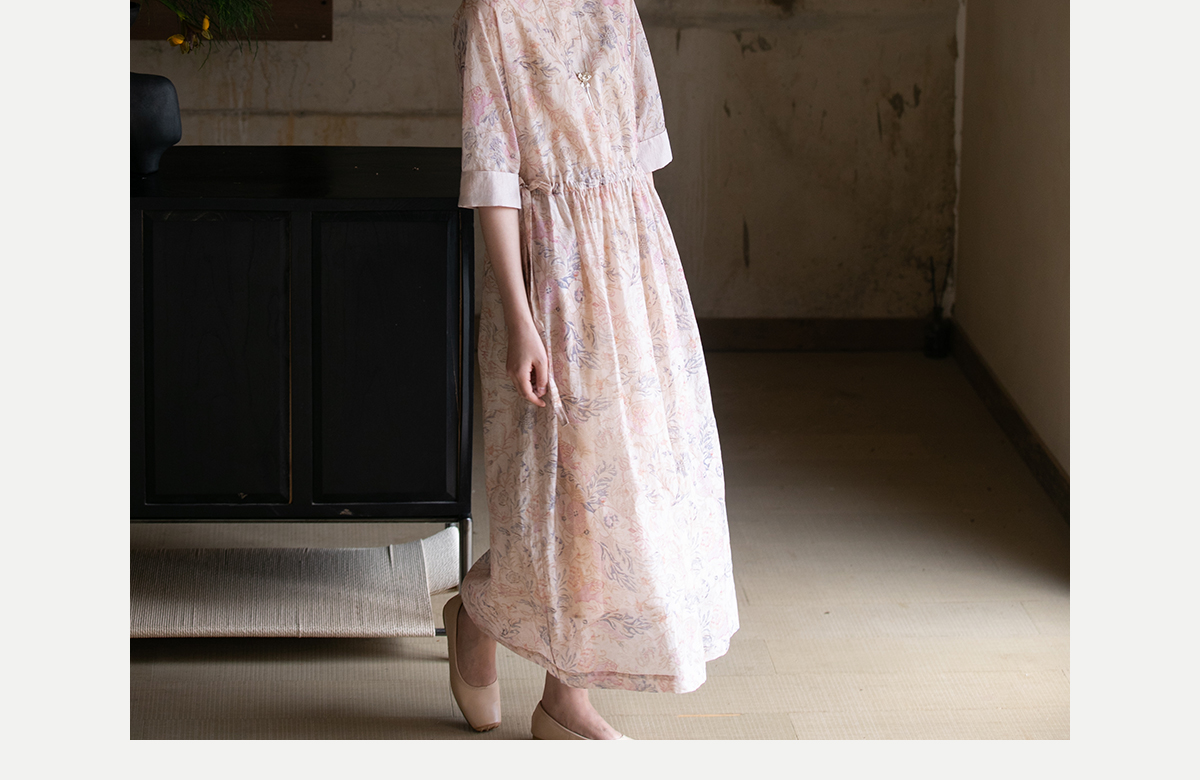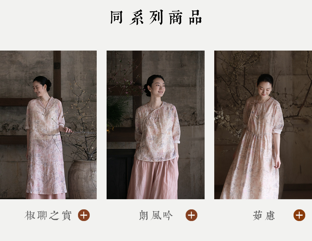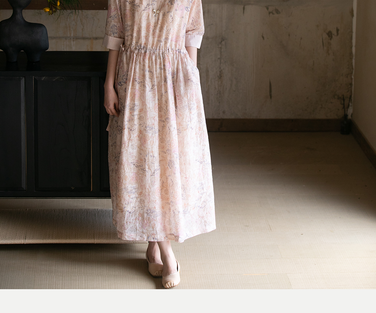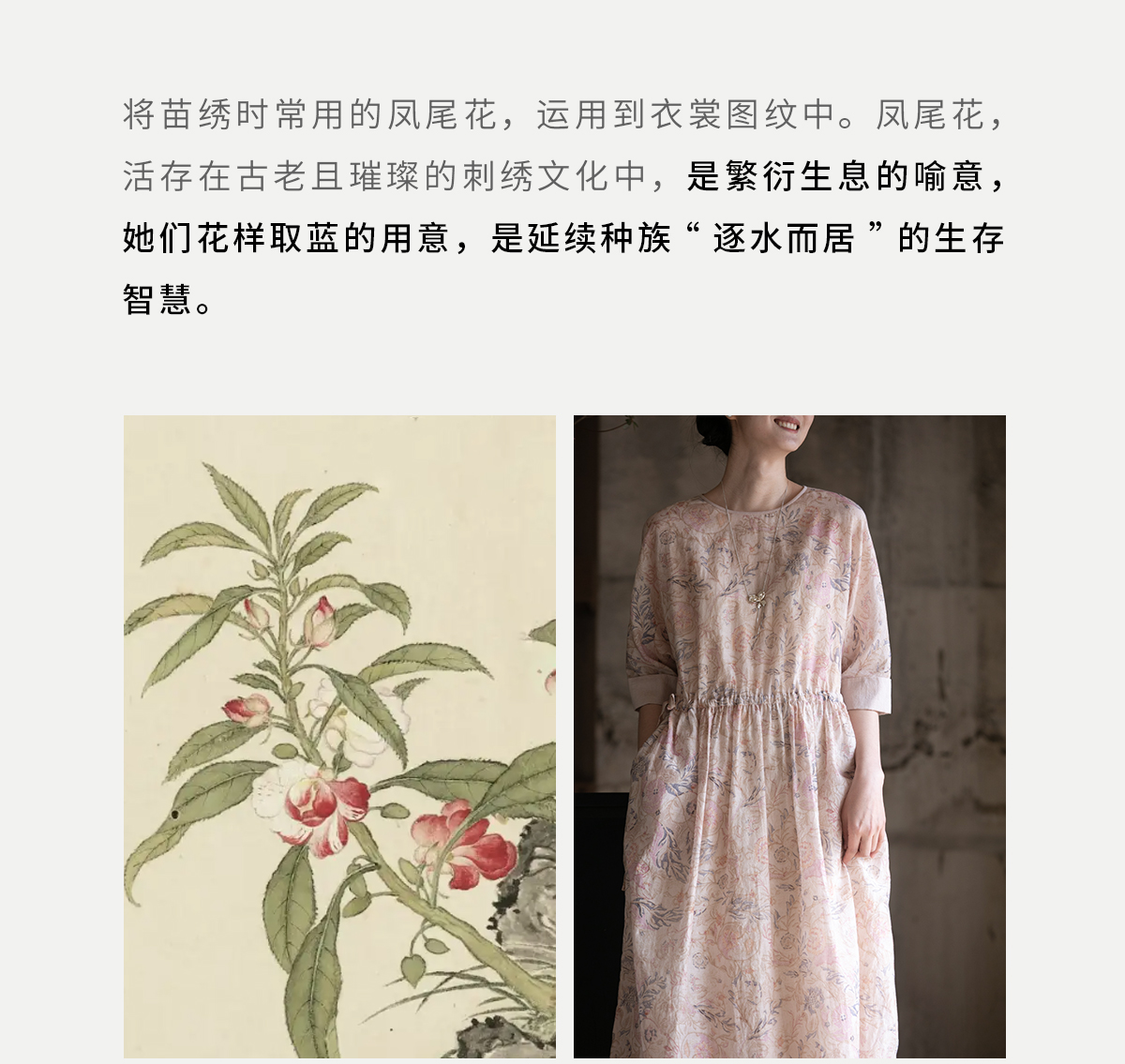 牧衣游原创 丝棉印染连衣裙新品轻薄圆领宽松文艺气质长裙 画舫