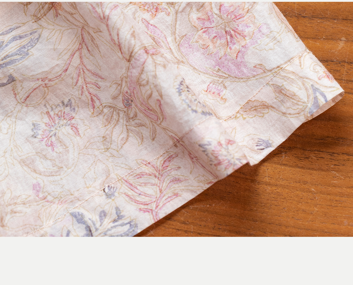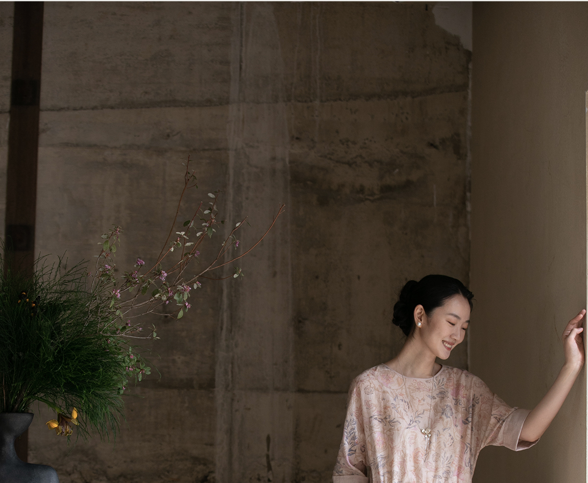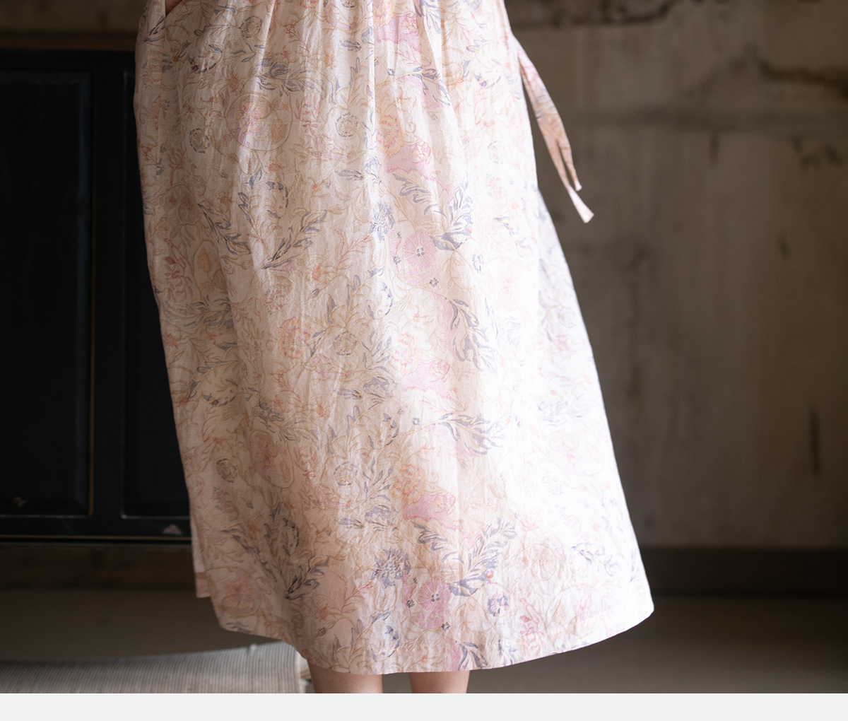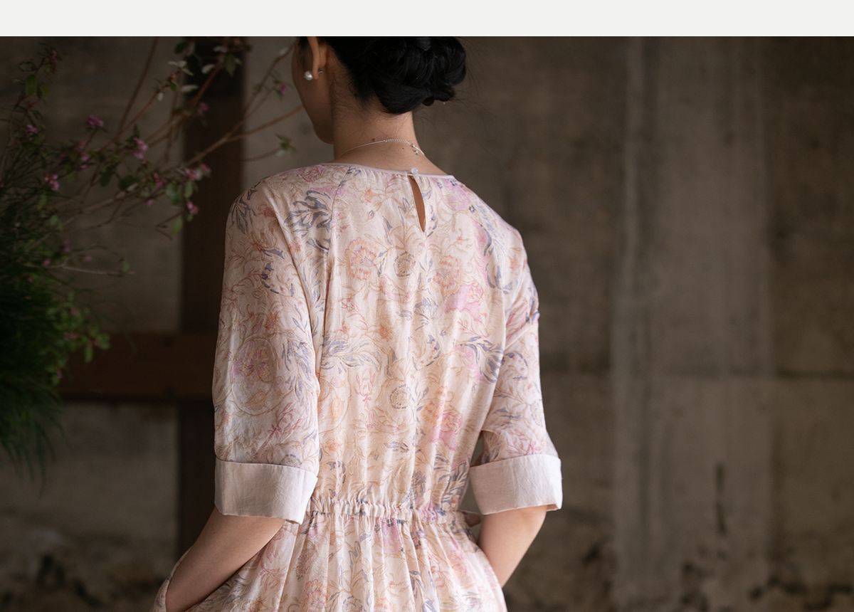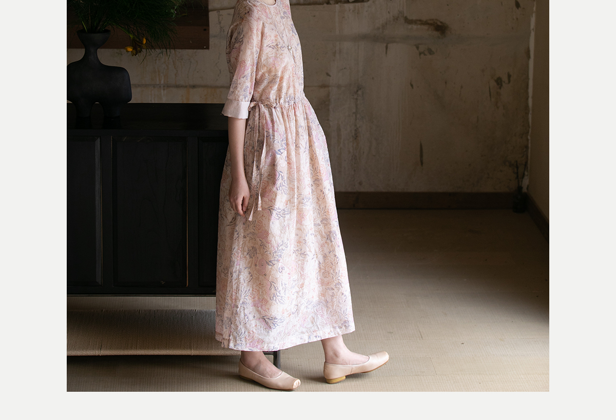 牧衣游原创 丝棉印染连衣裙新品轻薄圆领宽松文艺气质长裙 画舫