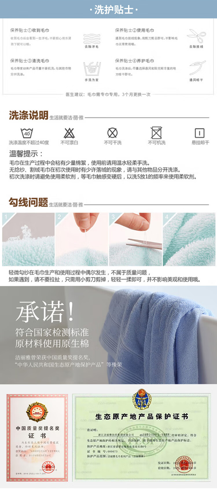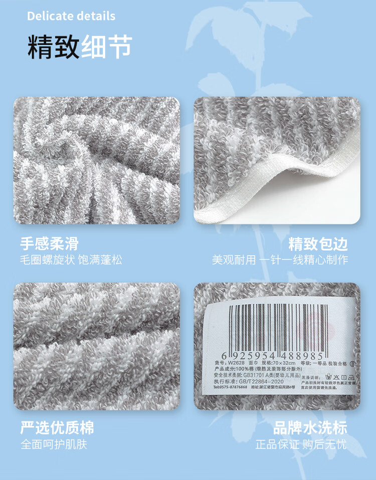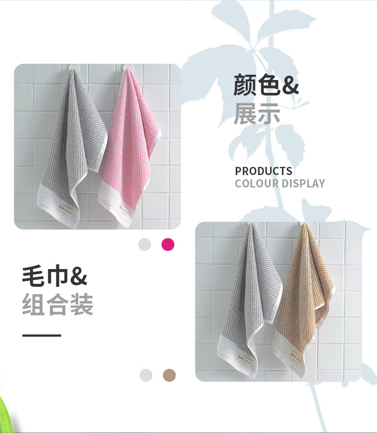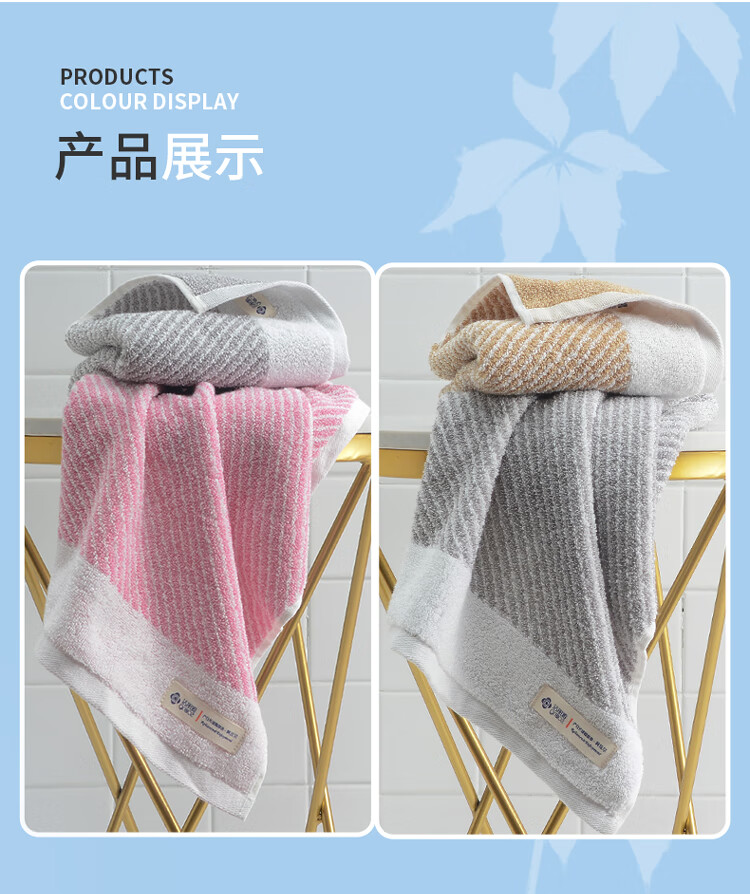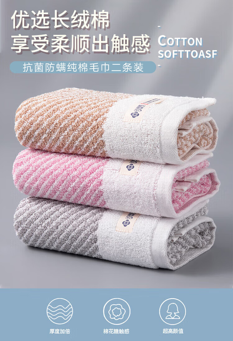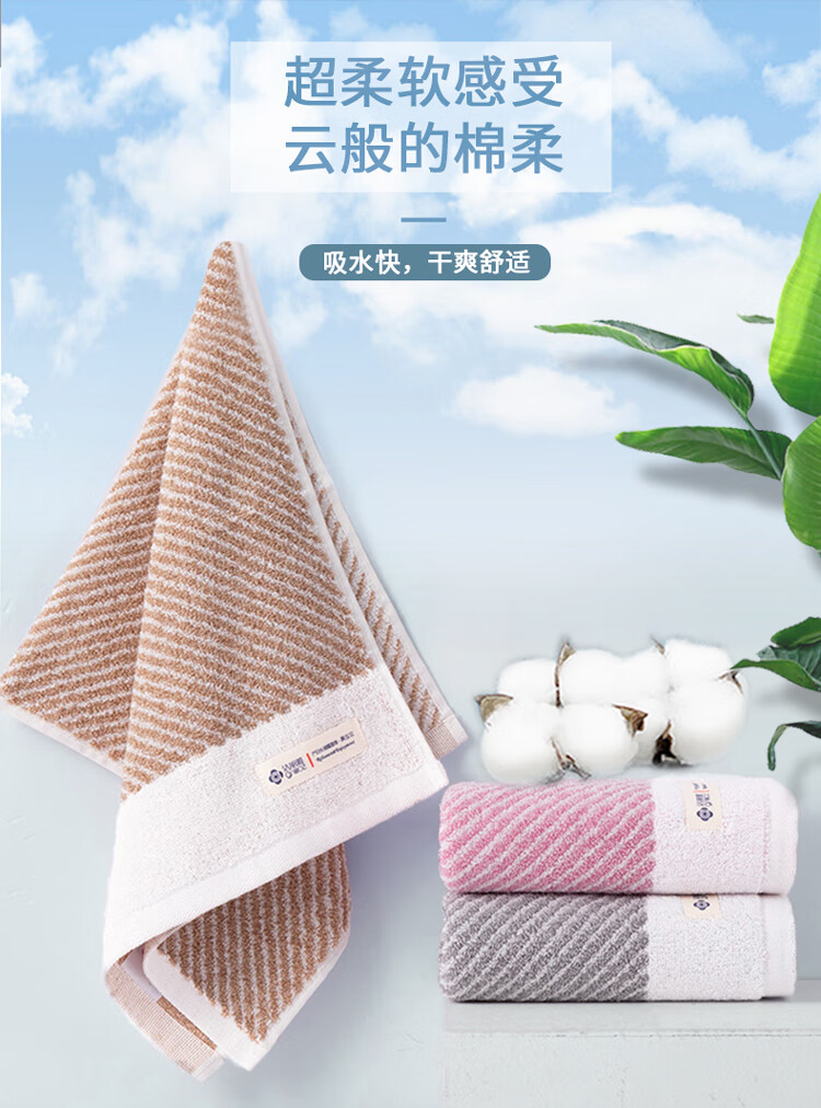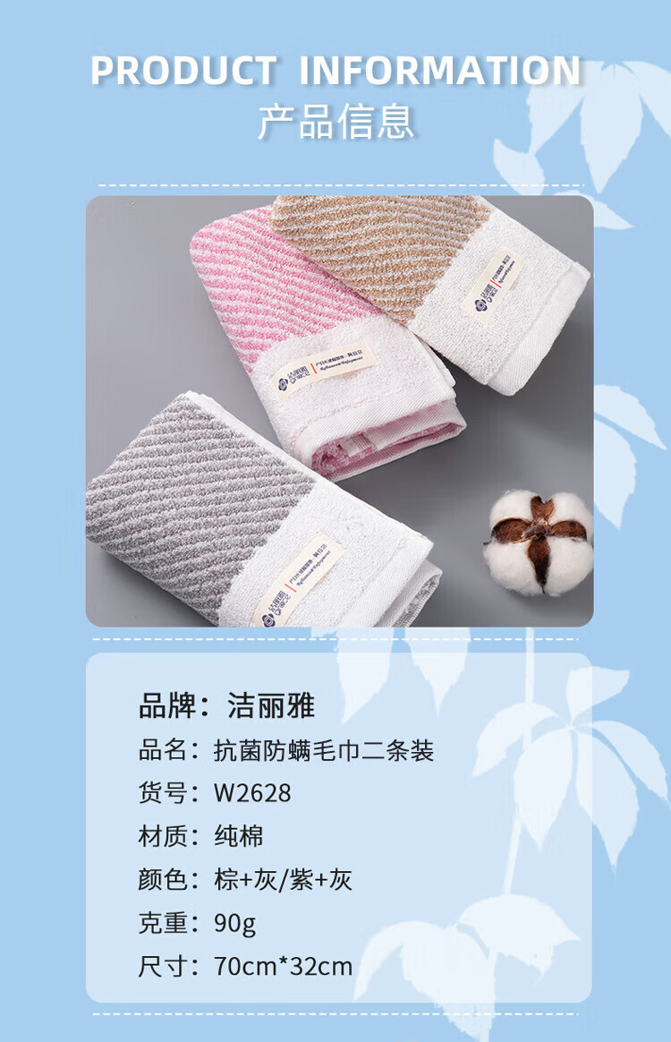 洁丽雅A类纯棉毛巾二条装 W2628 棕色+灰色